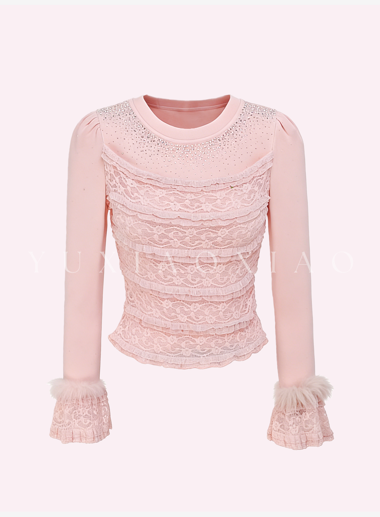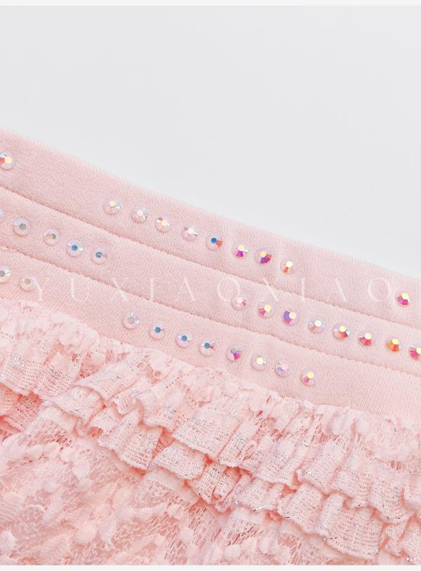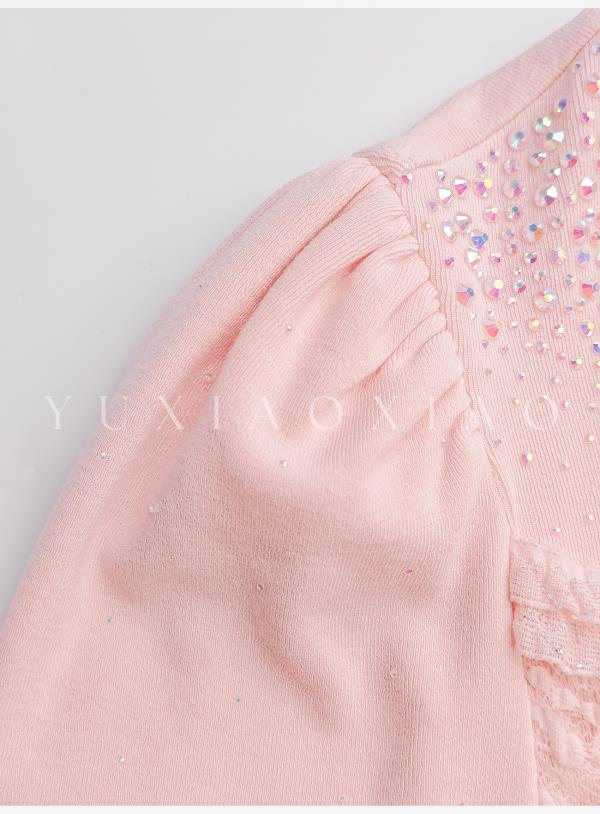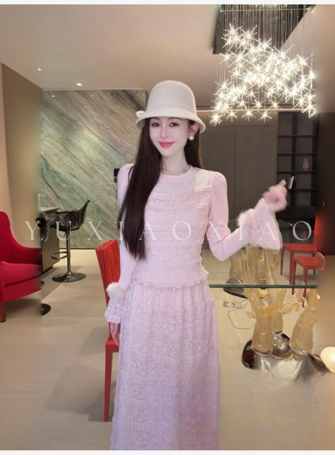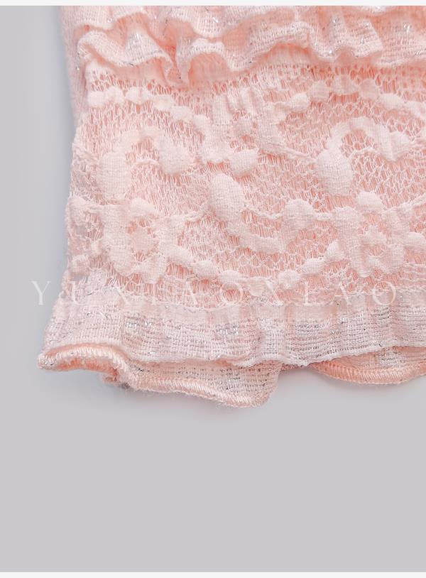 余潇潇【粉黛梦境】浪漫气质针织拼接蕾丝圆领修身上衣&蕾丝长半裙