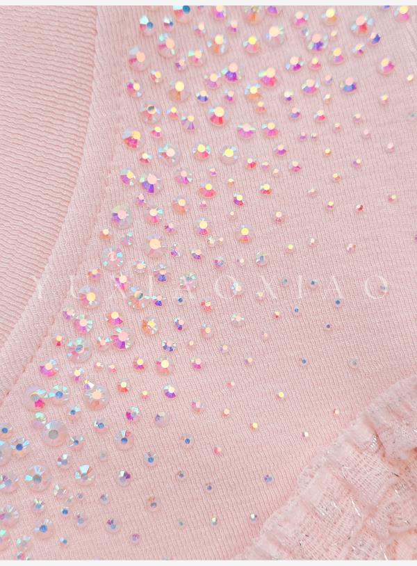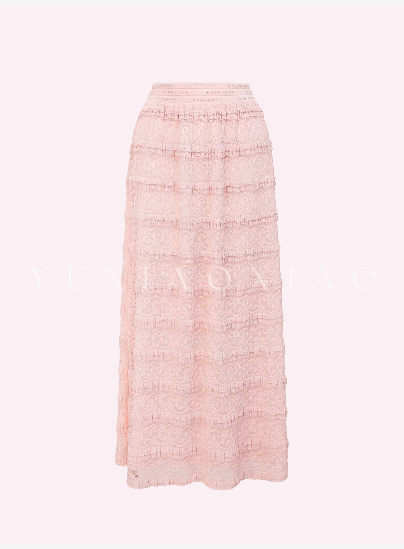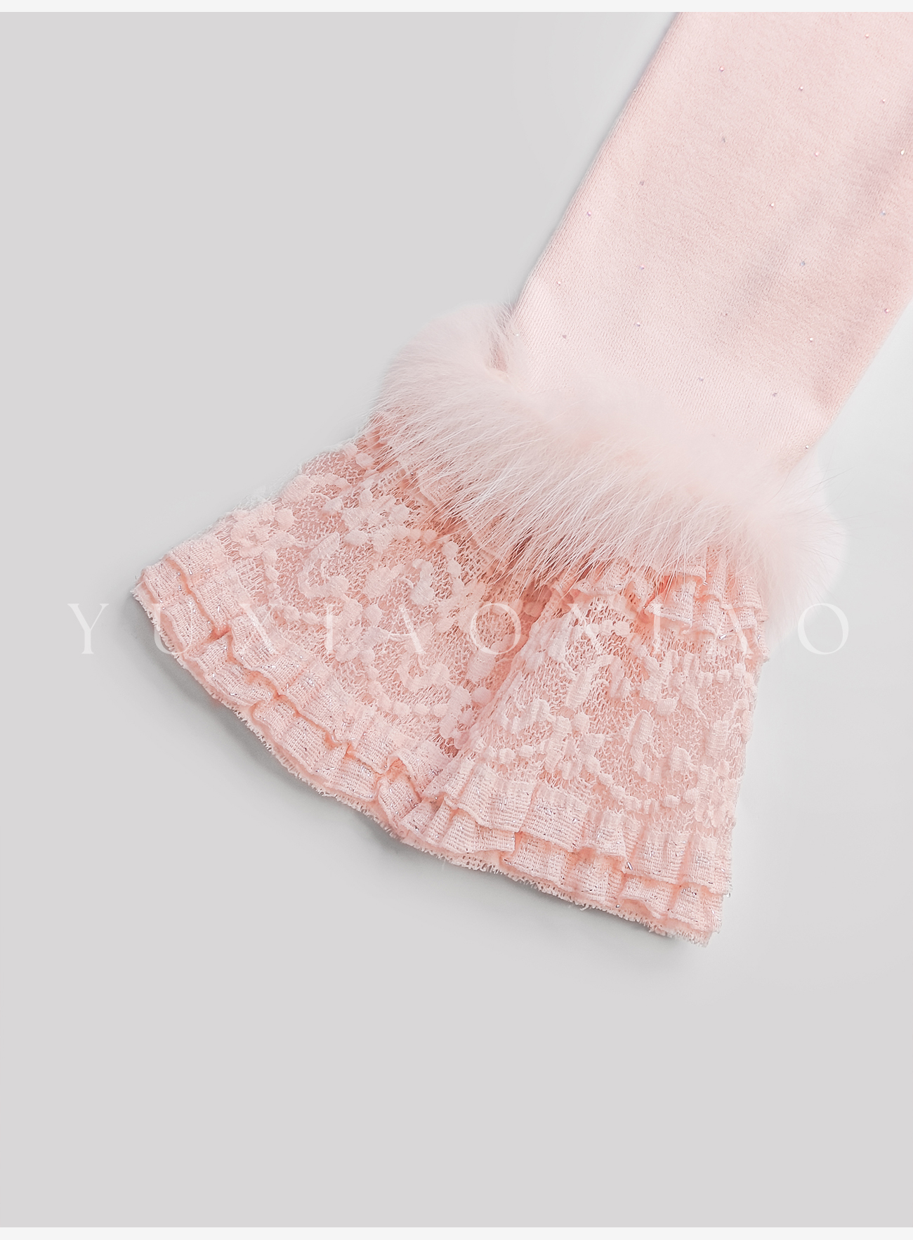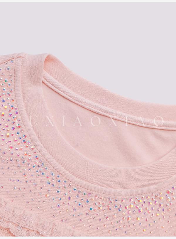 余潇潇【粉黛梦境】浪漫气质针织拼接蕾丝圆领修身上衣&蕾丝长半裙