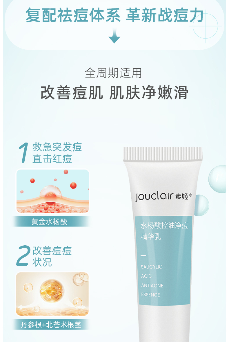 【正品直售】素姬水杨酸控油净痘精华乳祛痘痘青春痘清痘膏男女通用