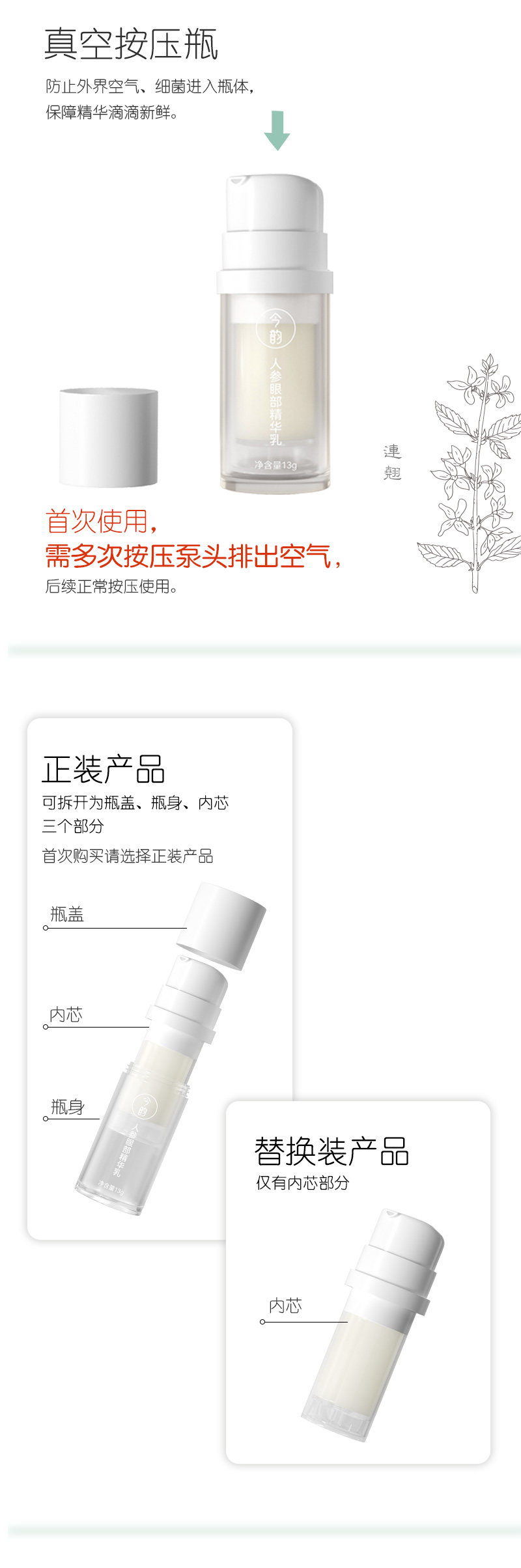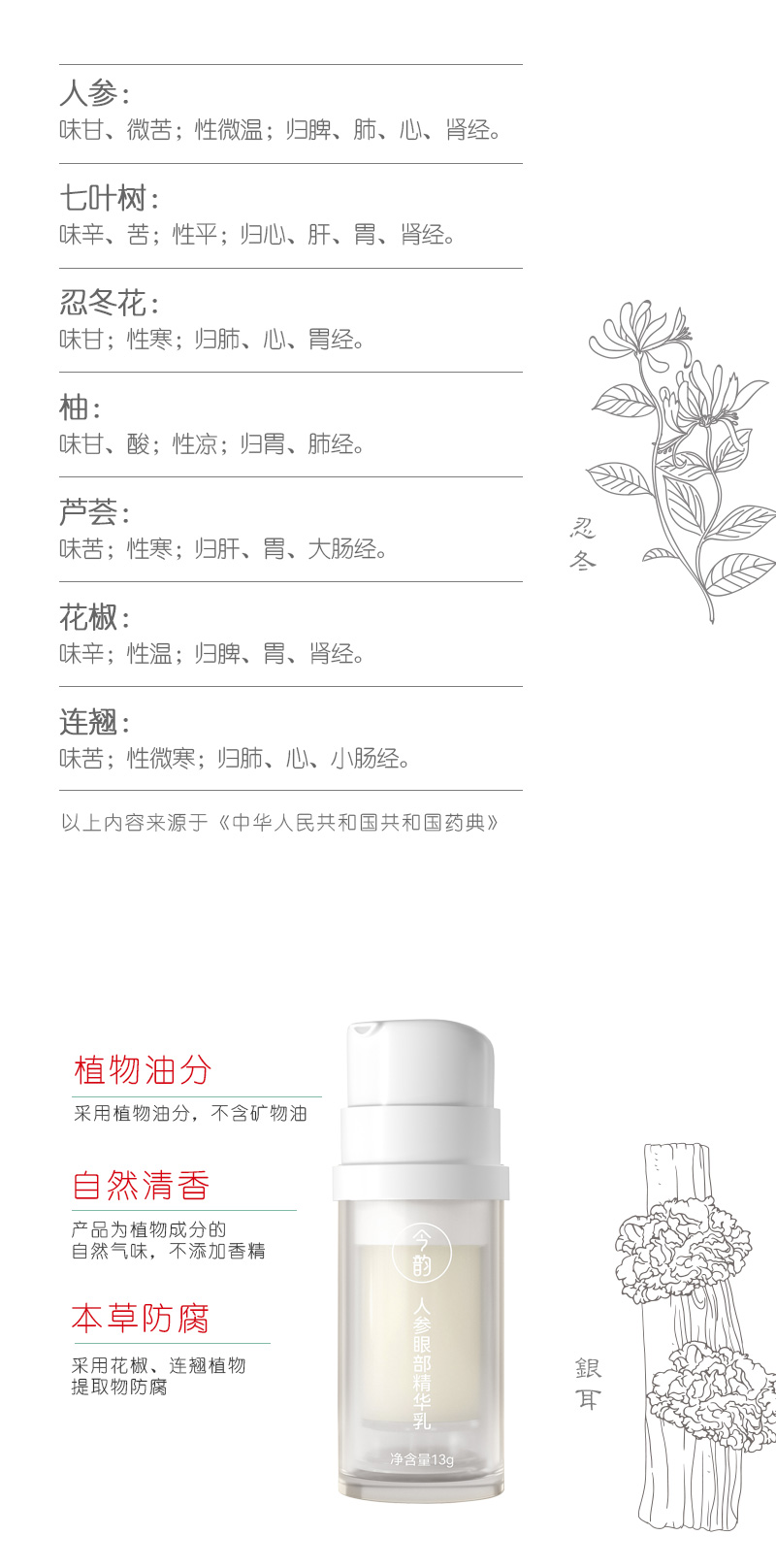 人参眼部精华乳 4周淡化细纹 人参七叶树等9种汉草萃取方便吸收 今韵眼霜精华 13g/瓶