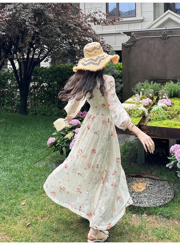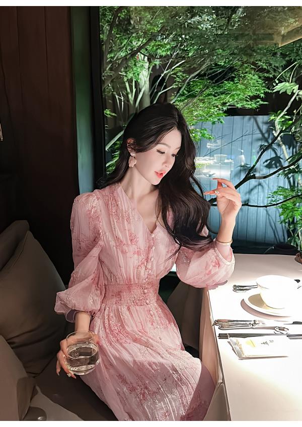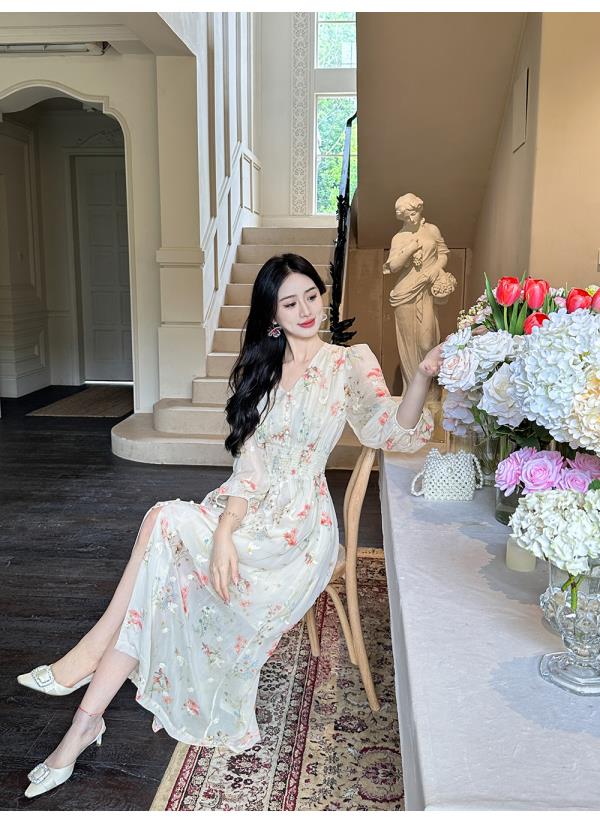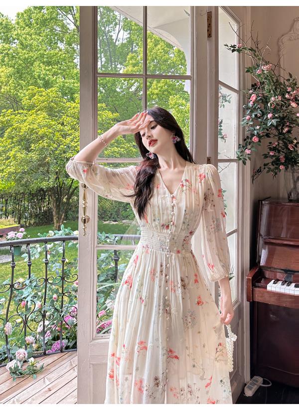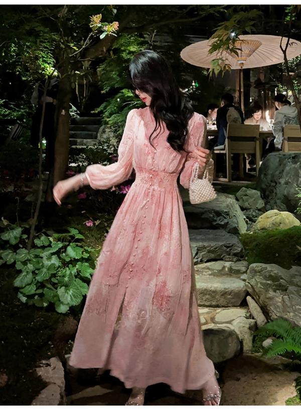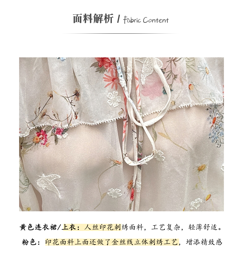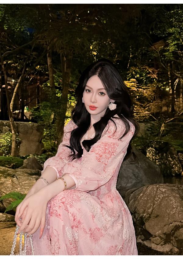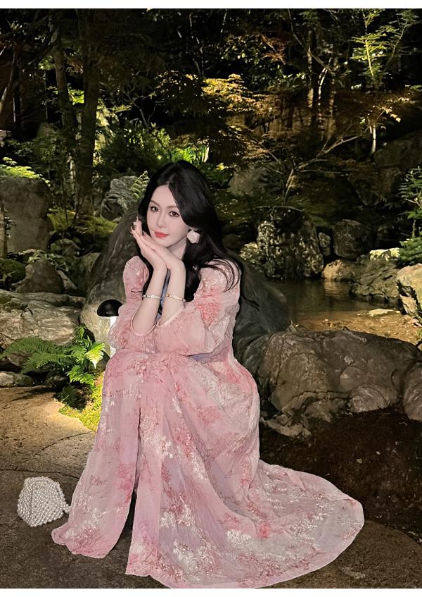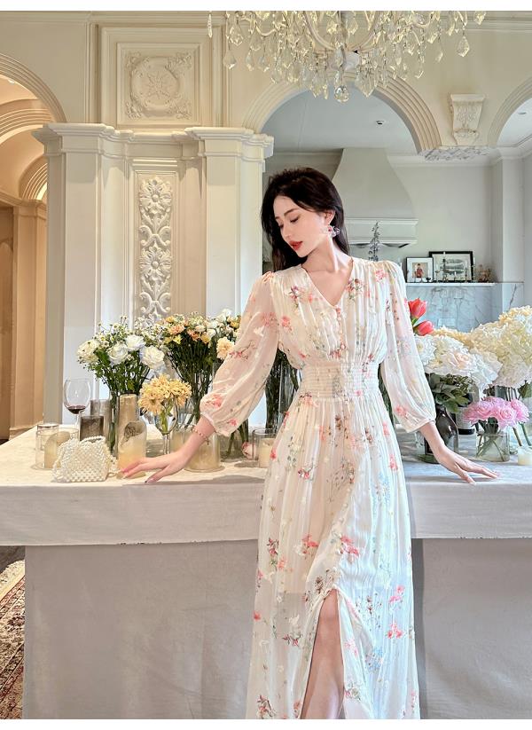 BeQueenStory【花神喜事】宽腰封金丝线立体刺绣V领长款连衣裙