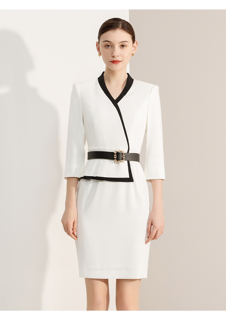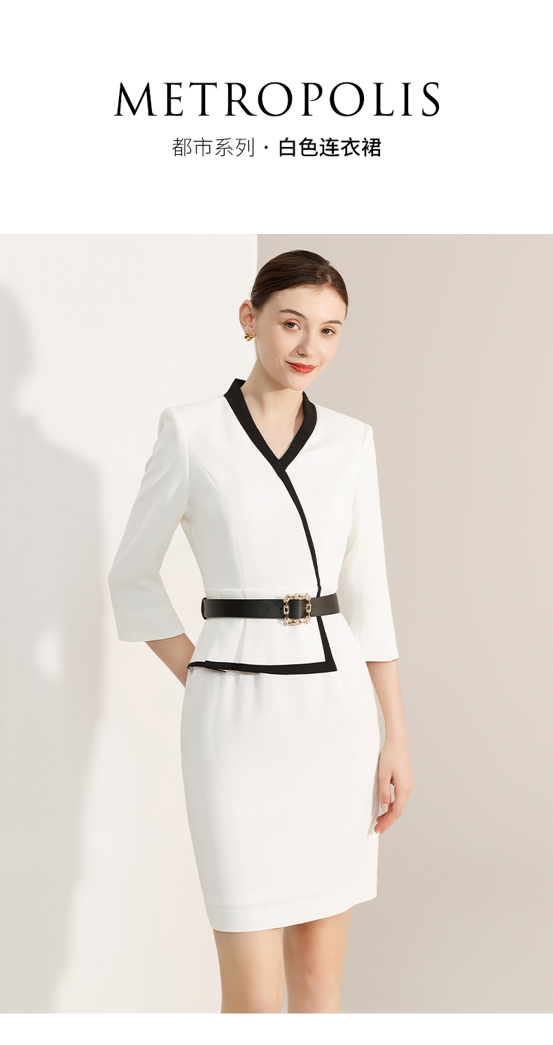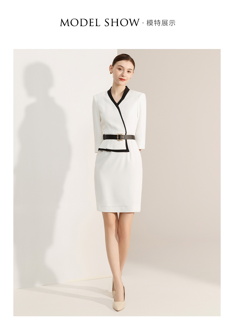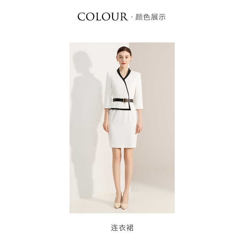 IWY/春夏中袖假两件连衣裙工装裙高端气质职业装女神范套装时尚工作服Q12301