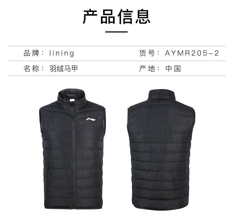 LINING/李宁 成人冬季保暖羽绒马甲AYMR2052