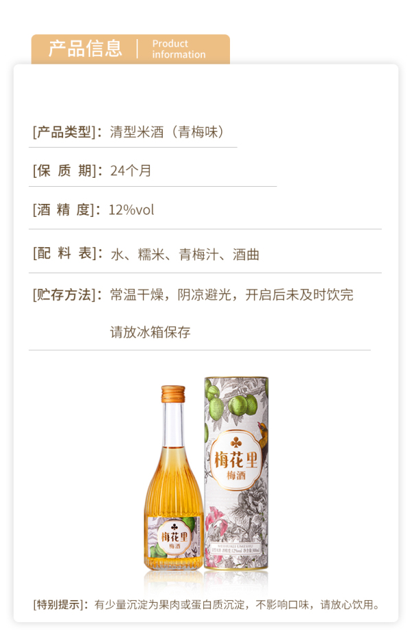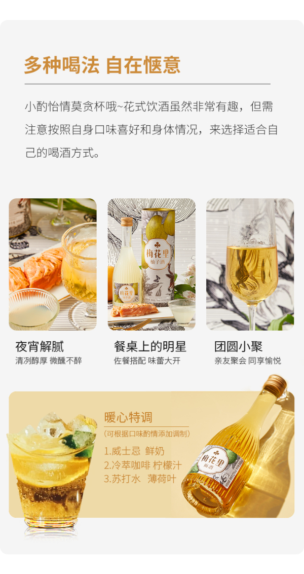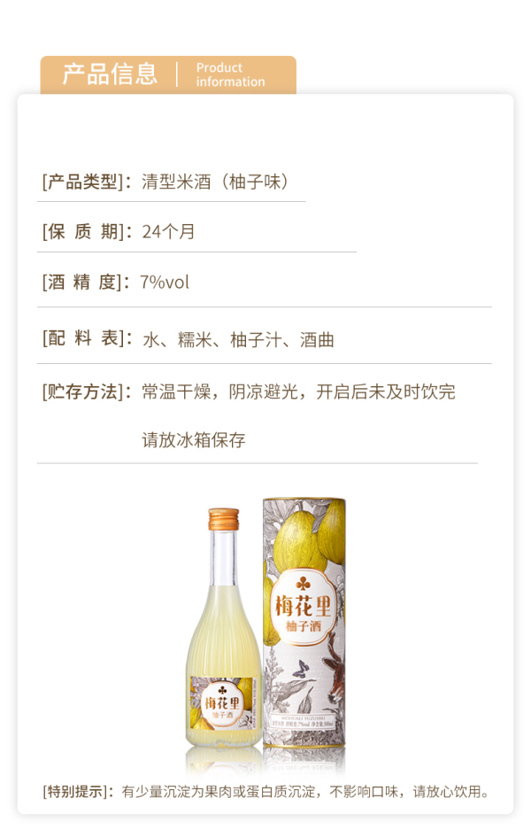 梅花里女士低度酒梅子酒柚子酒300ml