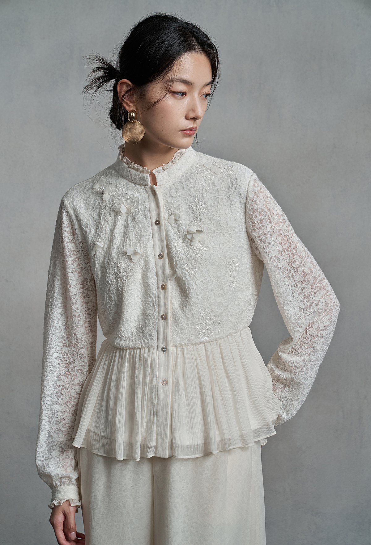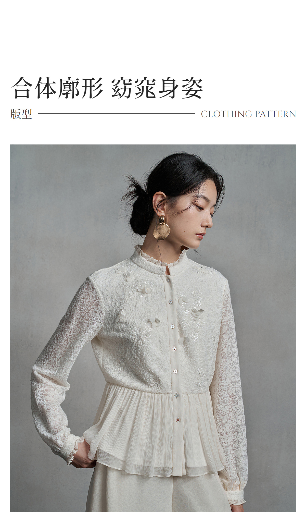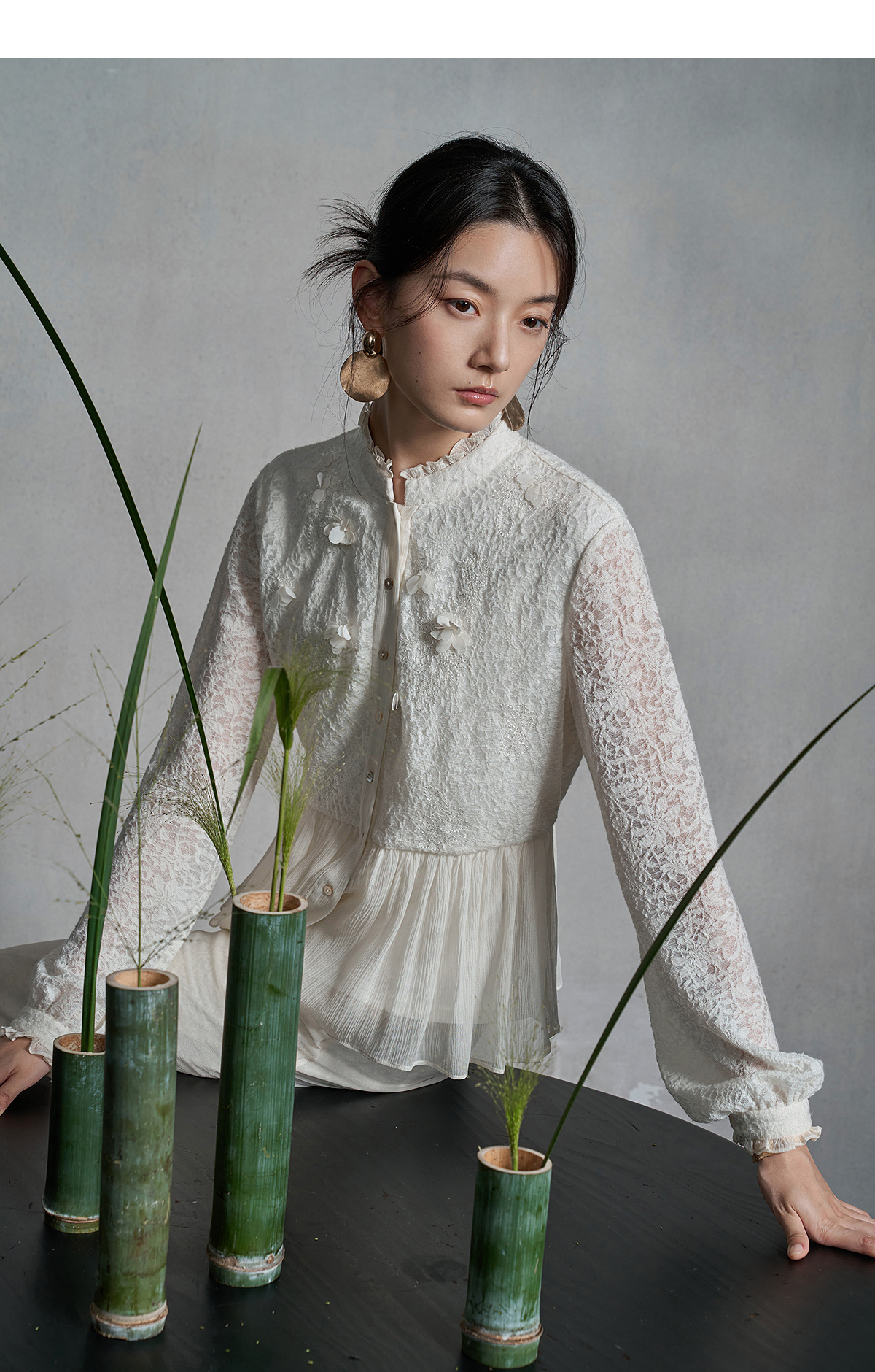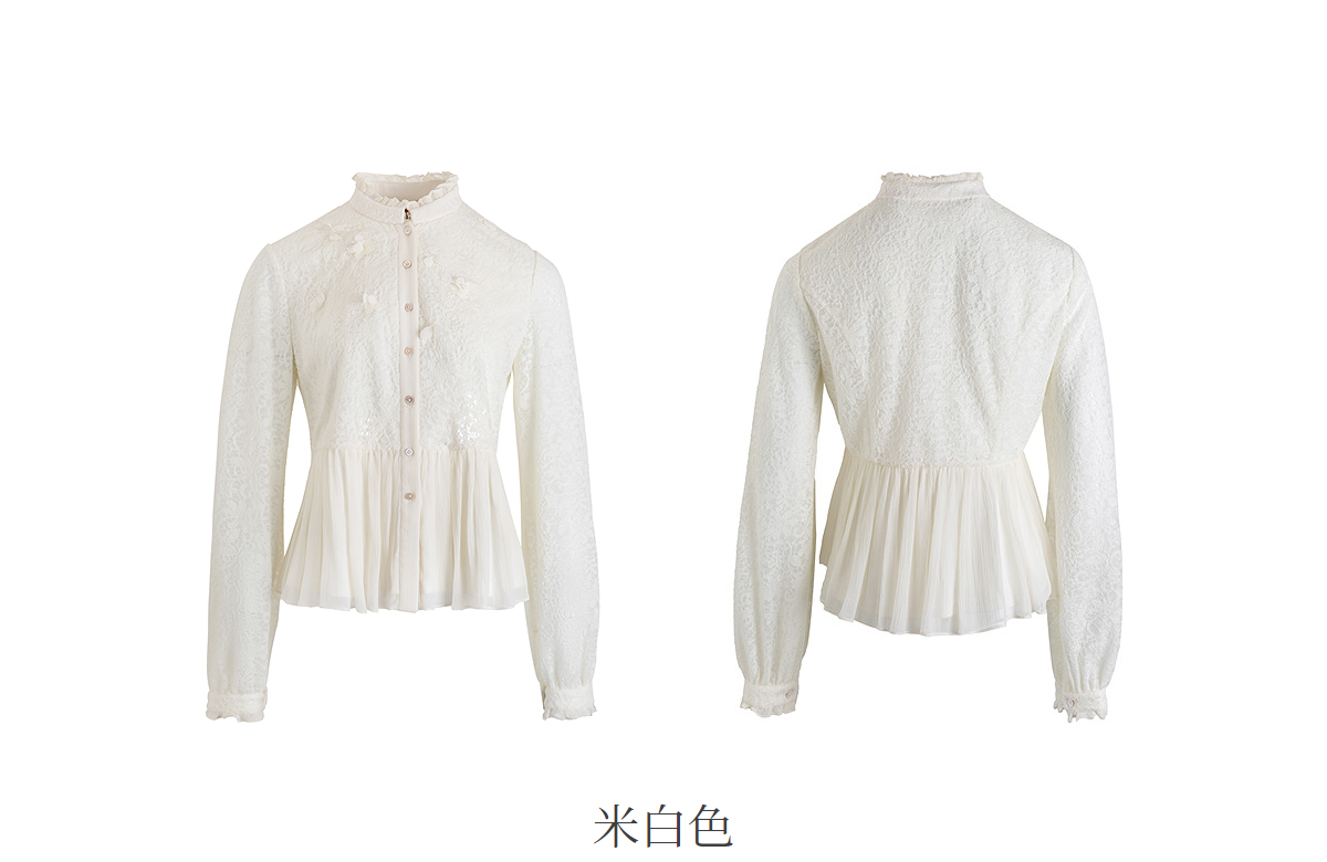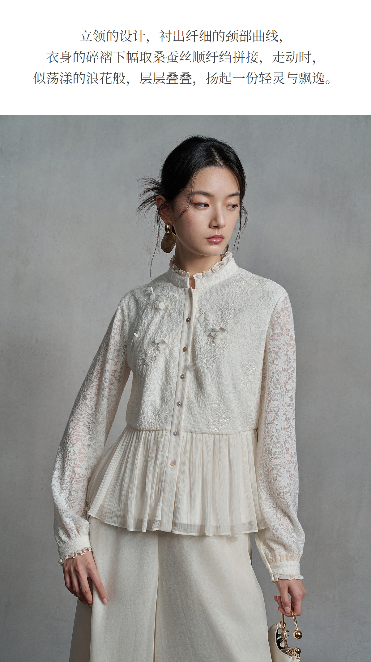 【林栖设计小店】(现货)【手工钉花】绵羊毛混纺衬衣2025早秋新款花仙子上衣女1953019