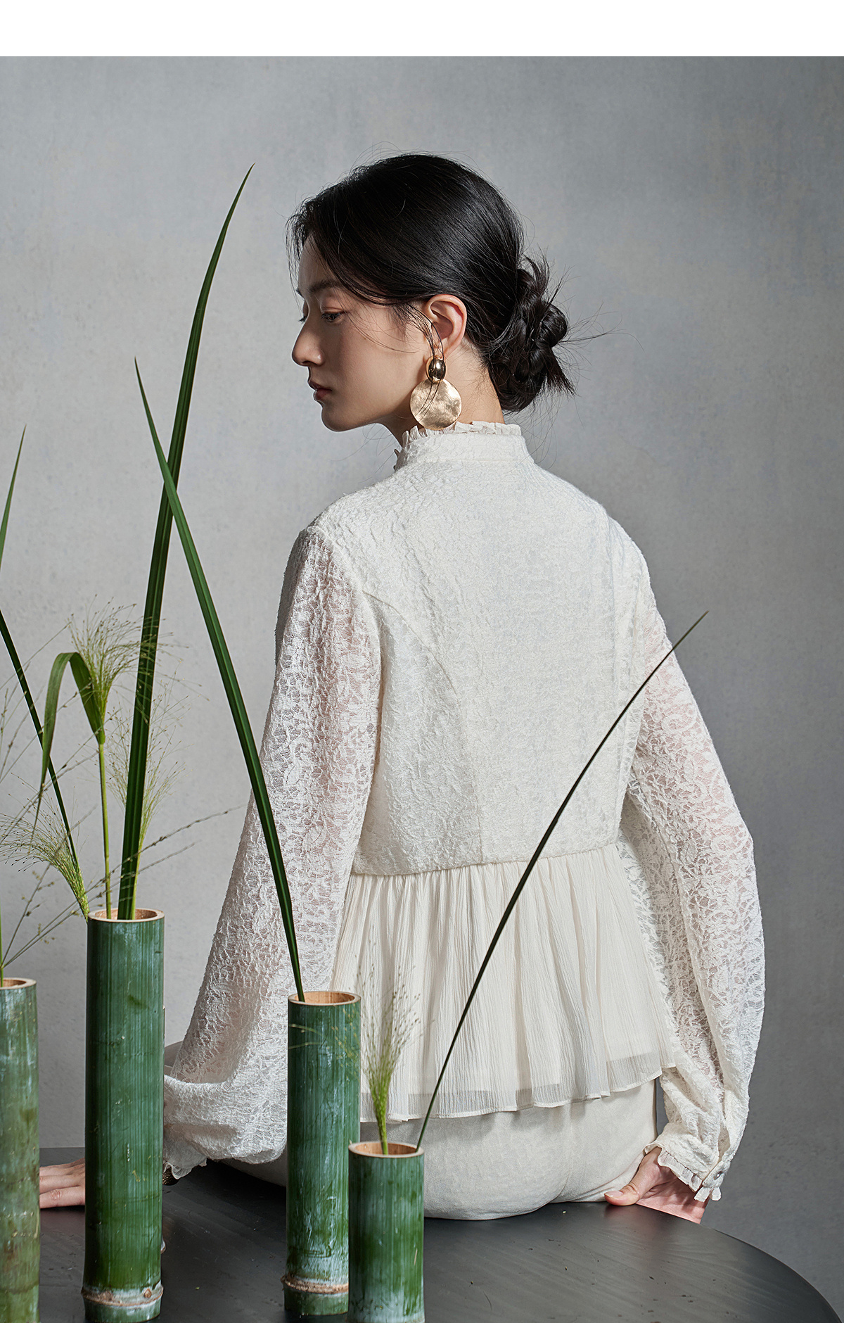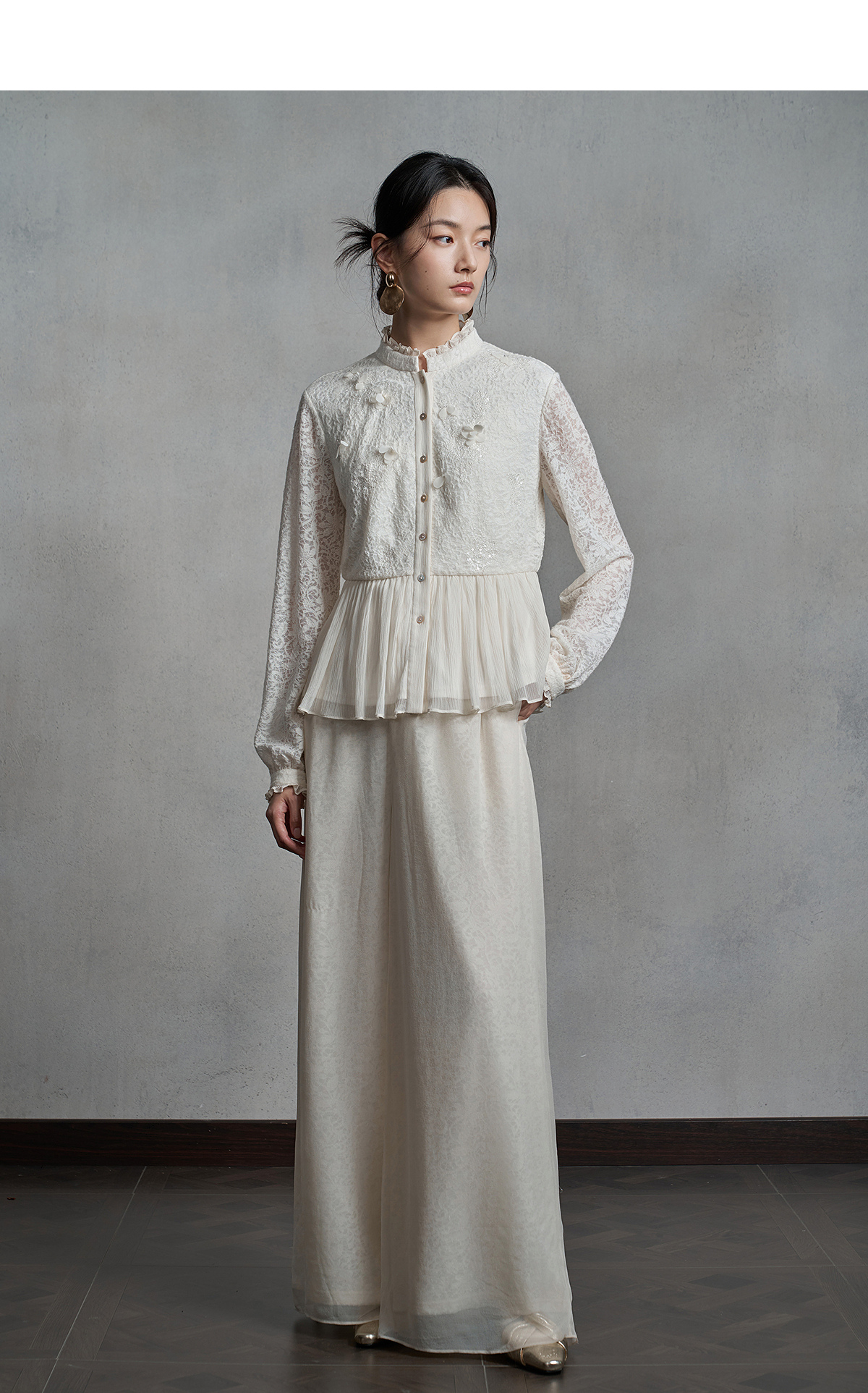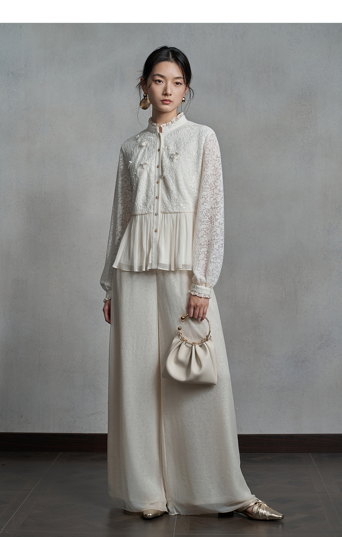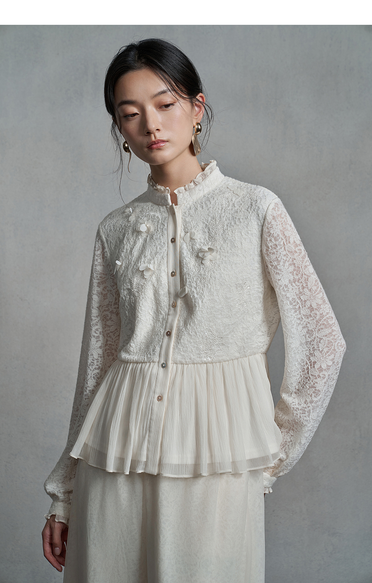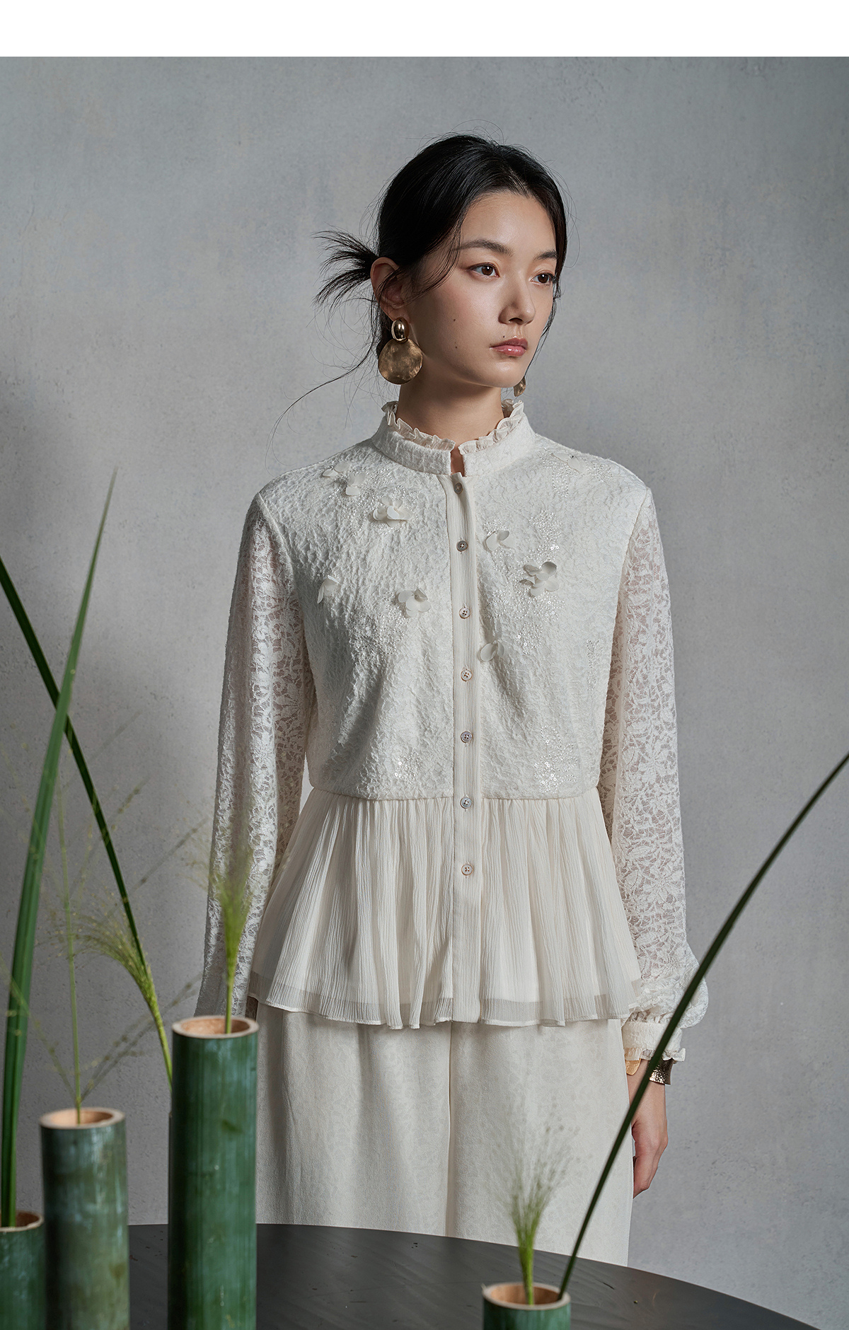 【林栖设计小店】(现货)【手工钉花】绵羊毛混纺衬衣2025早秋新款花仙子上衣女1953019