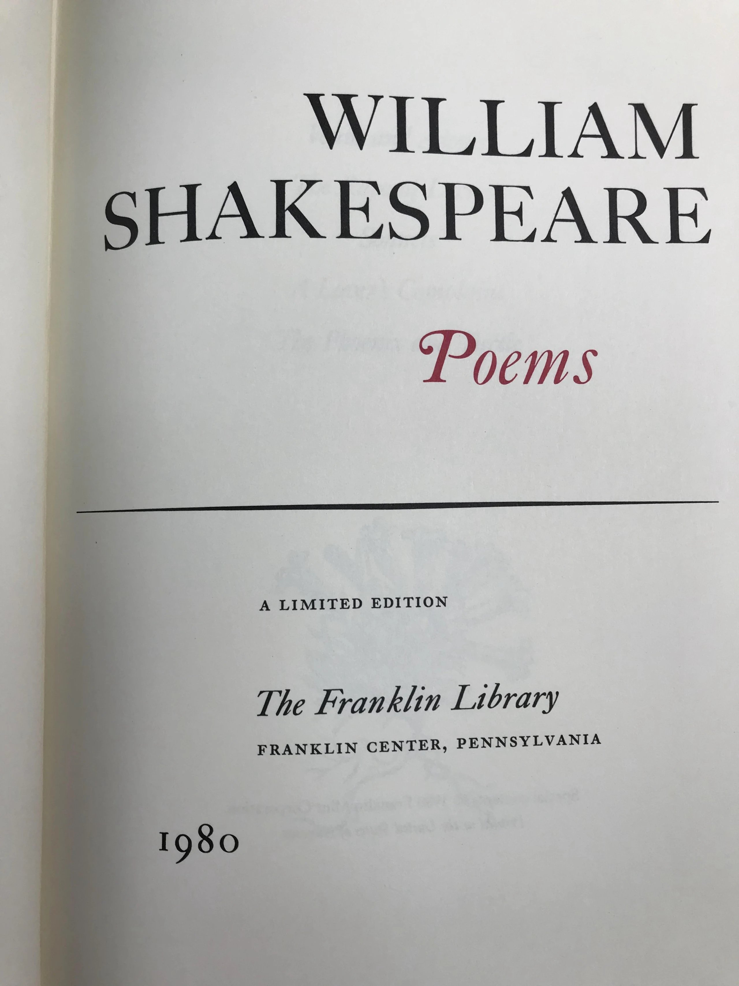 限量版!含藏书票 威廉・莎士比亚《威廉・莎士比亚诗集》 配插图 富兰克林图书馆豪华皮装本