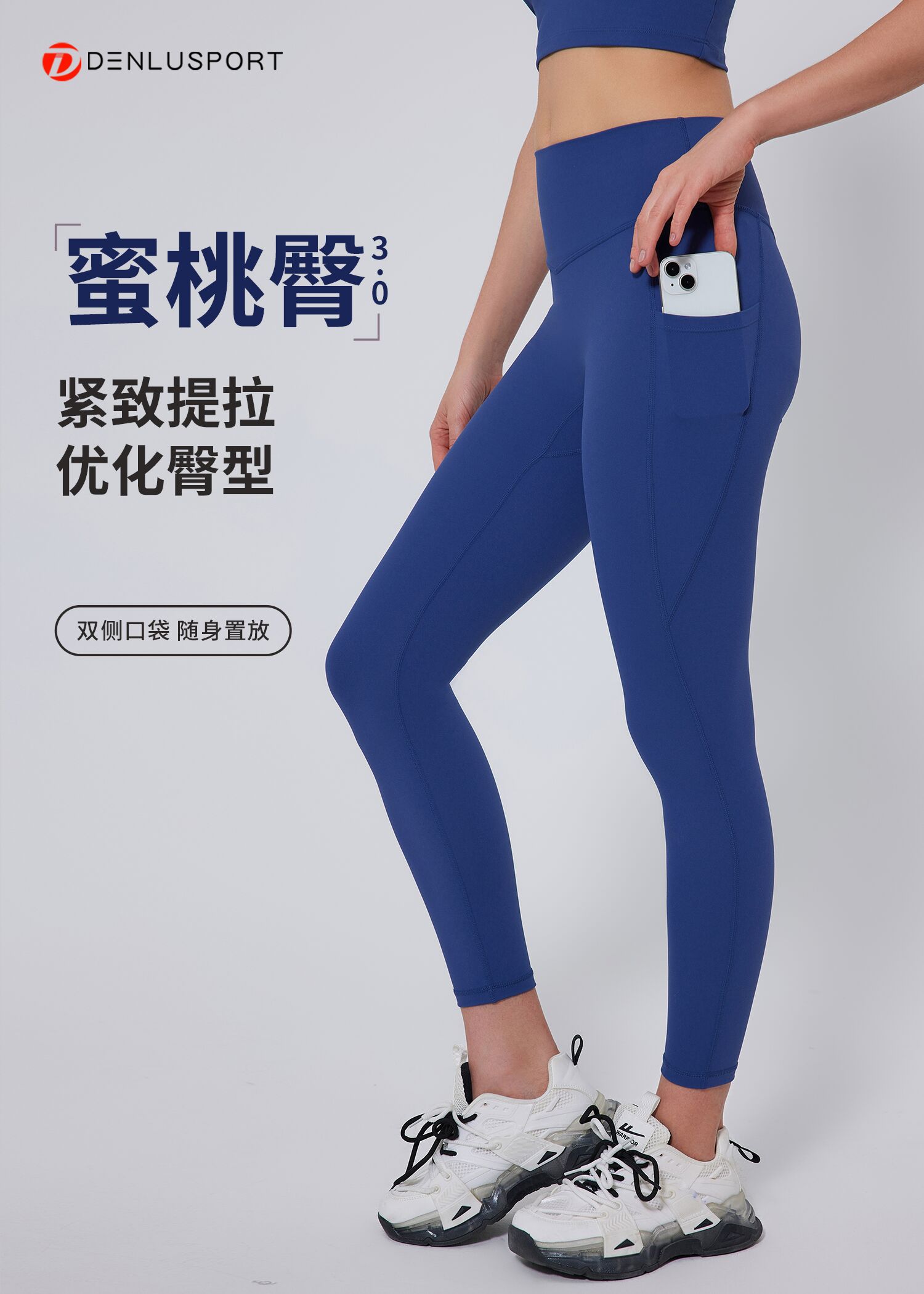 跨境原单双面磨毛高腰提臀瑜伽健身裤双测口袋设计时尚休闲DK95082