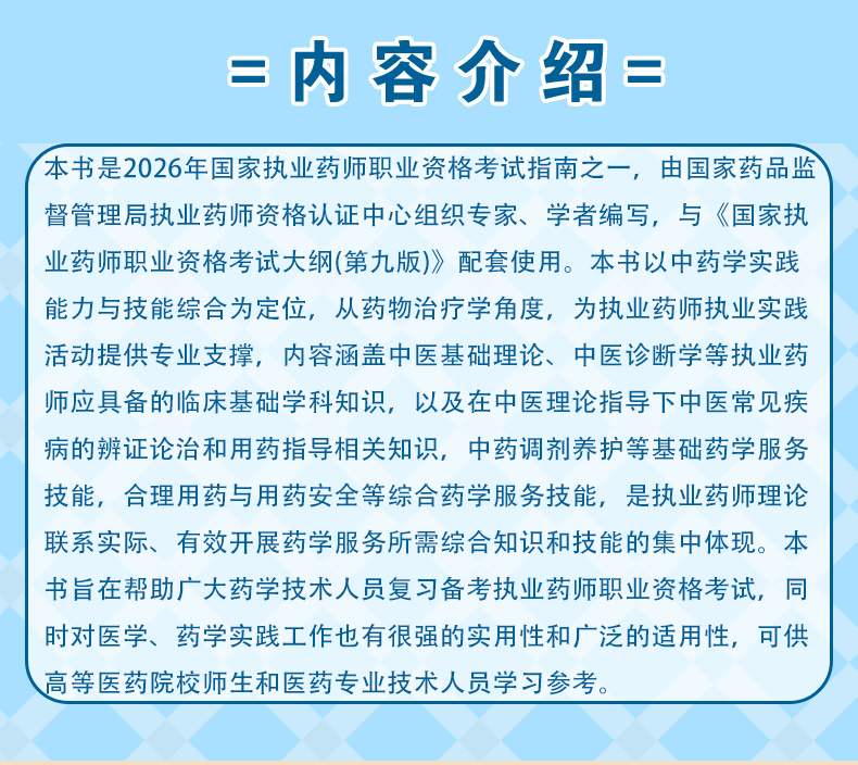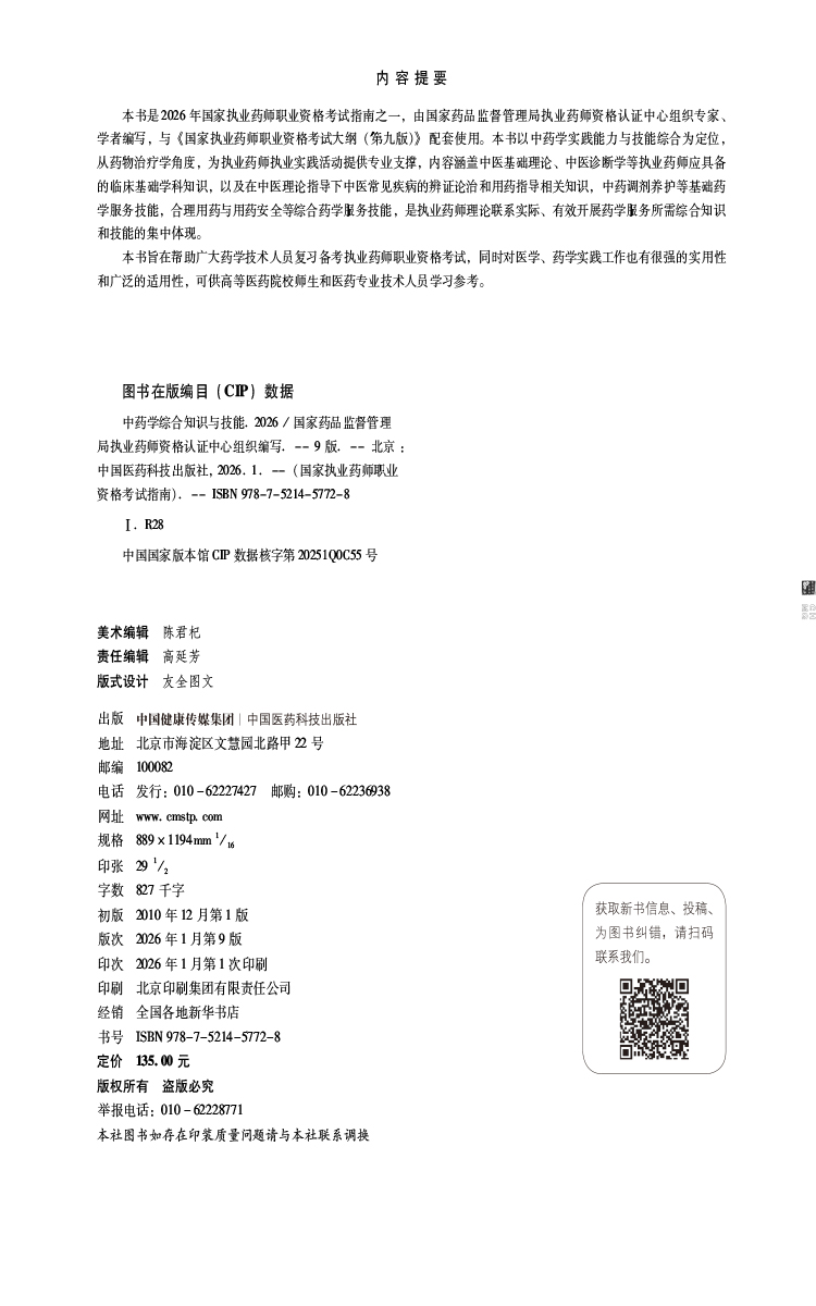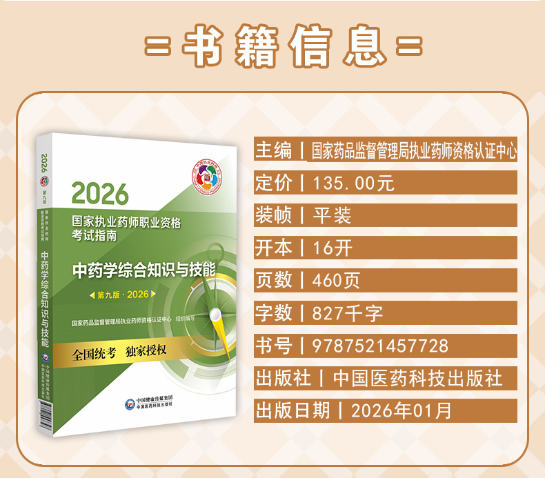 书名:2026中药学综合知识与技能(第九版·2026)(国家执业药师职业资格考试指南)