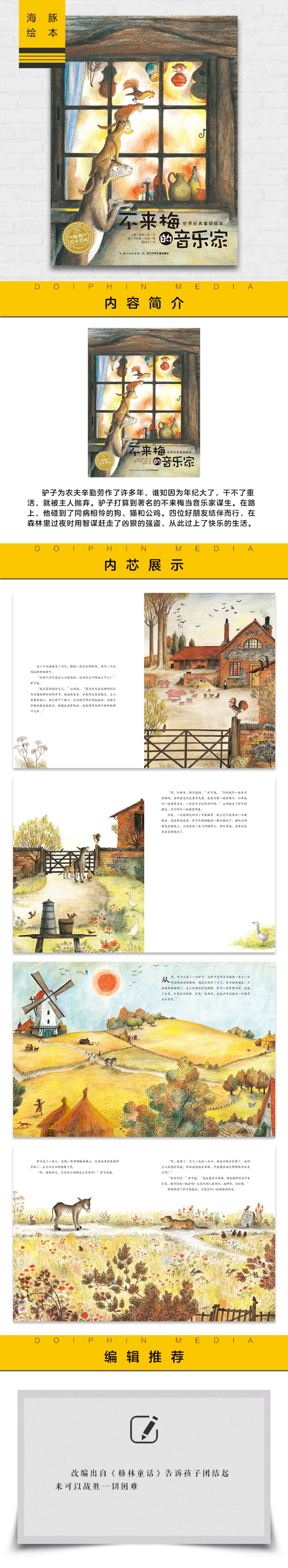 不来梅的音乐家 平装海豚绘本花园儿童图画故事书幼儿园宝宝0-6岁幼儿亲子阅读平装读物