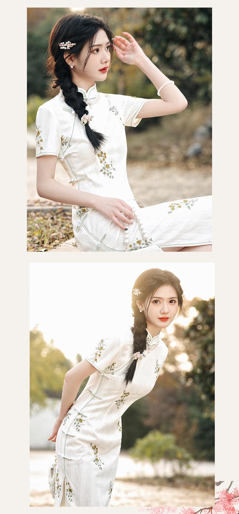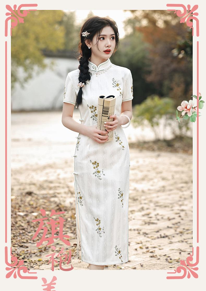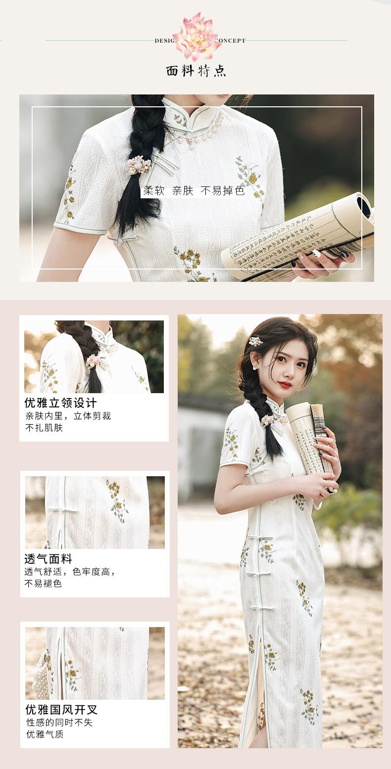 2023春夏新款复合蕾丝绣花旗袍连衣裙清新日常改良少女年轻款旗袍
