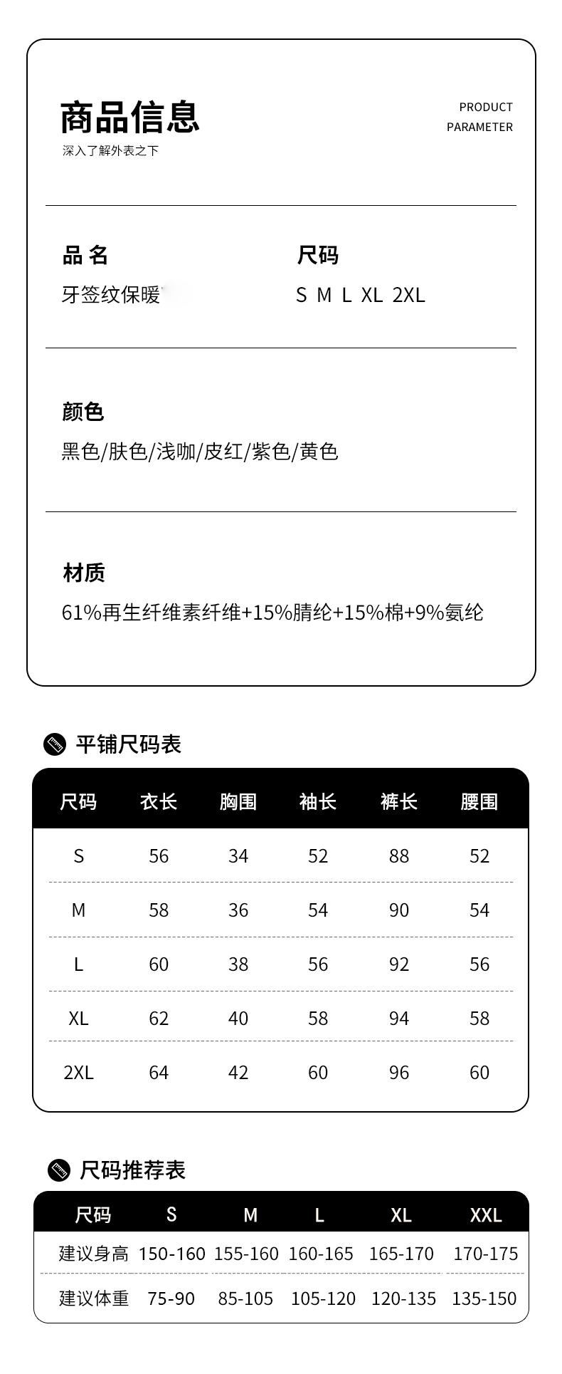 【材质】:61再生纤维素纤维(含羊绒蛋白)+15晴纶(自发热德绒)+15%棉+9%氨纶