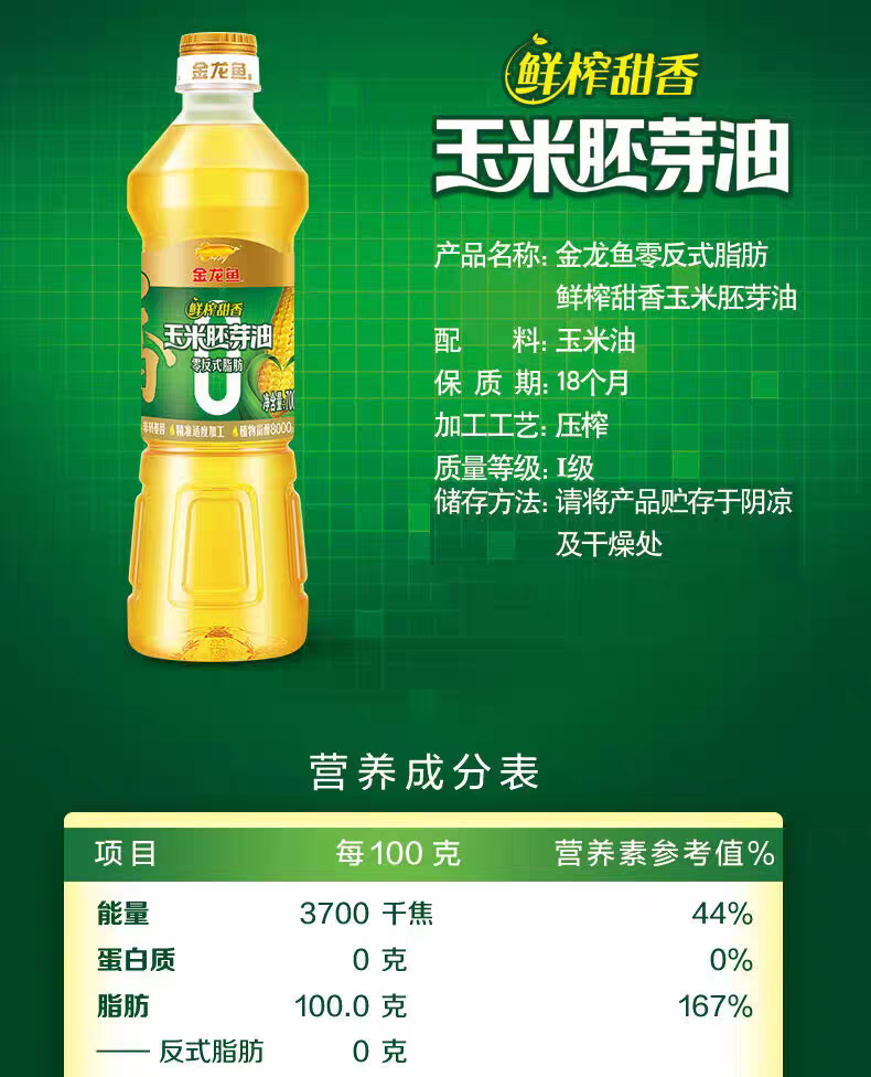 【八十八倉甄选】金龙鱼零反式脂肪鲜榨甜香玉米胚芽油700ml
