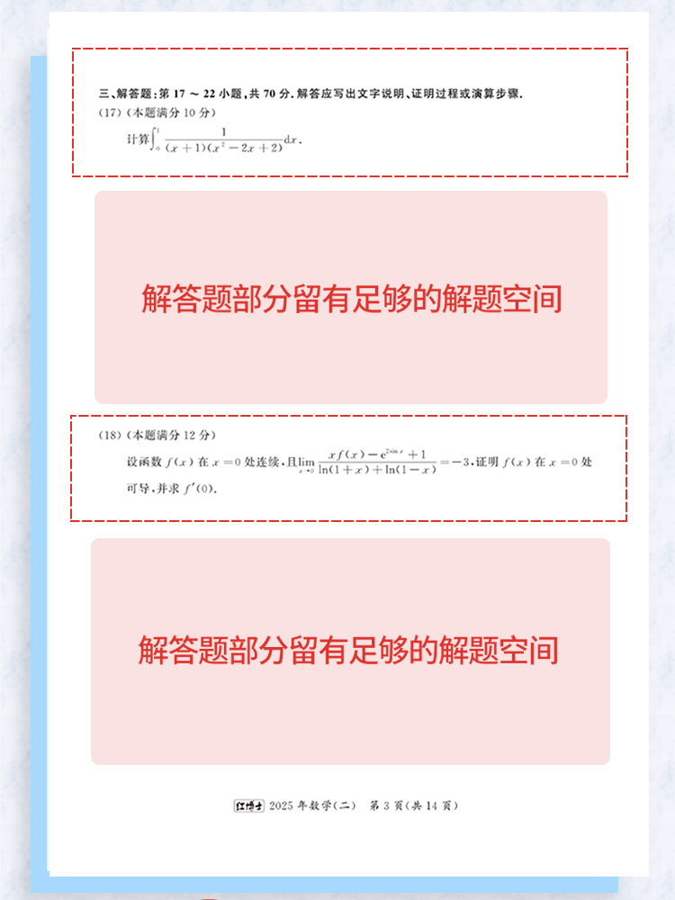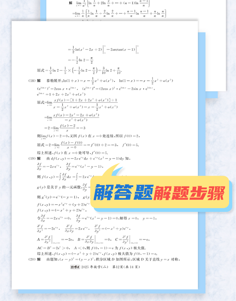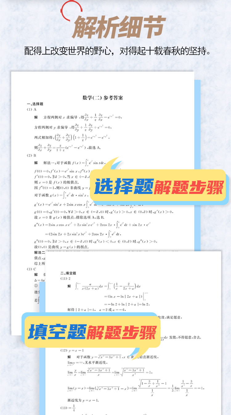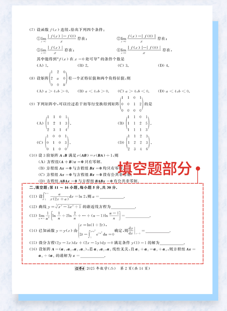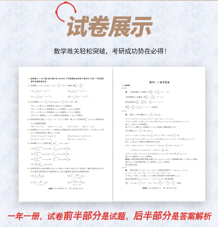 2027考研数学二历年真题试卷2011-2025共15年张天德302活页试卷标准答案解析大题留白
