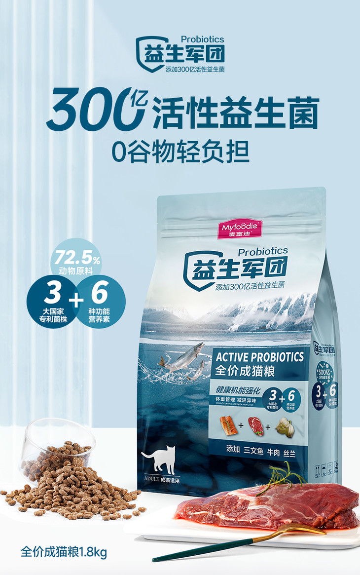 麦富迪益生菌猫粮成猫粮12月龄以上适用无谷物全价营养猫粮1.8kg