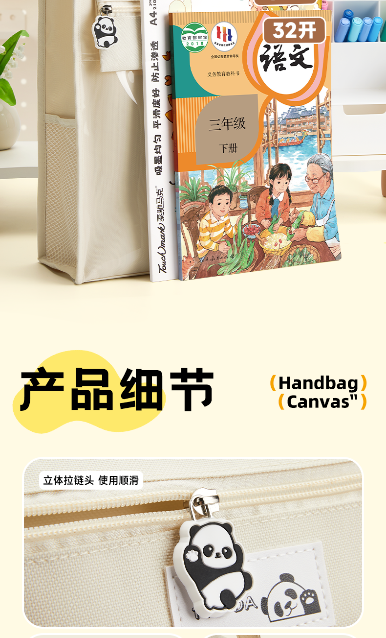 Touchmark手提补习袋帆布袋大容量学生课本手提多口袋收纳袋