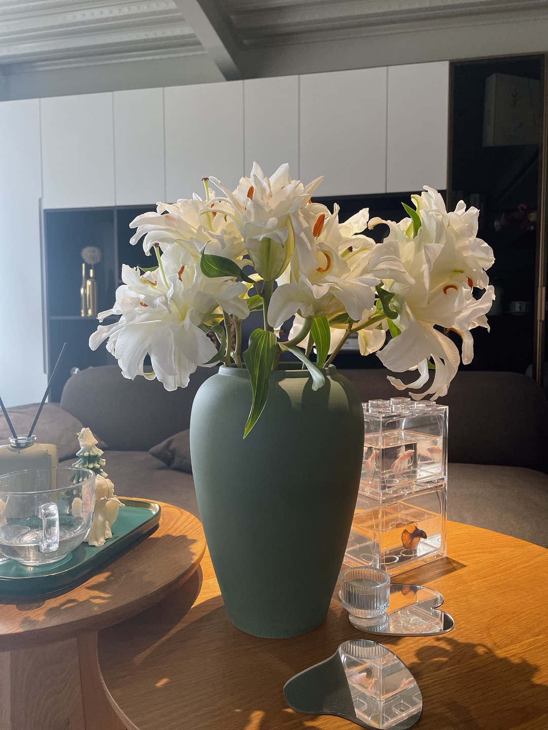 清纯淡雅的她,带这些许泡泡纱的质感, 比起普通百合,滑雪板更显贵气,有人间富贵花的俗称哦~这边建议买一个陶罐花瓶养百合,特别特别的美