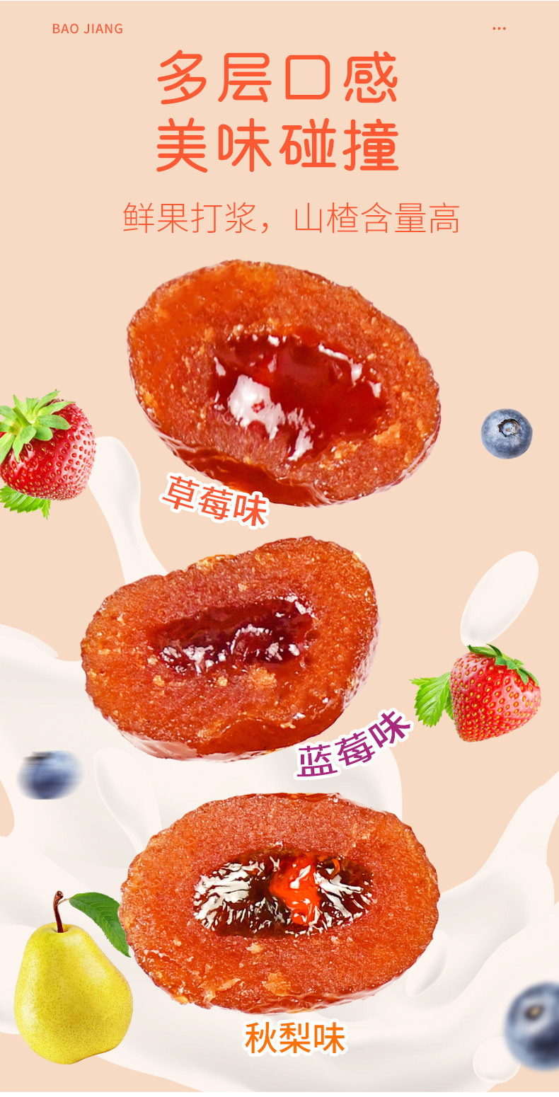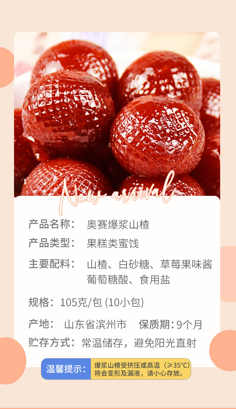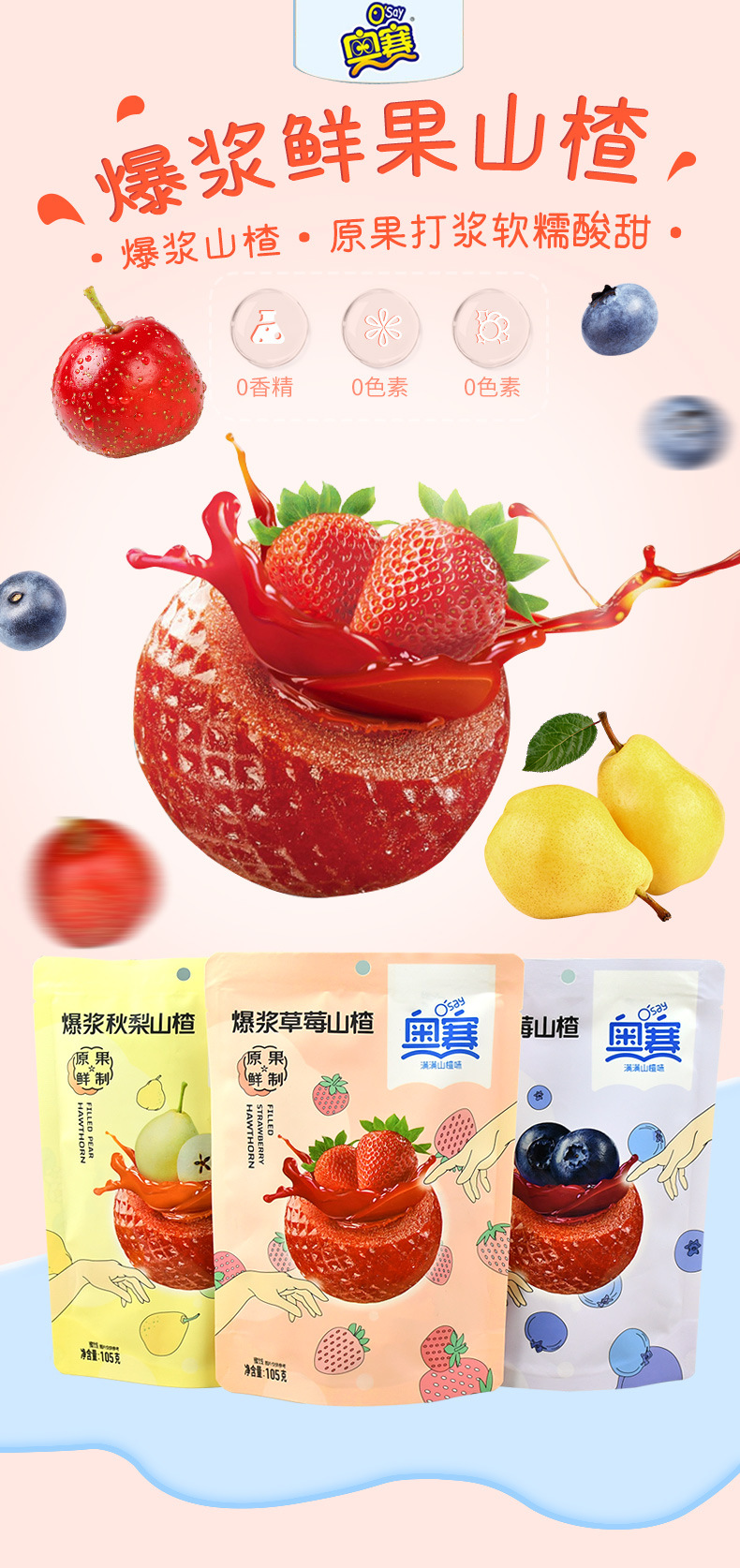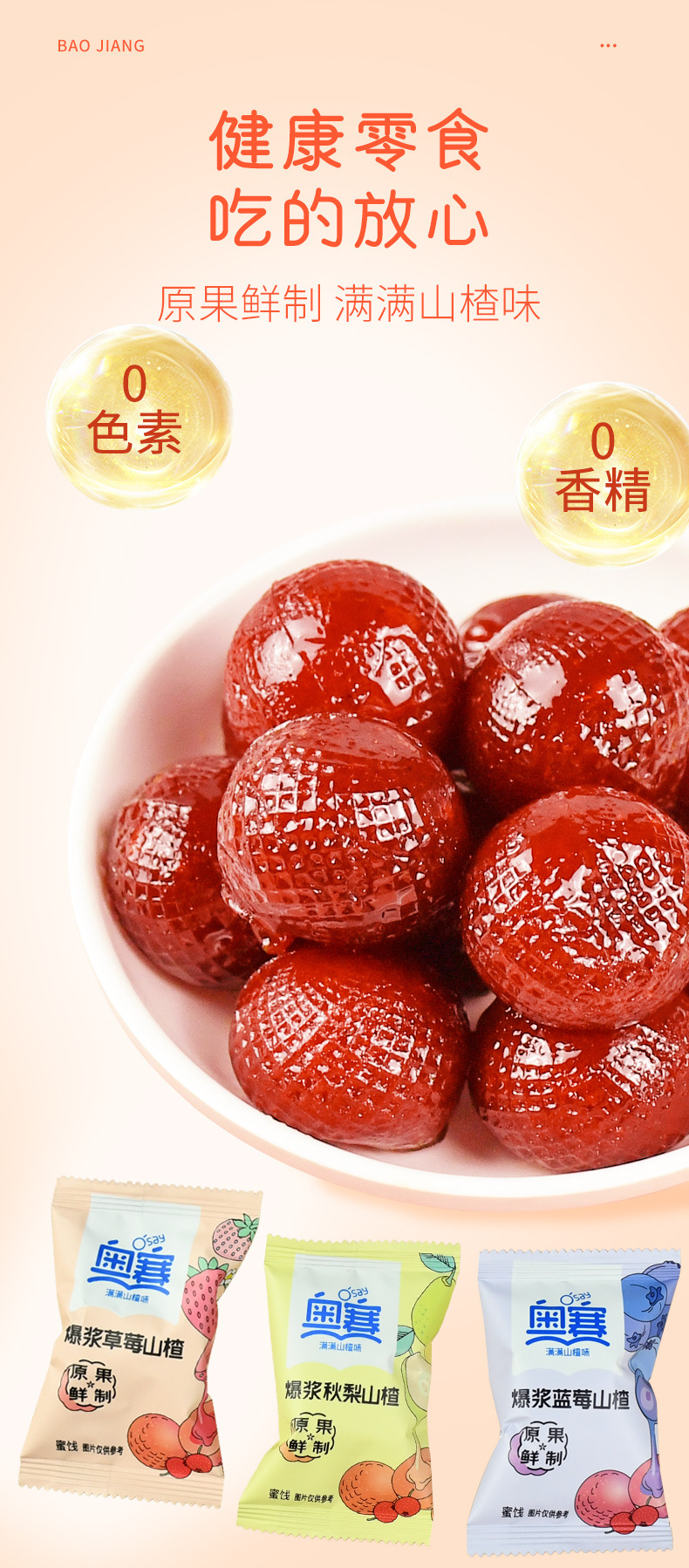 【有“内涵”的山楂球!奥赛爆浆山楂】鲜果打浆山楂含量高!蓝莓味草莓味秋梨味,外Q内软酸酸甜甜好开味,健康零食山楂夹心蜜饯休闲零食Y