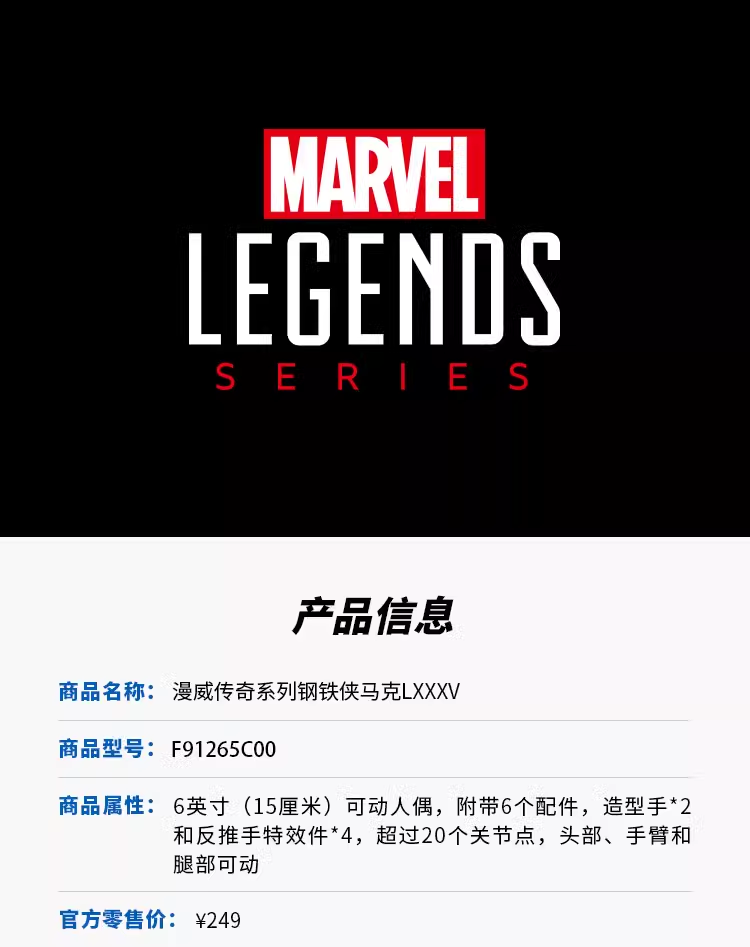 Hasbro 漫威传奇公仔钢铁侠HASCF91265C00