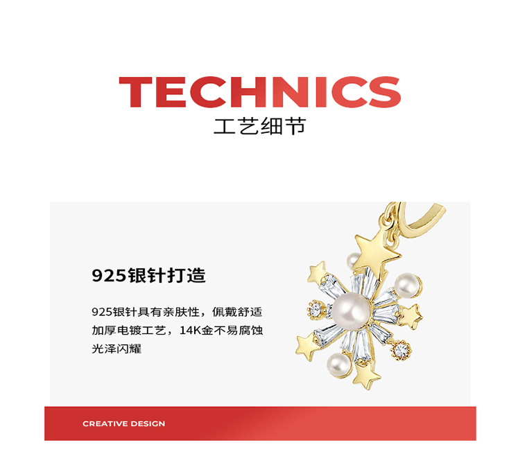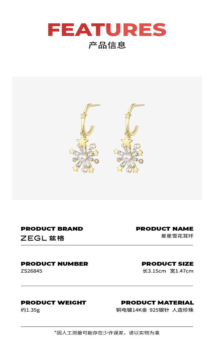 ZEGL圣诞星星雪花耳环女轻奢高级感耳钉ins风925银针秋冬季耳饰品