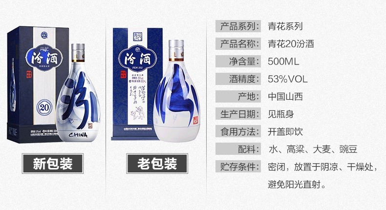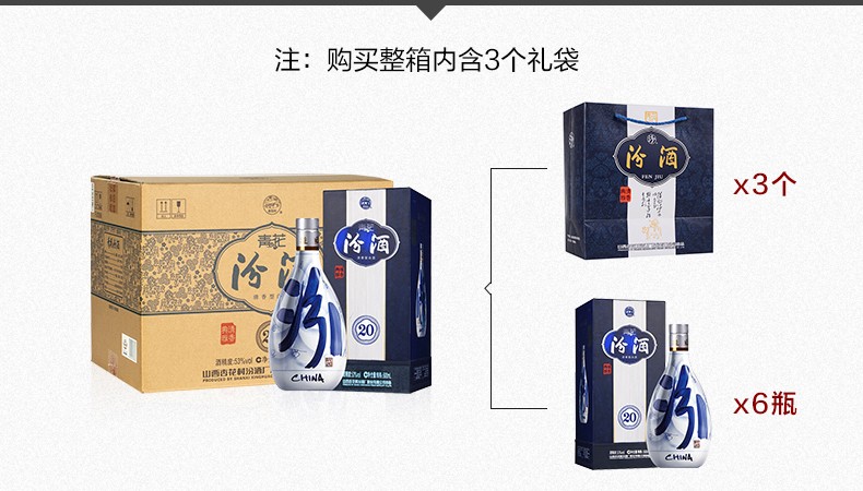 【实体商超版非电商版】汾酒(53度青花20) 500ml*6瓶/箱 全国包邮