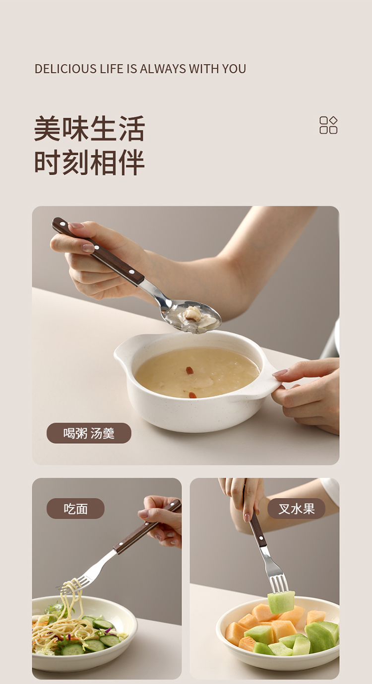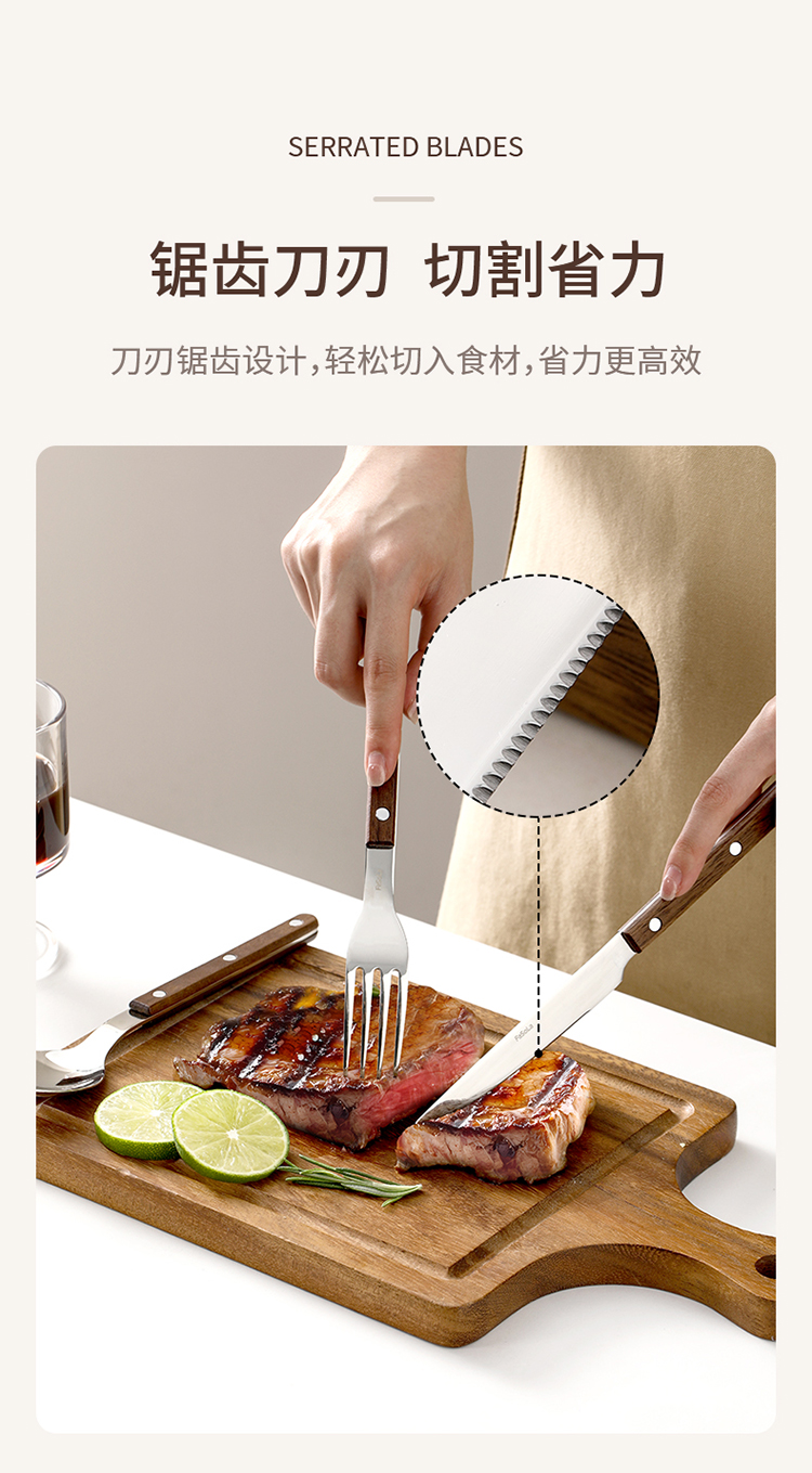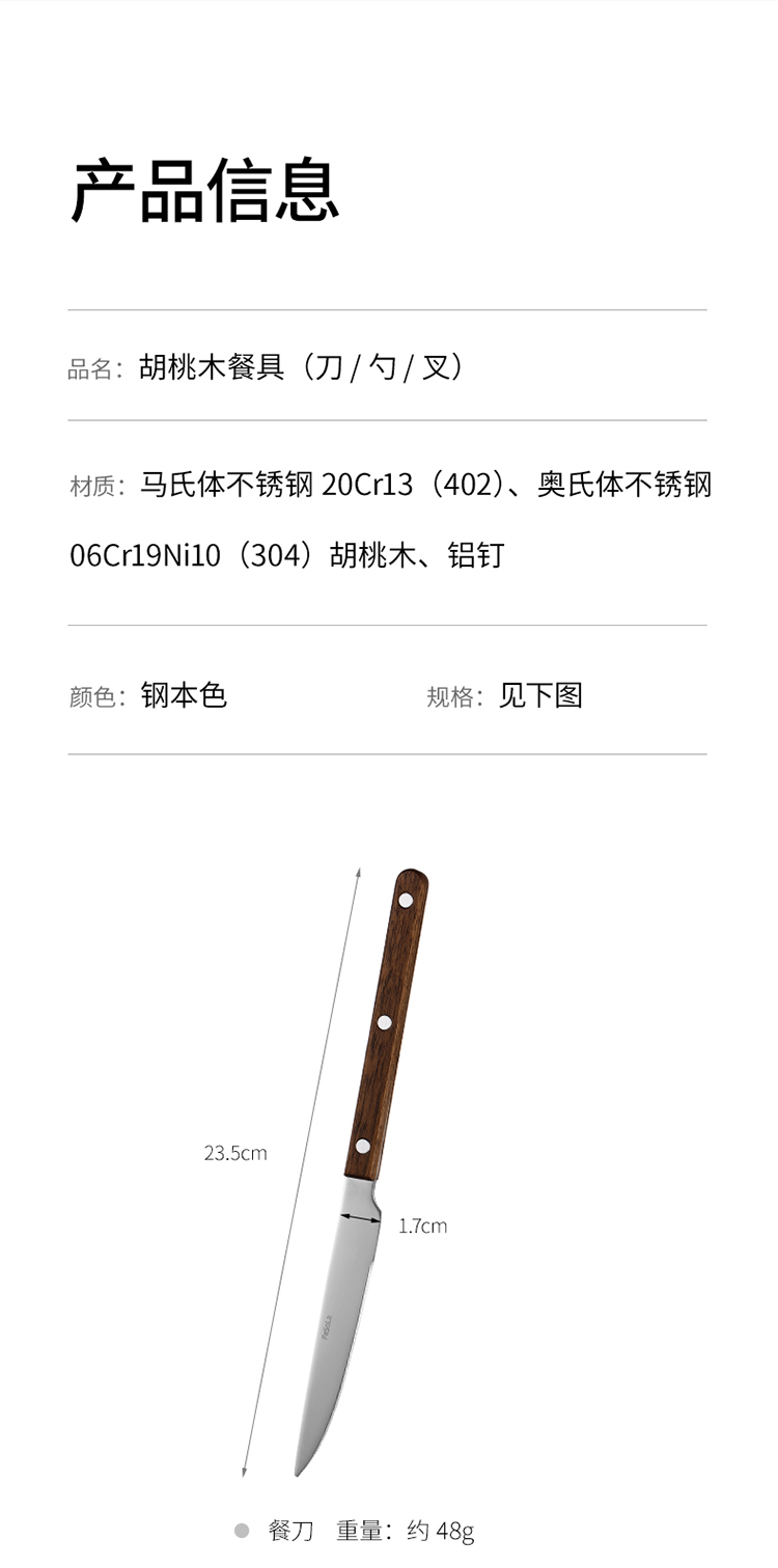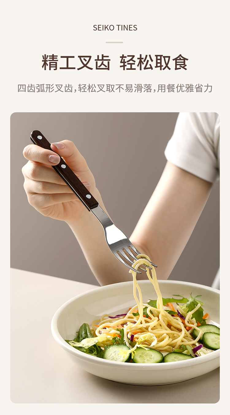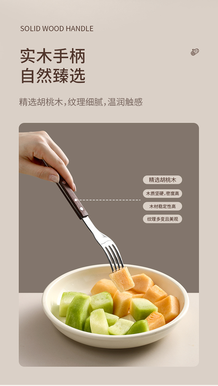 FaSoLa西餐刀叉勺三件套304不锈钢牛排刀叉复古高级感胡桃木餐具