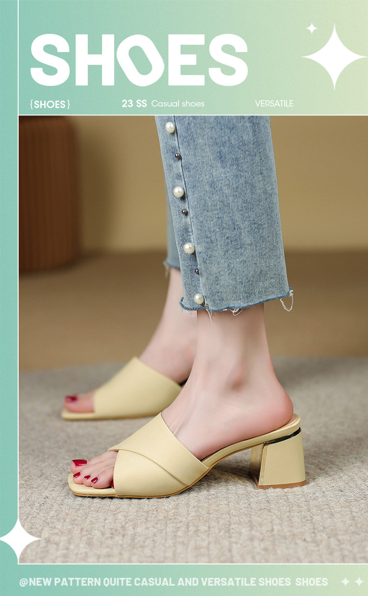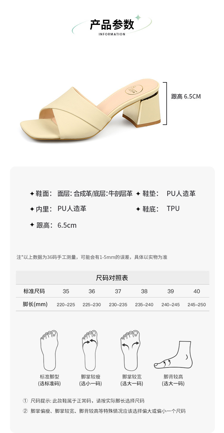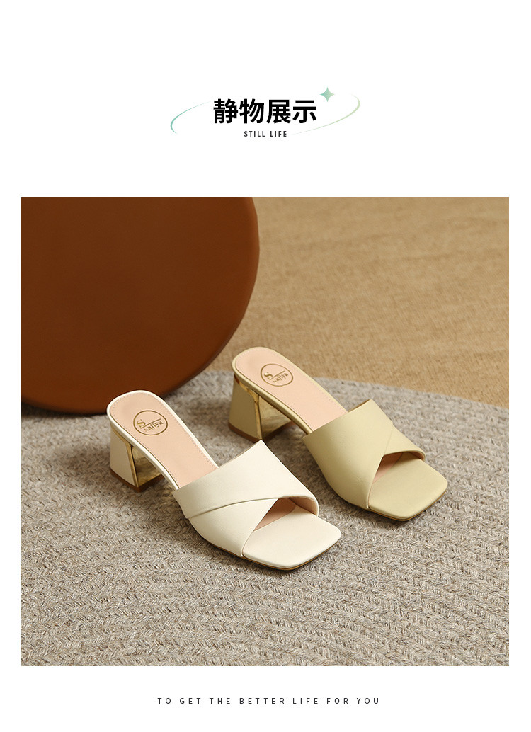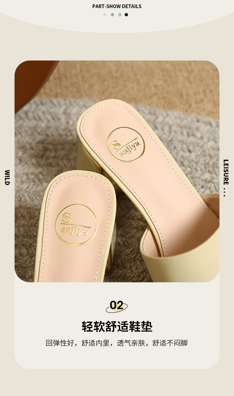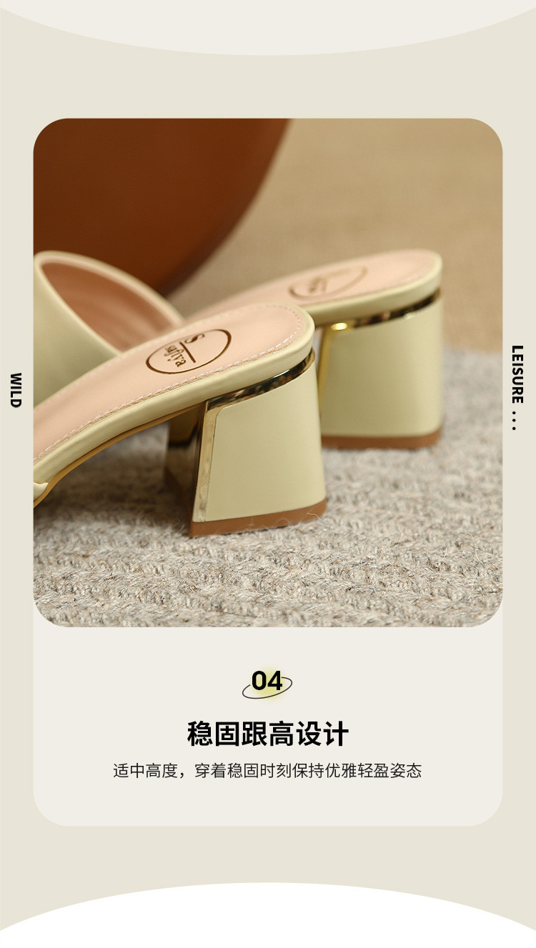 品质好货 | Safiya索菲娅2023新款二层牛皮鞋外穿凉拖粗跟高跟鞋百搭拖鞋子女鞋