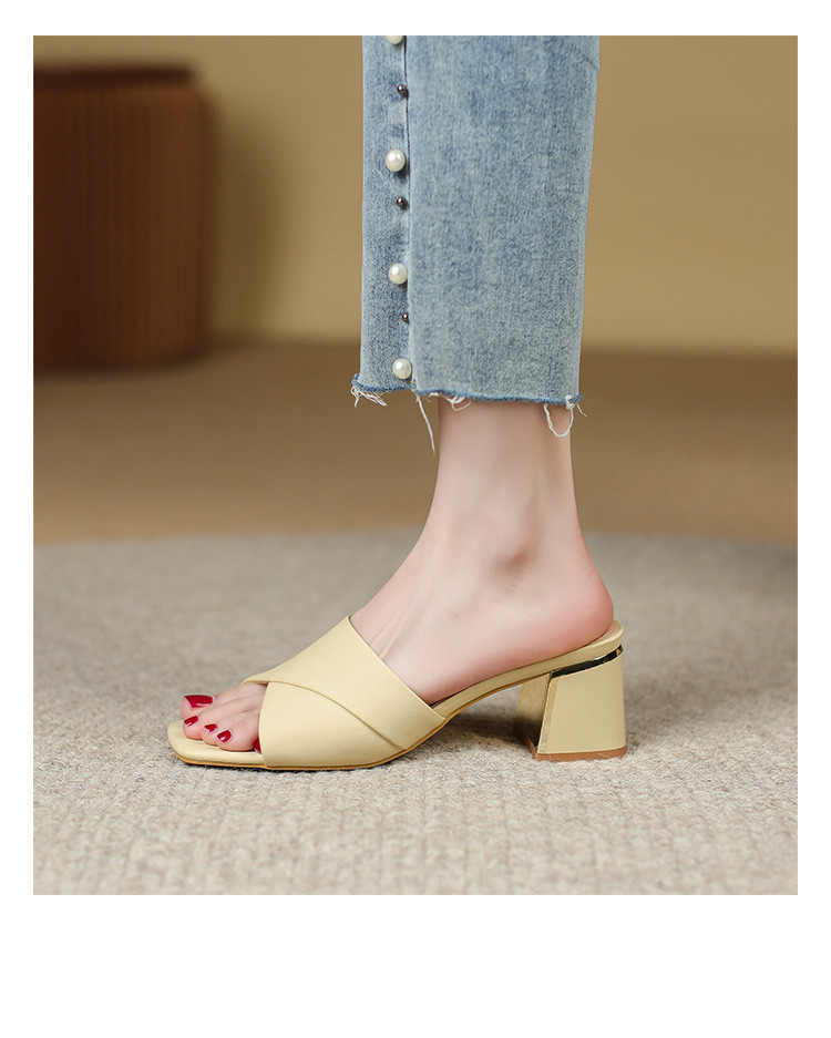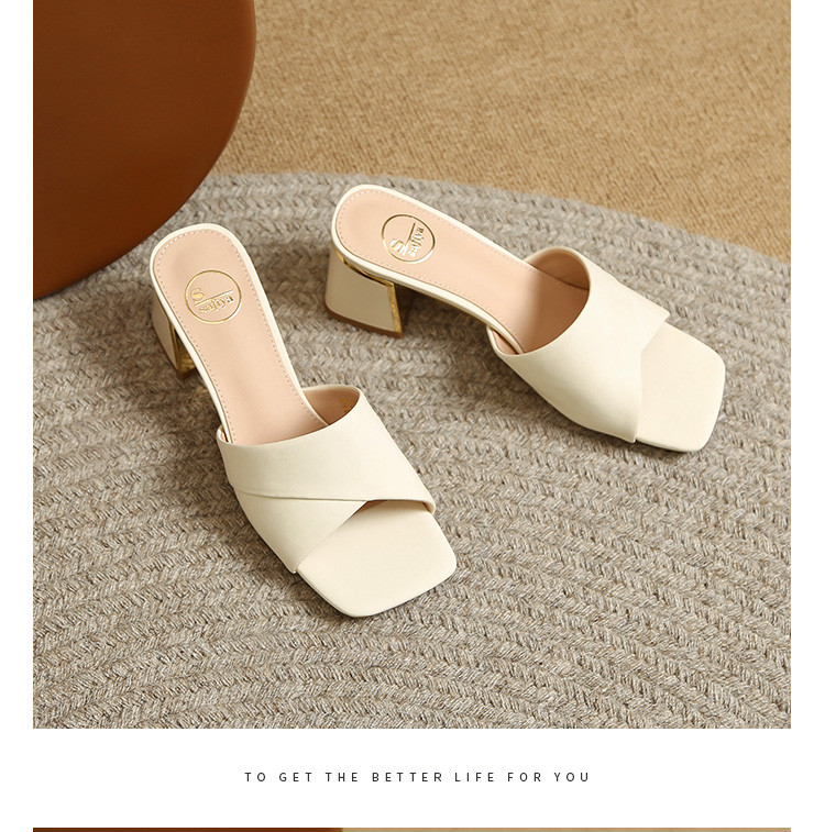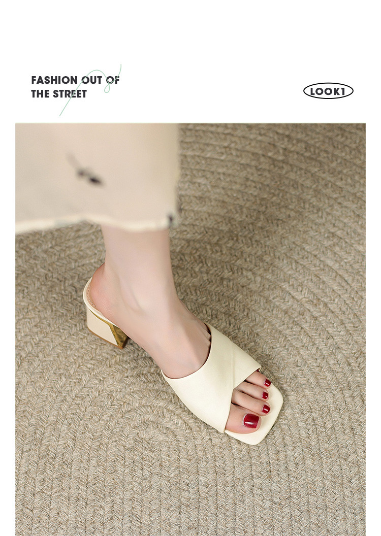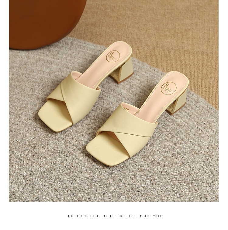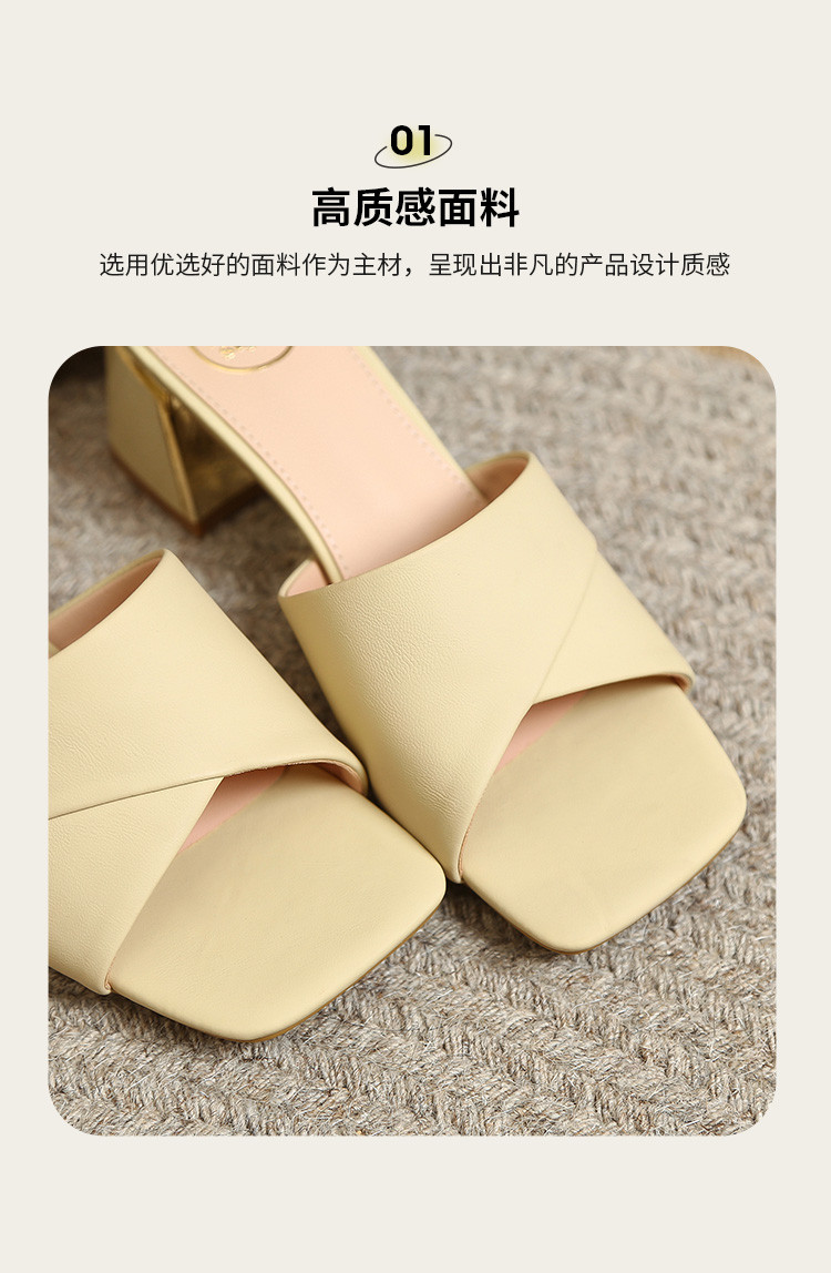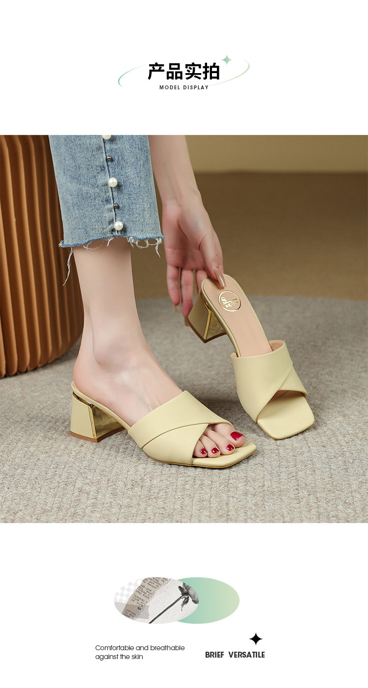 品质好货 | Safiya索菲娅2023新款二层牛皮鞋外穿凉拖粗跟高跟鞋百搭拖鞋子女鞋