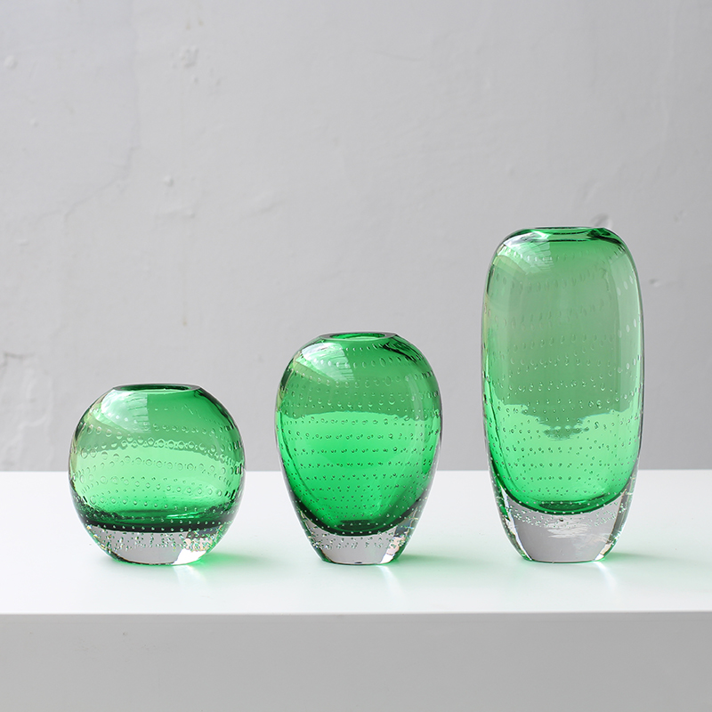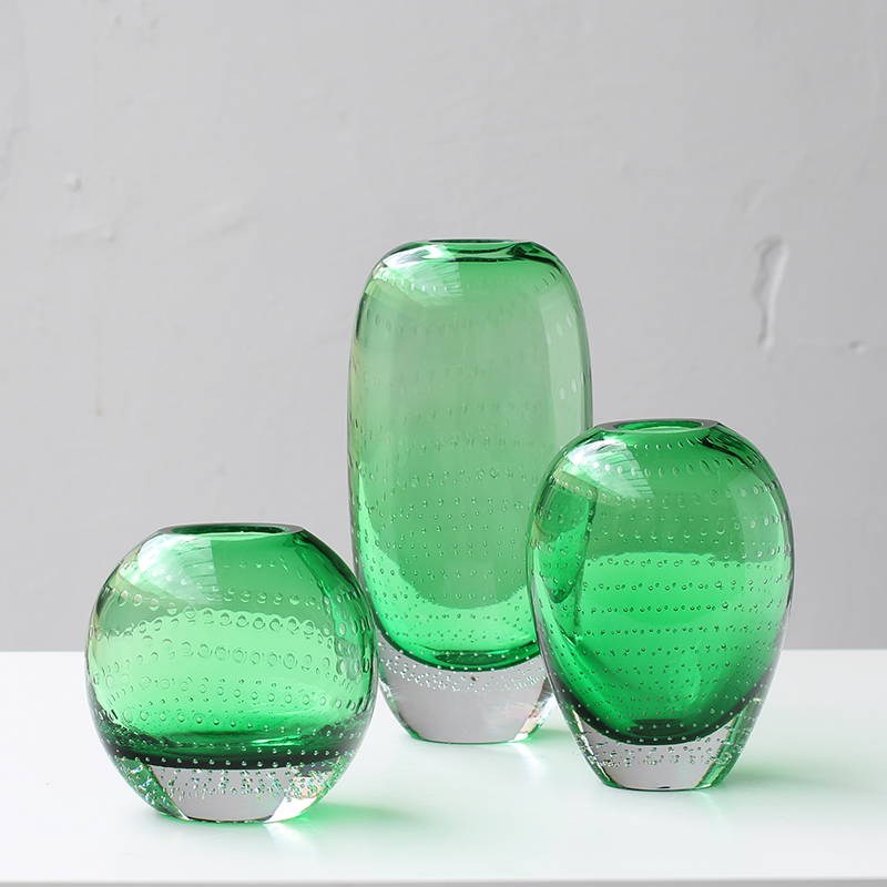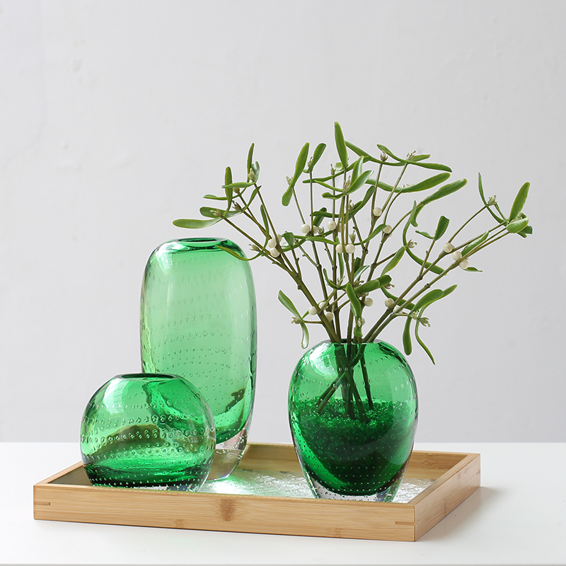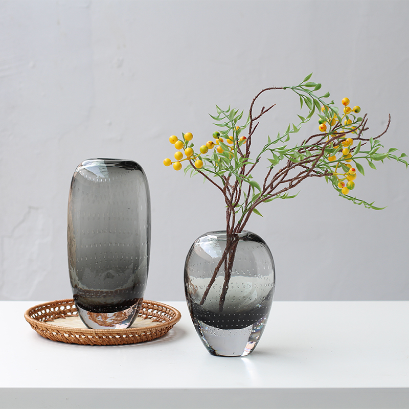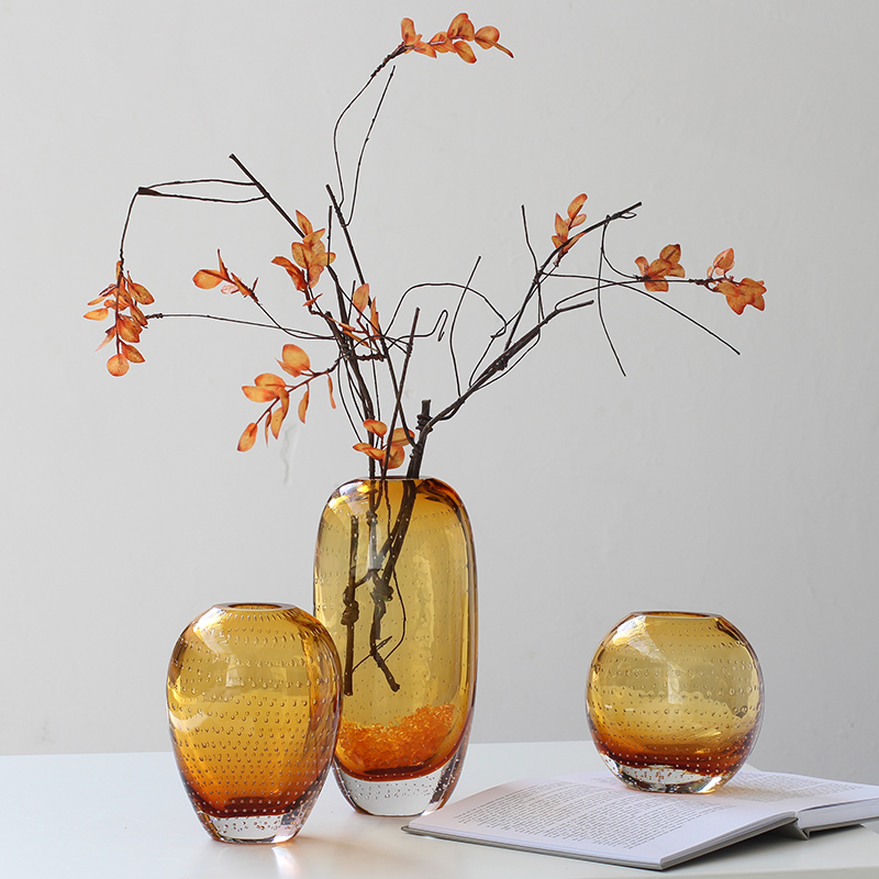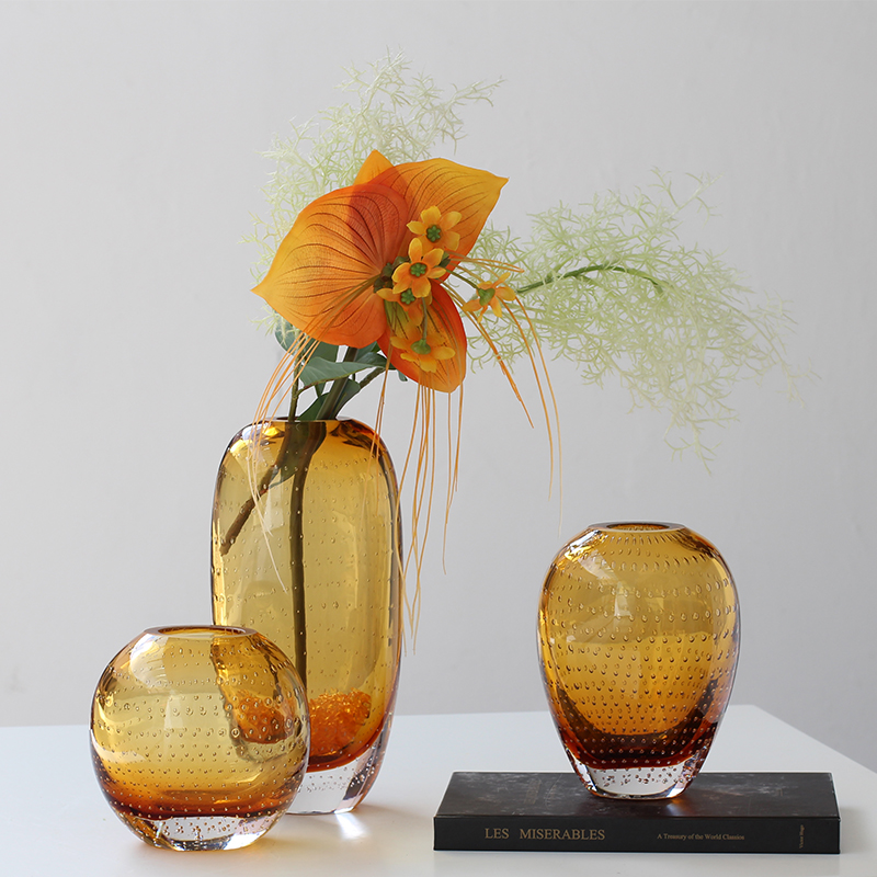 Bixuan 现代艺术透明厚底气泡玻璃花瓶 样板间客厅餐桌装饰花器