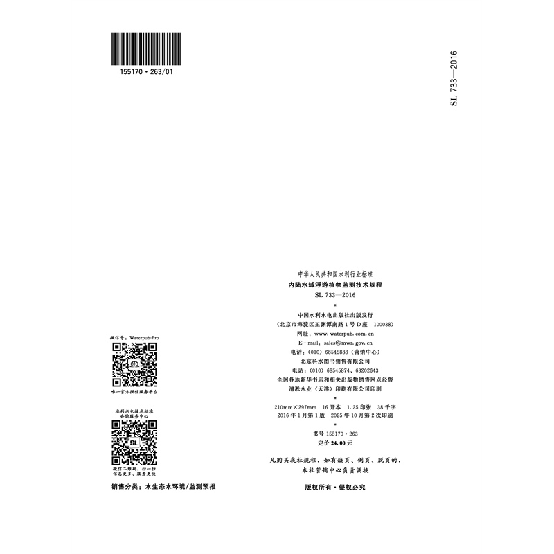 内陆水域浮游植物监测技术规程 SL 733-2016 (中华人民共和国水利行业标准)