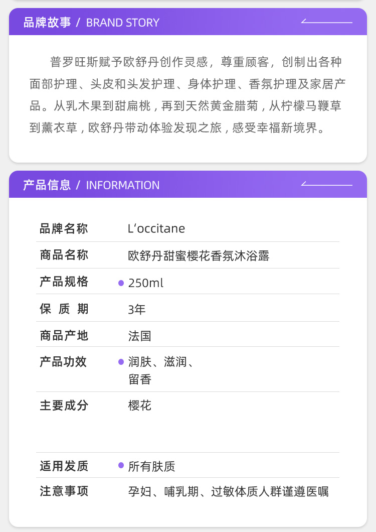 欧舒丹樱花沐浴露250ml