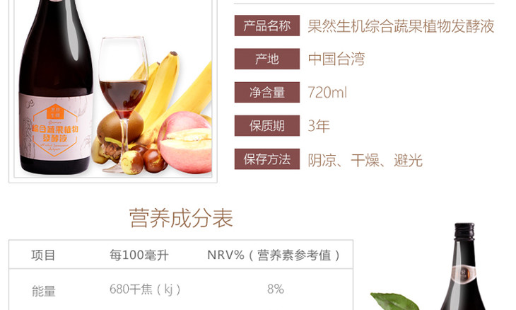 丨生态丨果然生机综合酵素 55种天然果蔬发酵 720ml