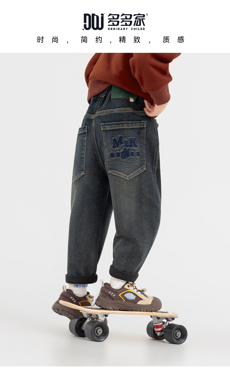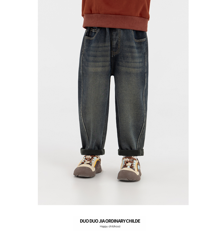 【件件底价,童装双倍积分】多多家男童加绒牛仔裤2025新款秋冬儿童中大童冬装保暖裤男孩裤子11225