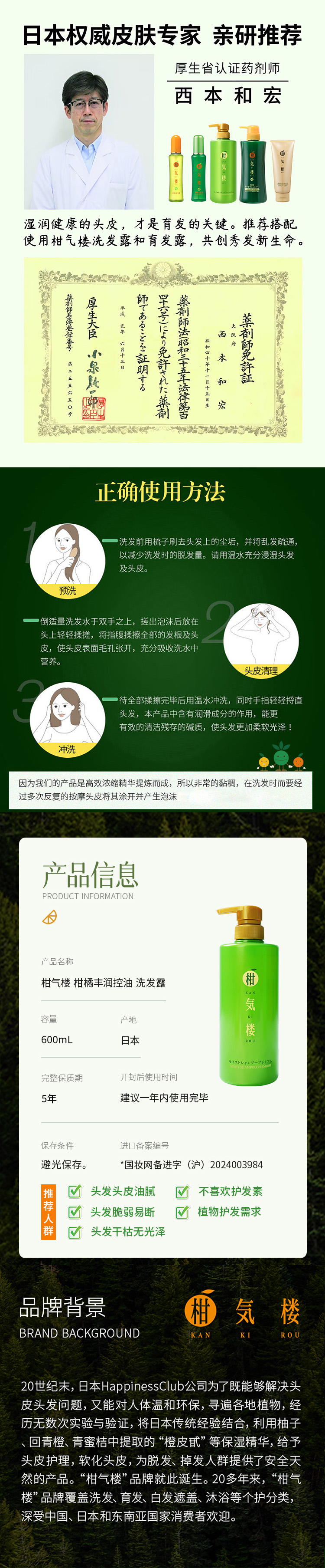 KANKIROU/柑气楼 柑橘丰润控油 洗发露 600g 4573252210733