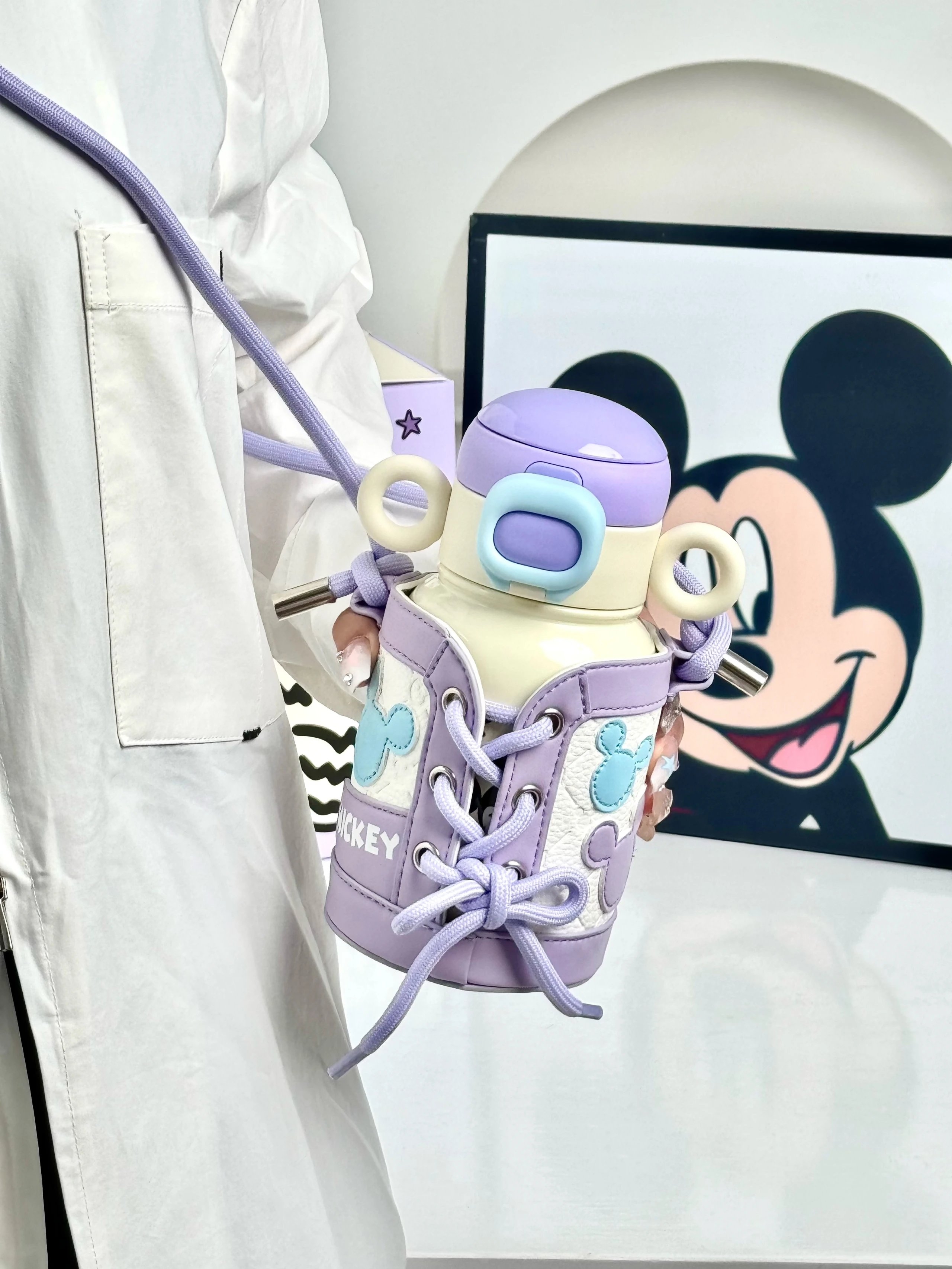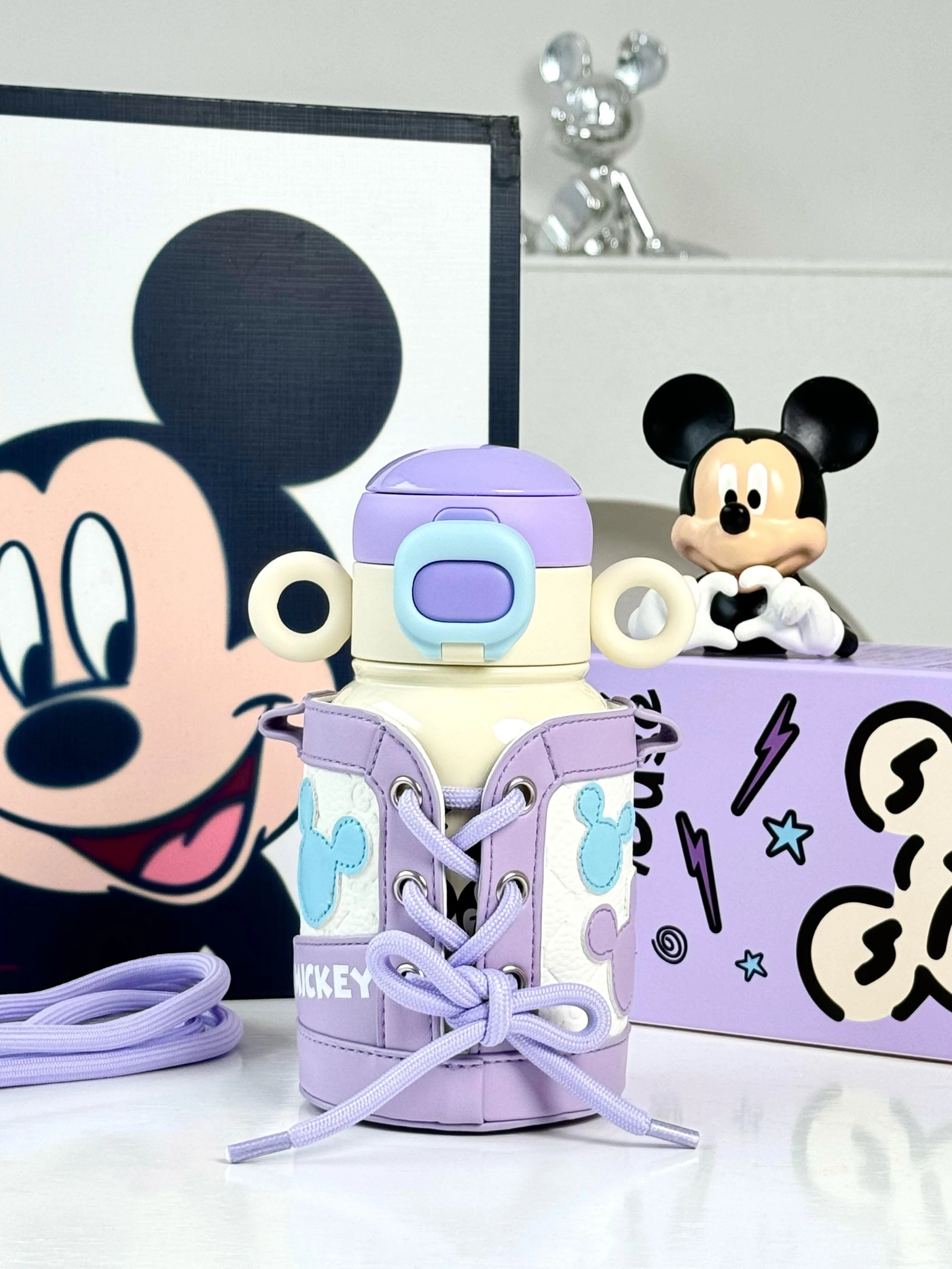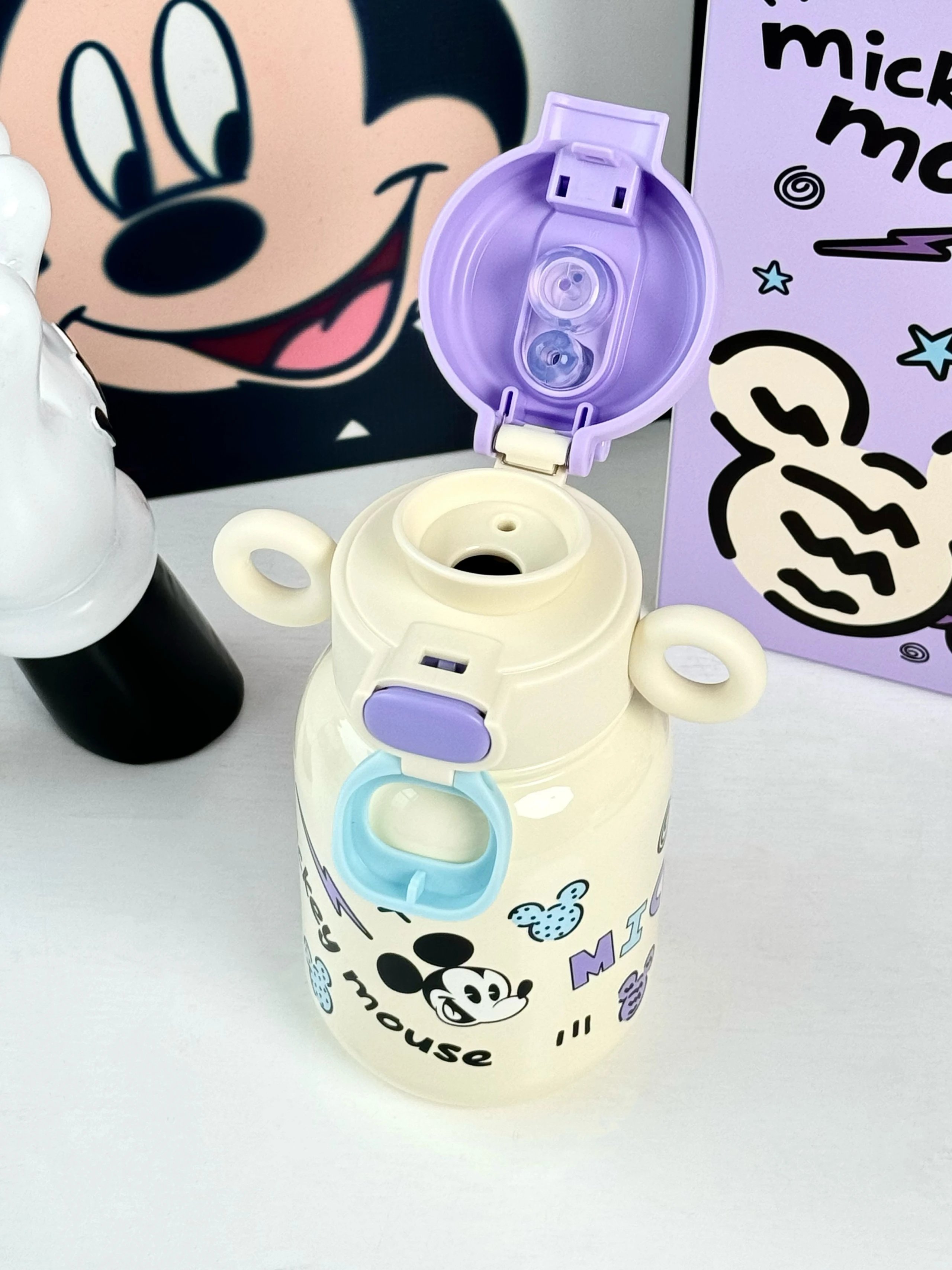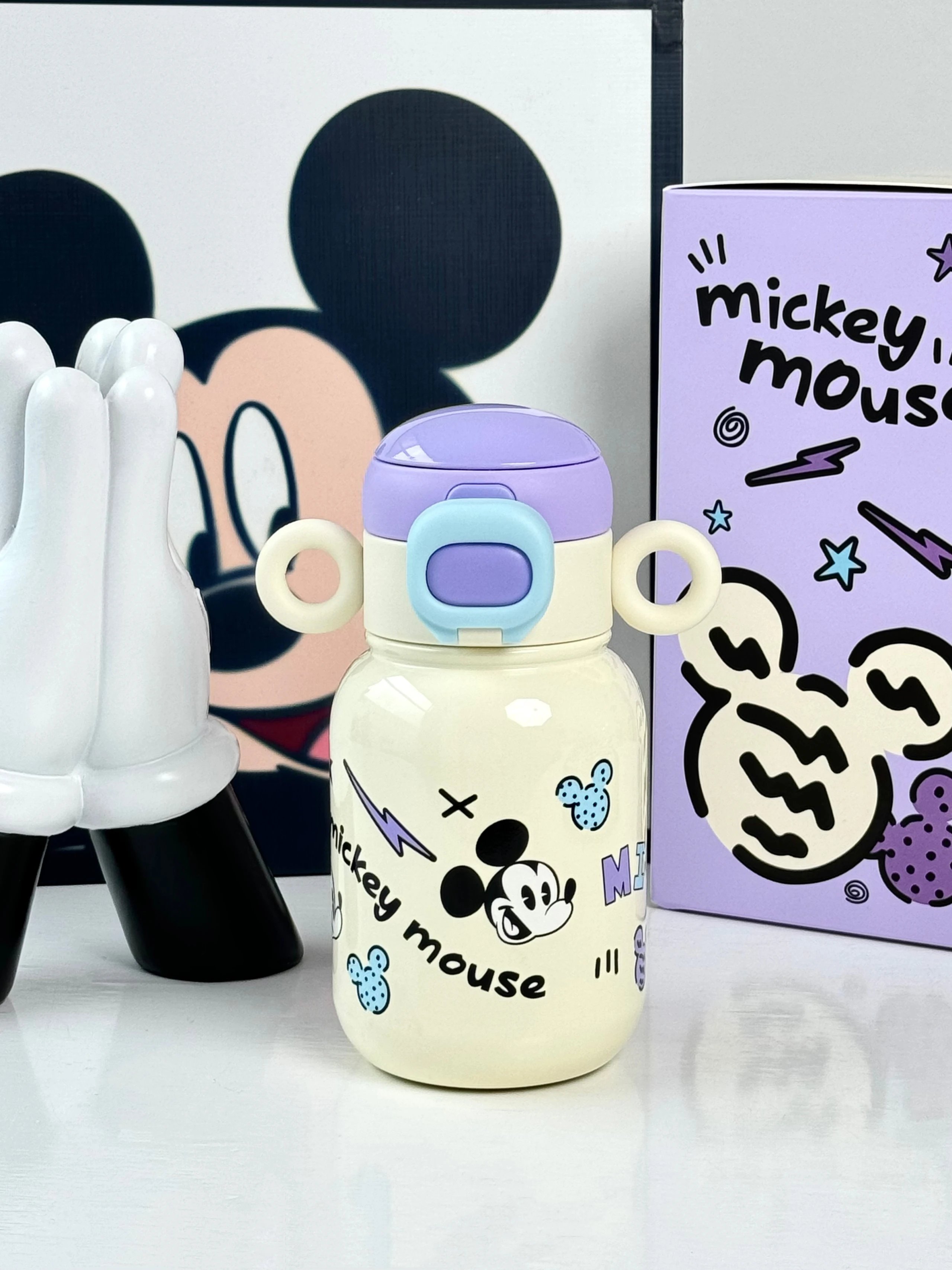 奶呼呼的白色配上紫色 真的又被这个保温杯好看到 500ml 直饮口 吸管口巨实用 杯身还有俏皮可爱的米奇图案 是保温杯届颜值天花板没错了