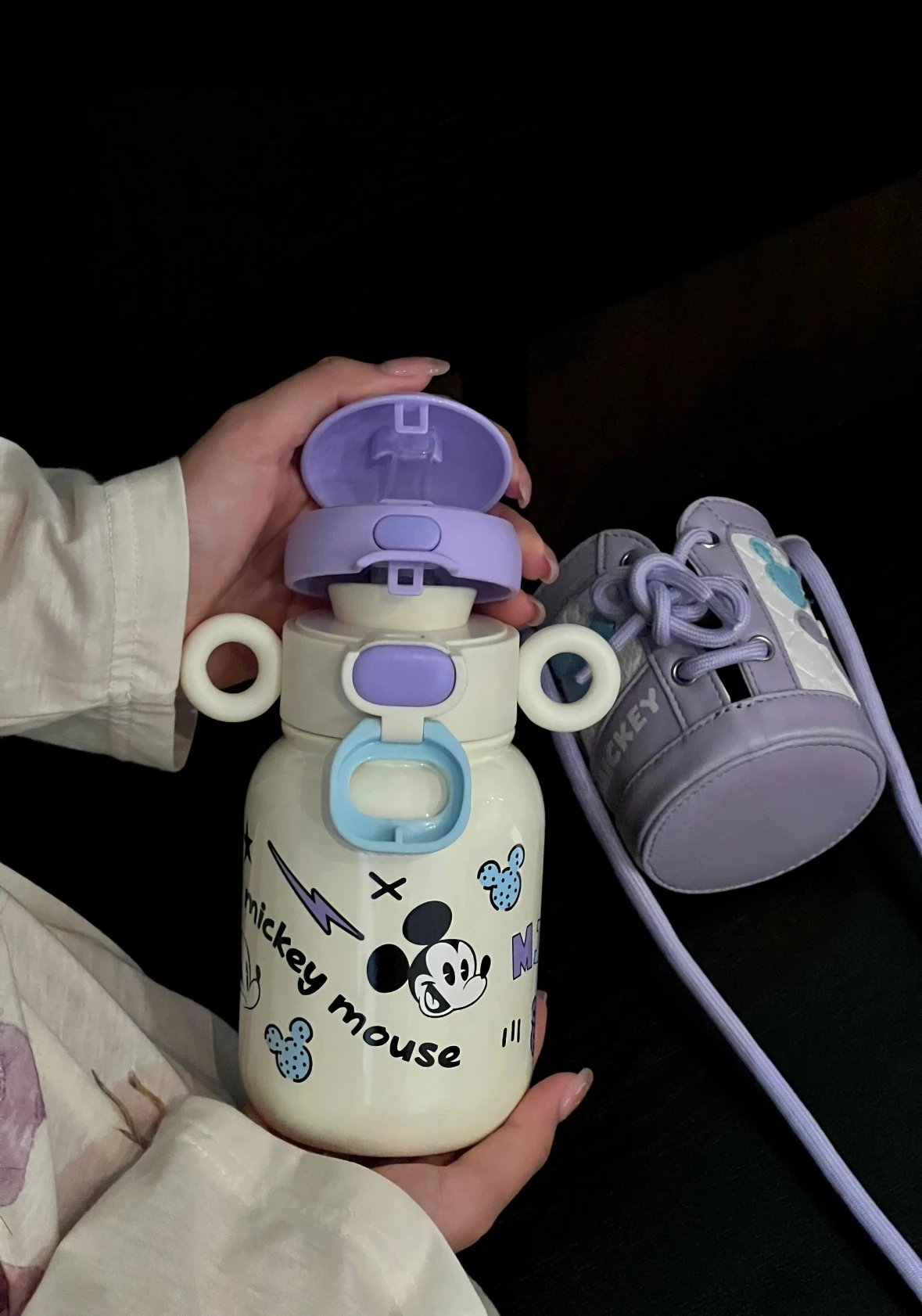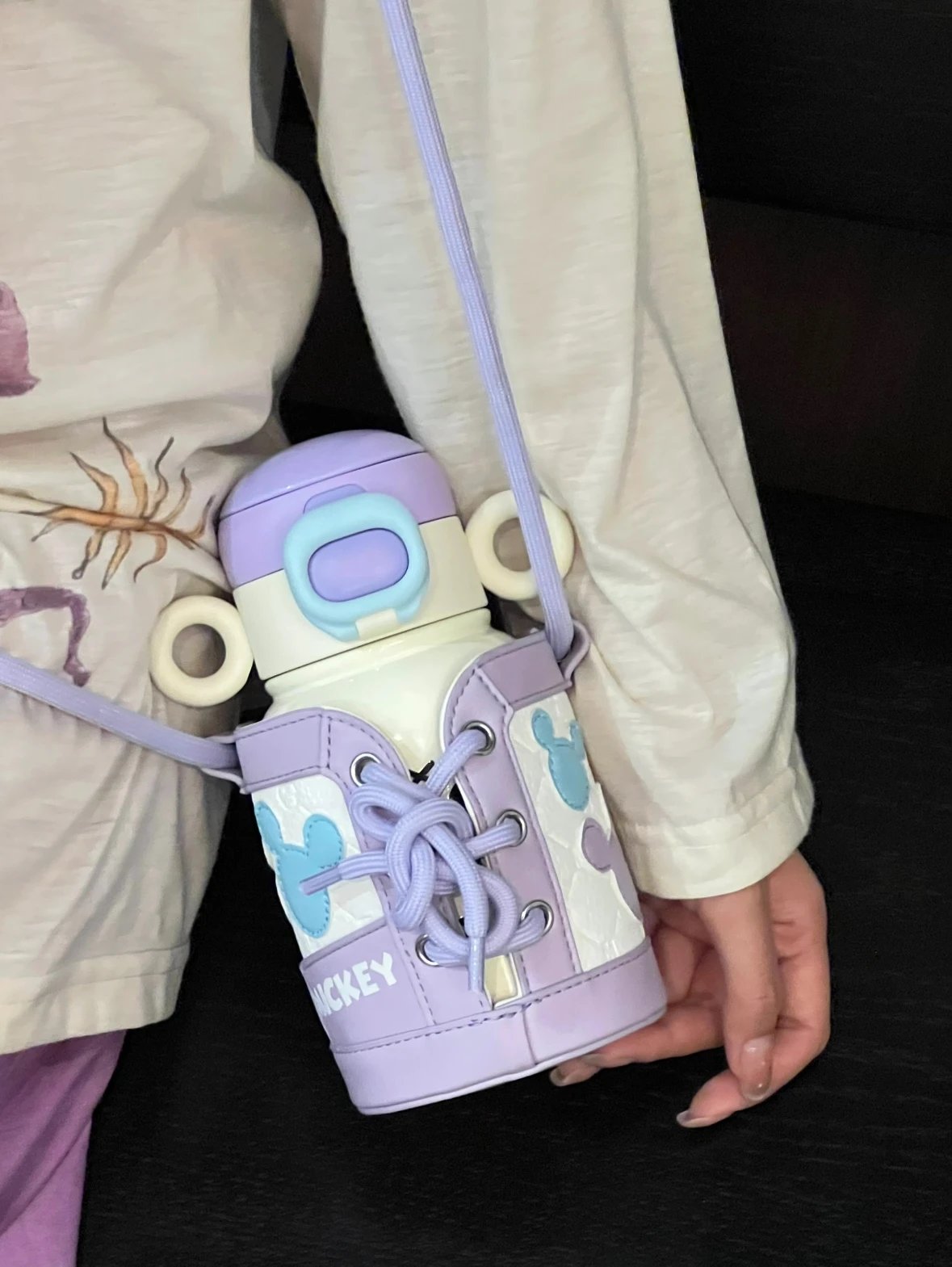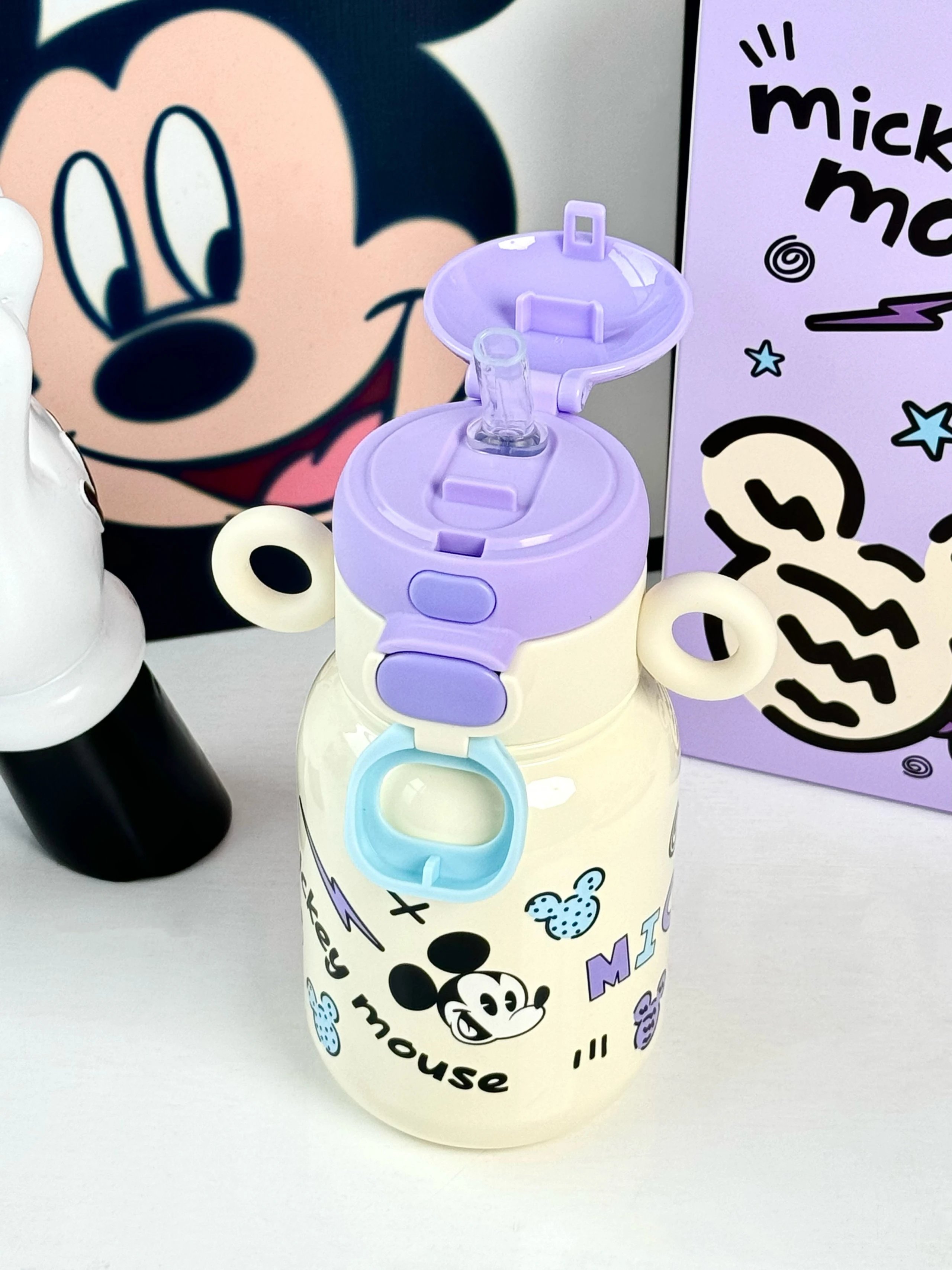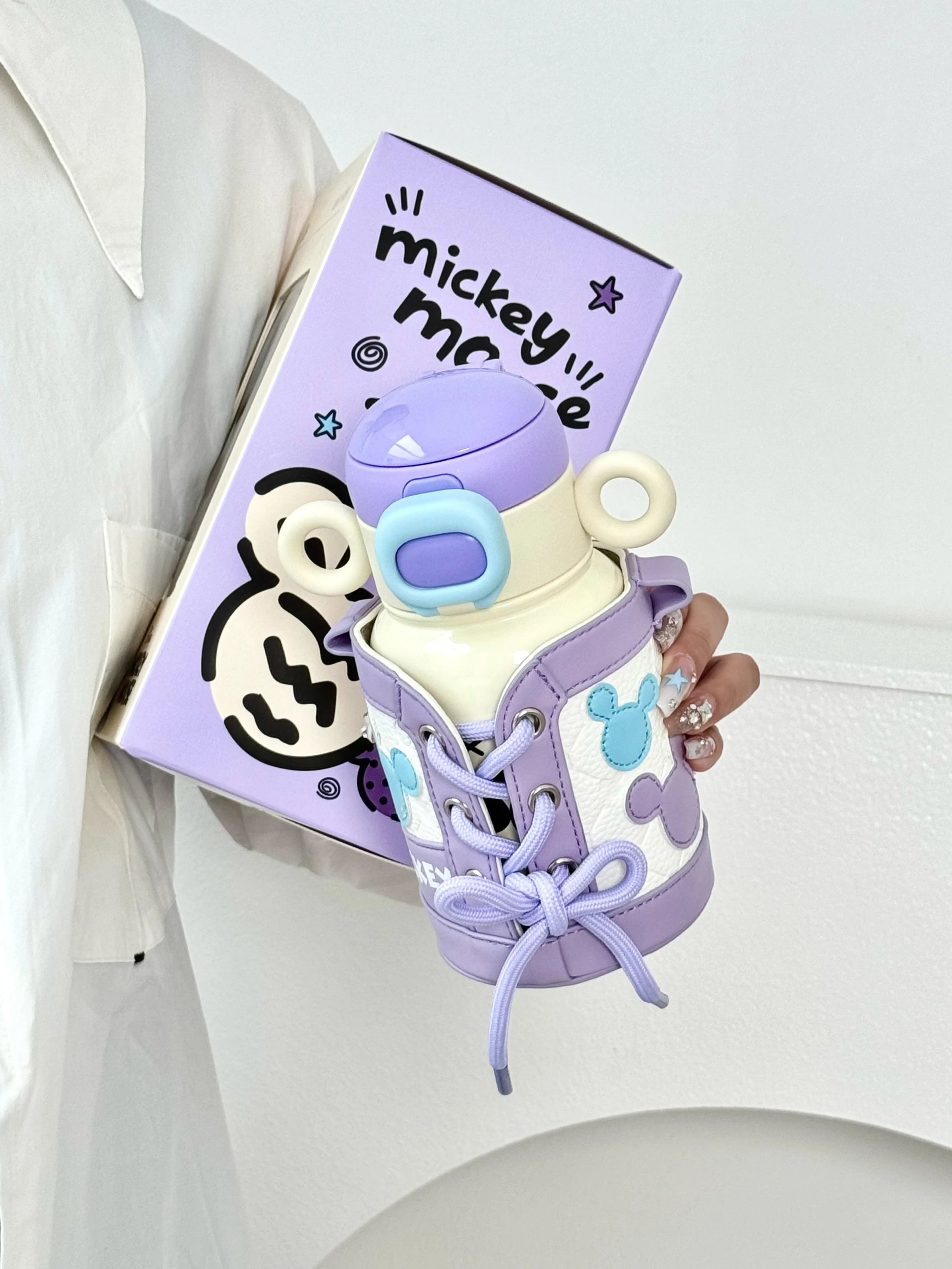 奶呼呼的白色配上紫色 真的又被这个保温杯好看到 500ml 直饮口 吸管口巨实用 杯身还有俏皮可爱的米奇图案 是保温杯届颜值天花板没错了