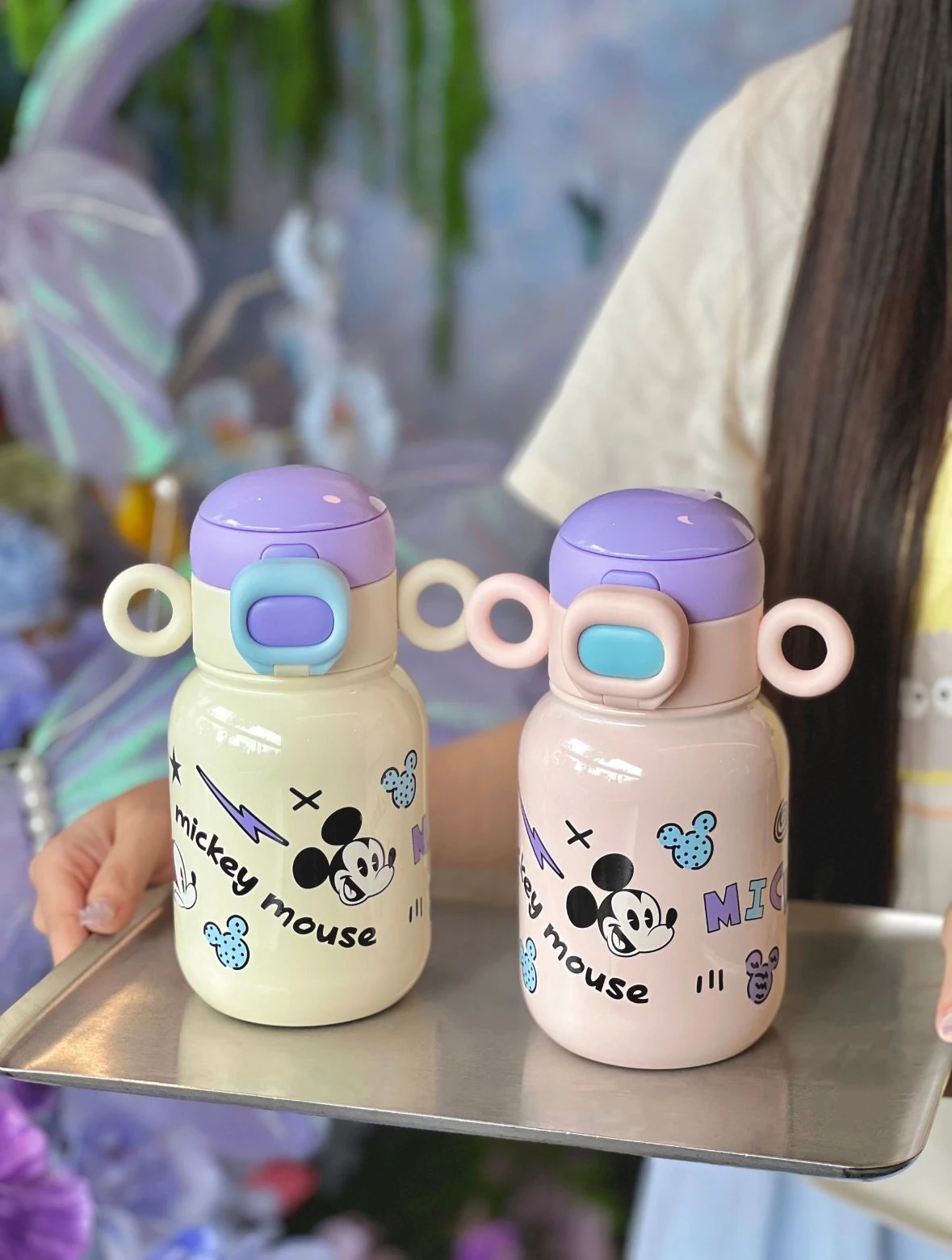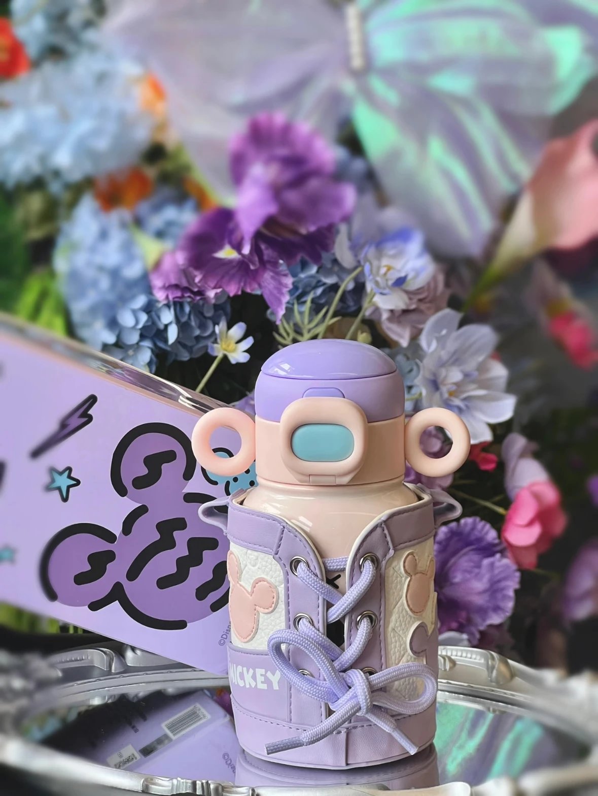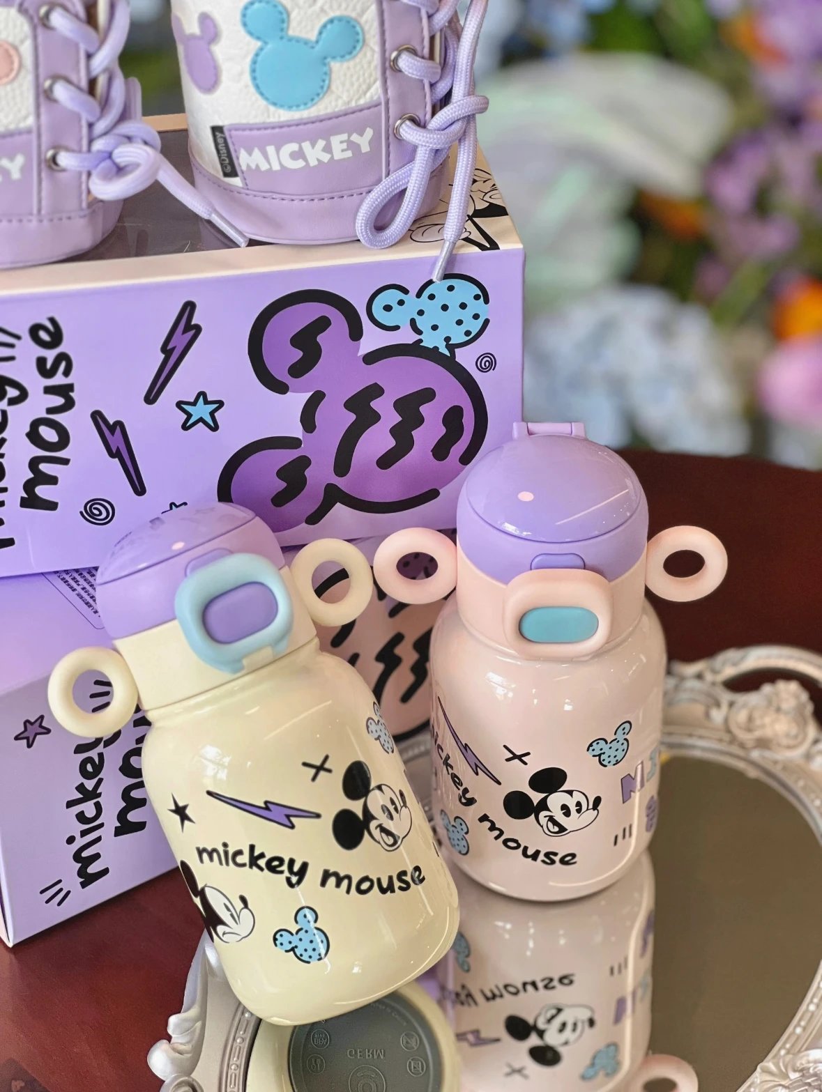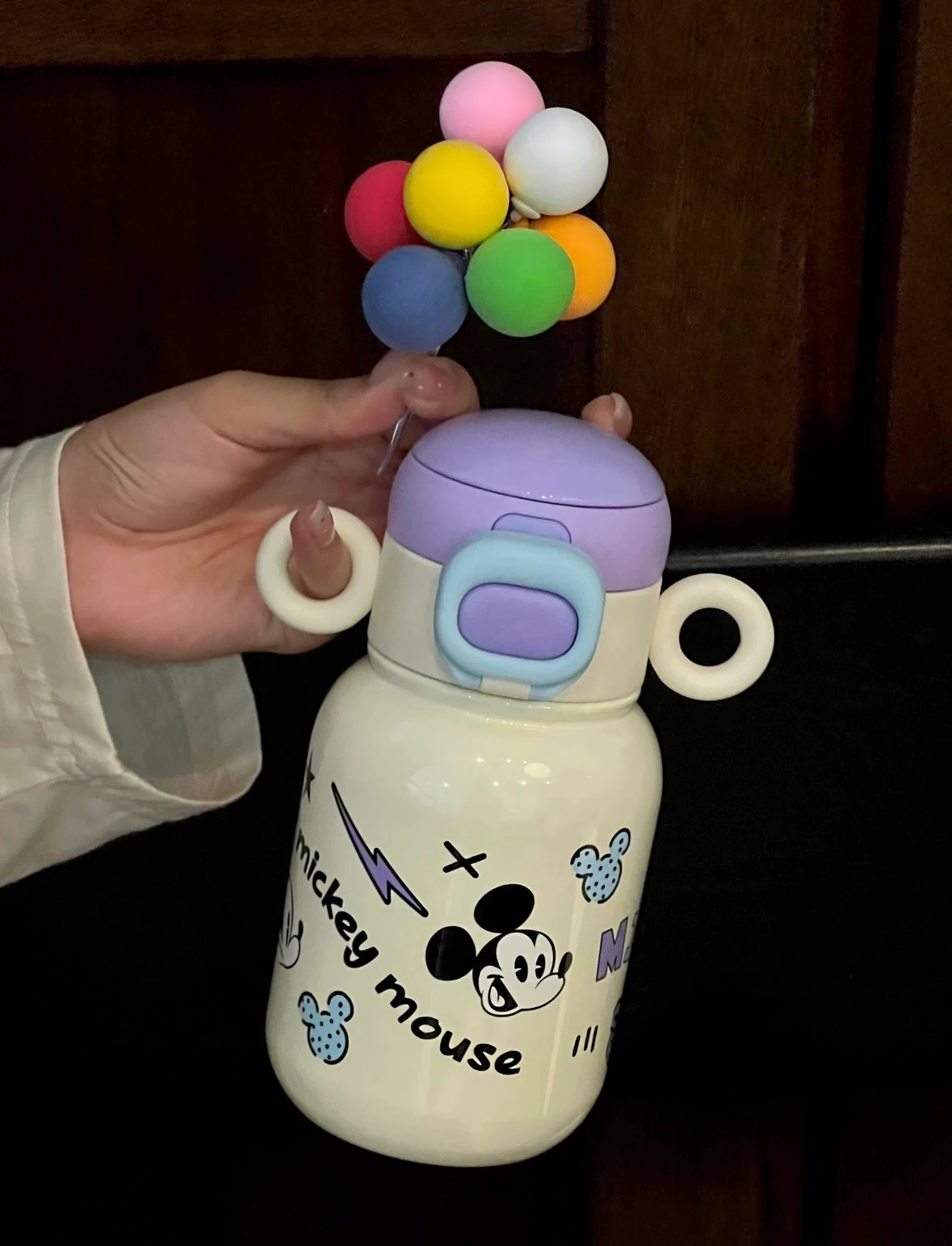 奶呼呼的白色配上紫色 真的又被这个保温杯好看到 500ml 直饮口 吸管口巨实用 杯身还有俏皮可爱的米奇图案 是保温杯届颜值天花板没错了