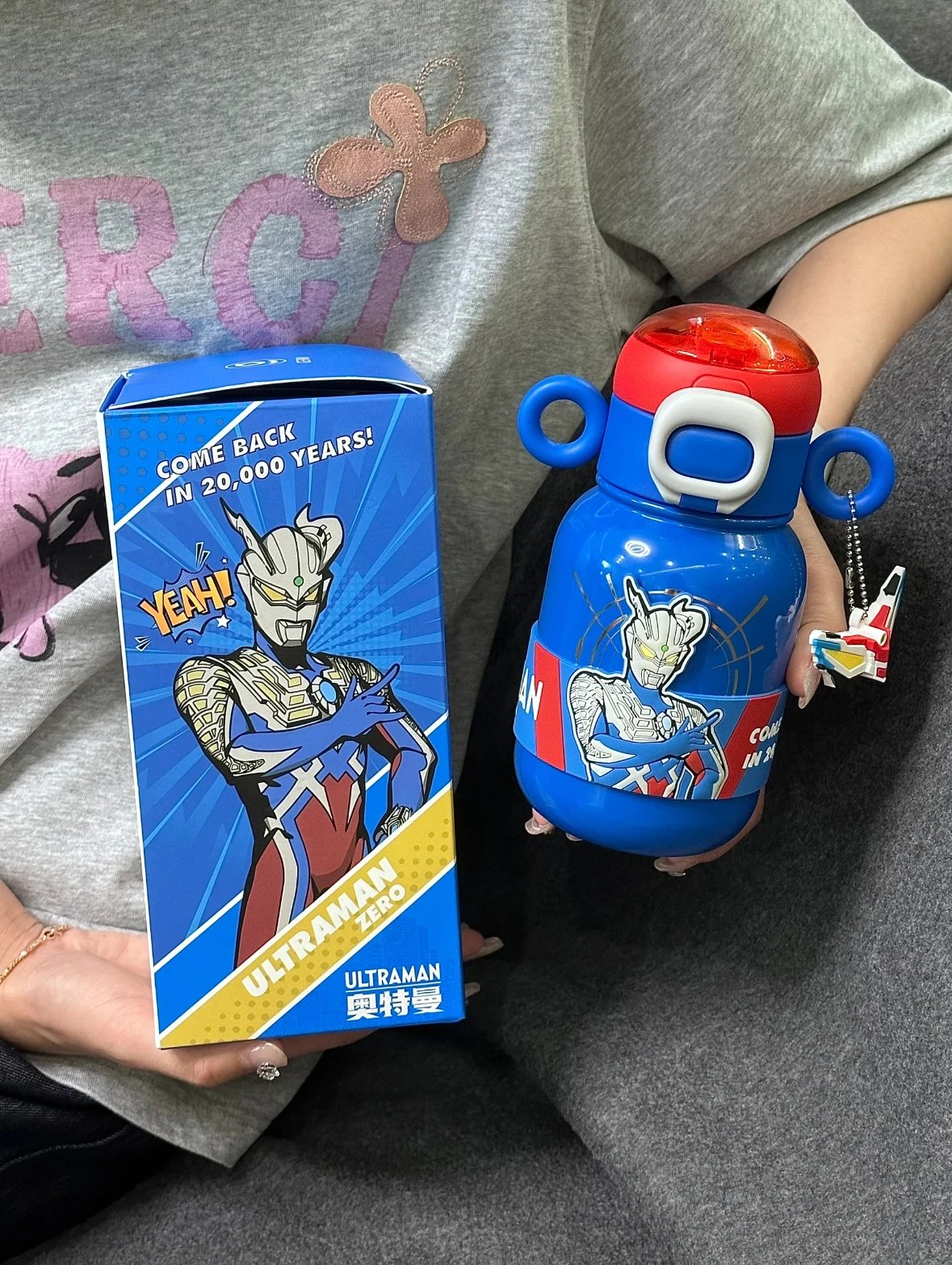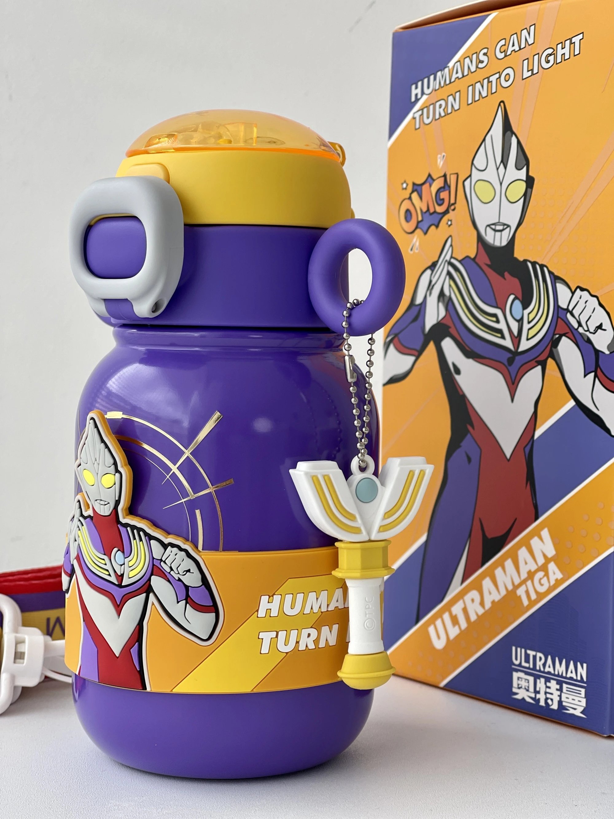 奥特曼在男孩子心中的地位 就不用多说了吧 送他这个可以随时看到的奥特曼 还有精美的变身器小挂件 保管他不会忘记喝水