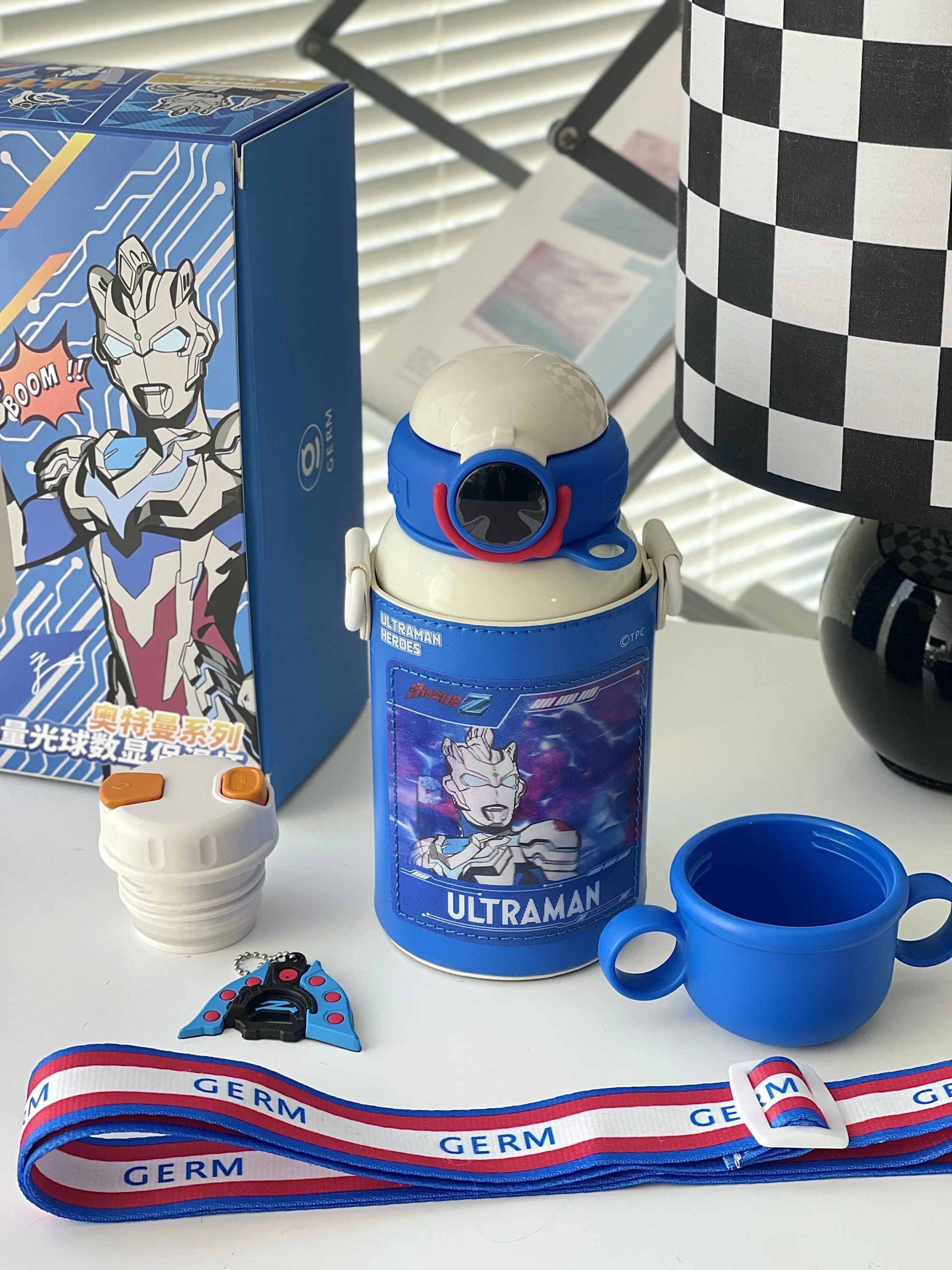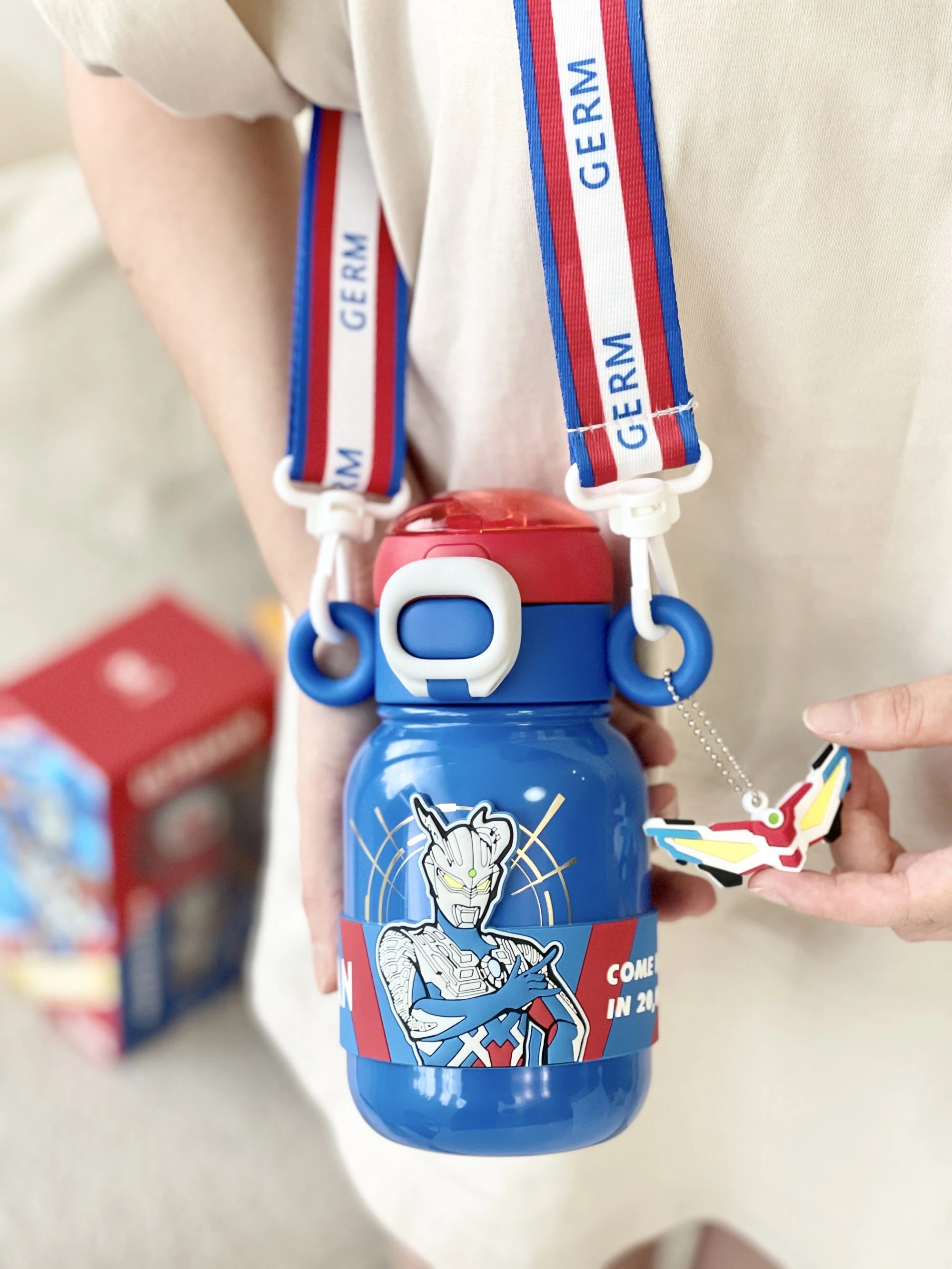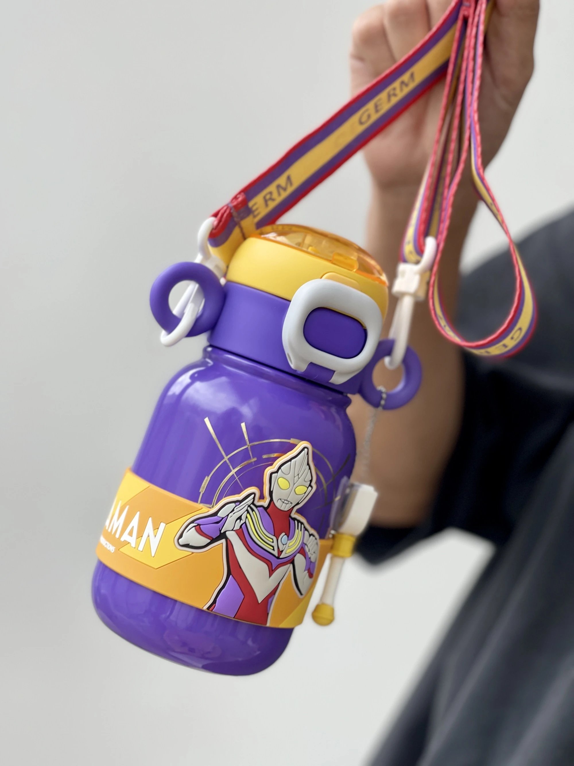 【GERM奥特曼系列超能保温杯 500ML】 这么酷的保温杯,还附带变身器! 背上就被追问了一路 可拆卸可调节肩带 挎起就走 这设计创意直接拉满~