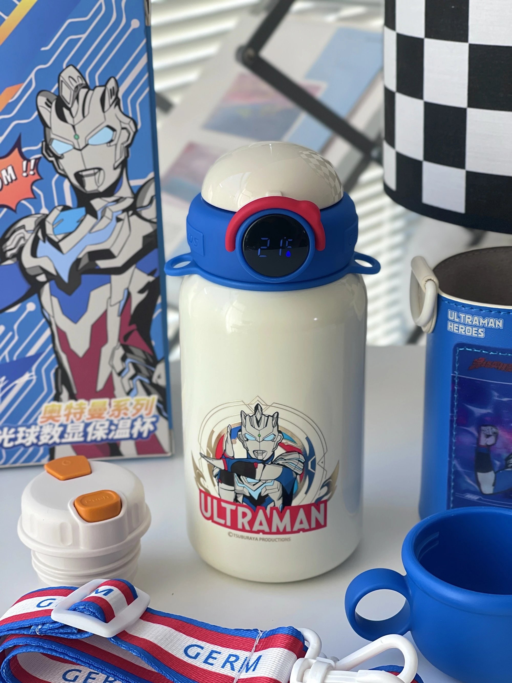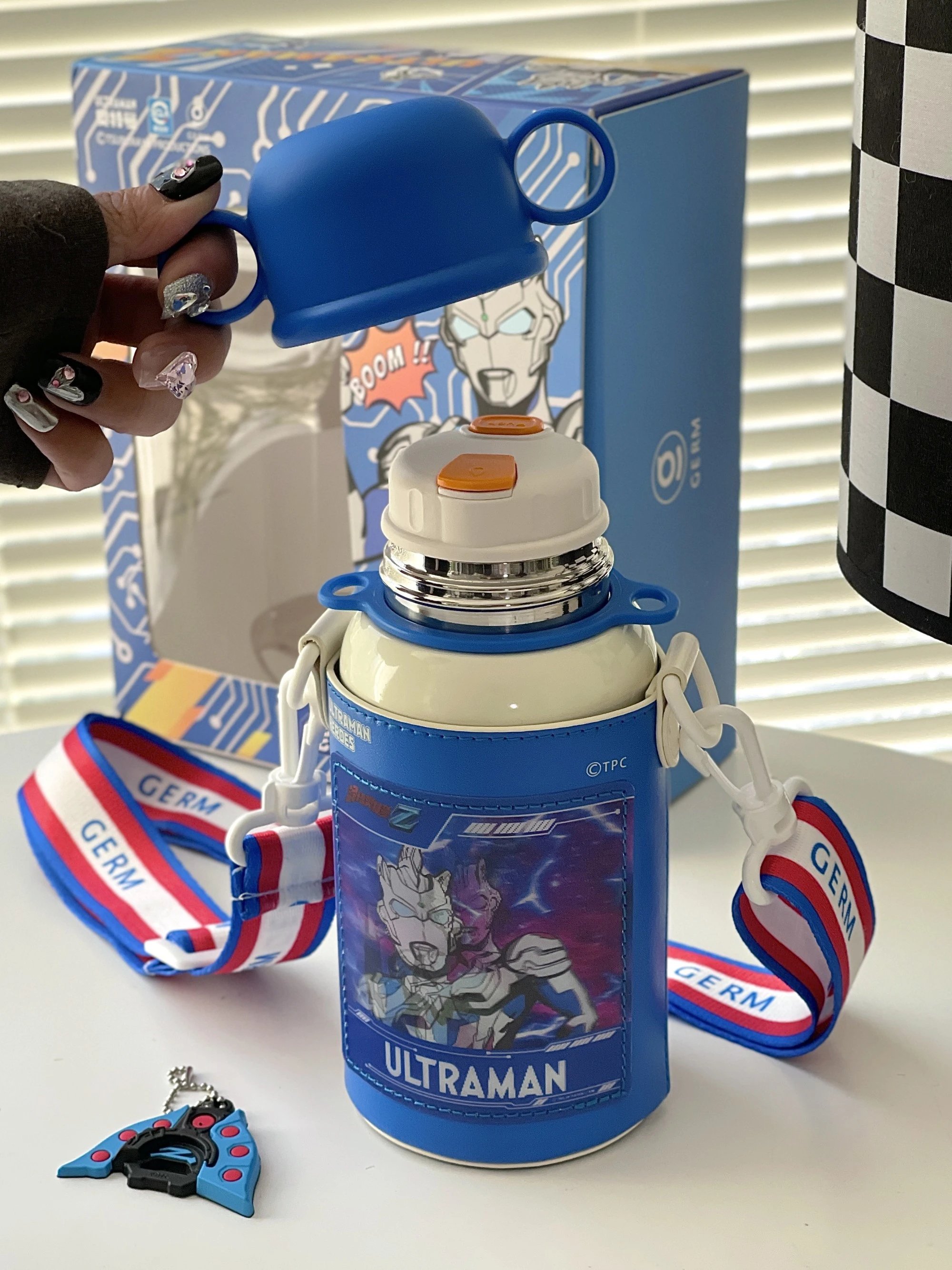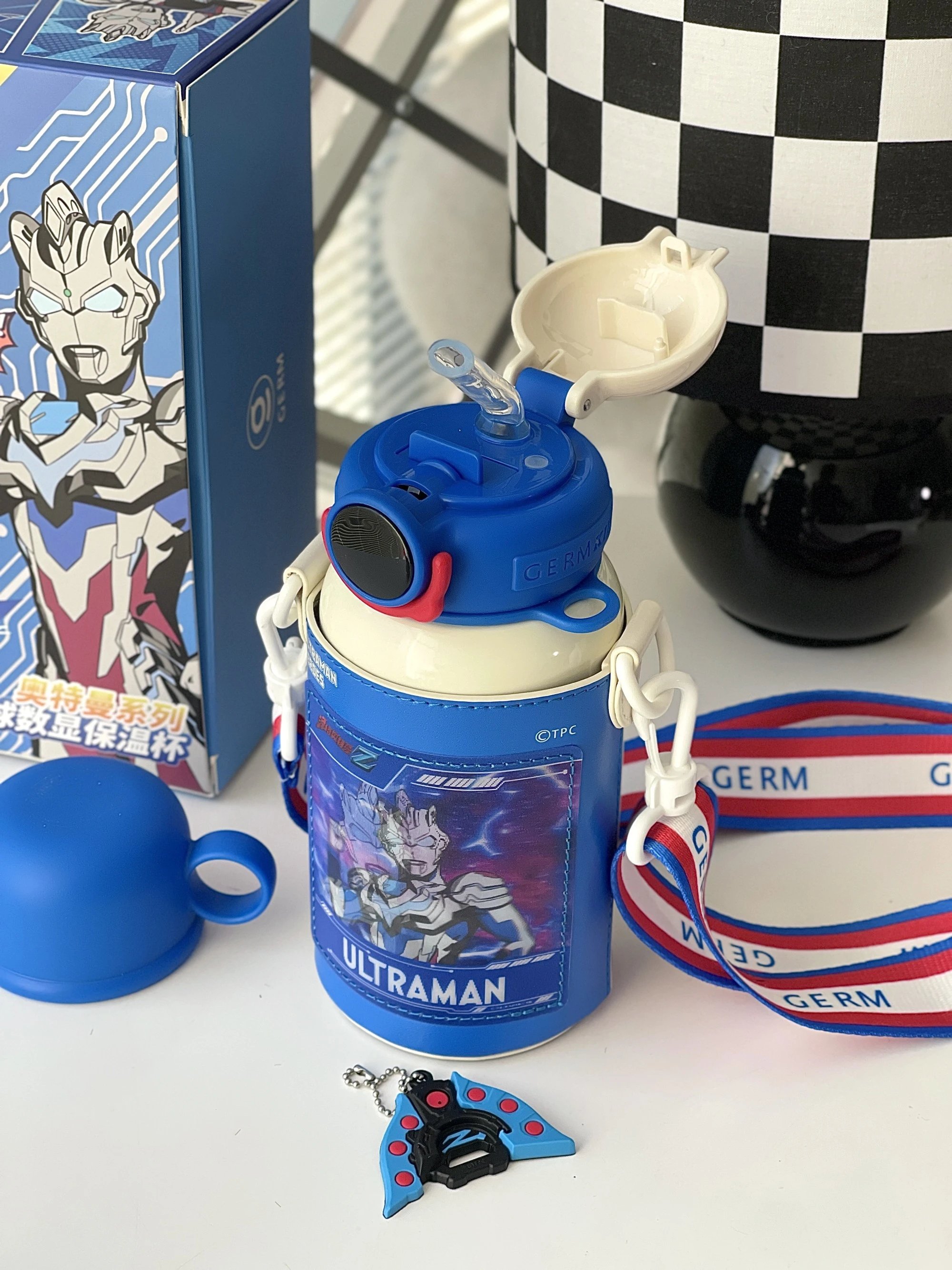 【GERM奥特曼系列超能保温杯 500ML】 这么酷的保温杯,还附带变身器! 背上就被追问了一路 可拆卸可调节肩带 挎起就走 这设计创意直接拉满~