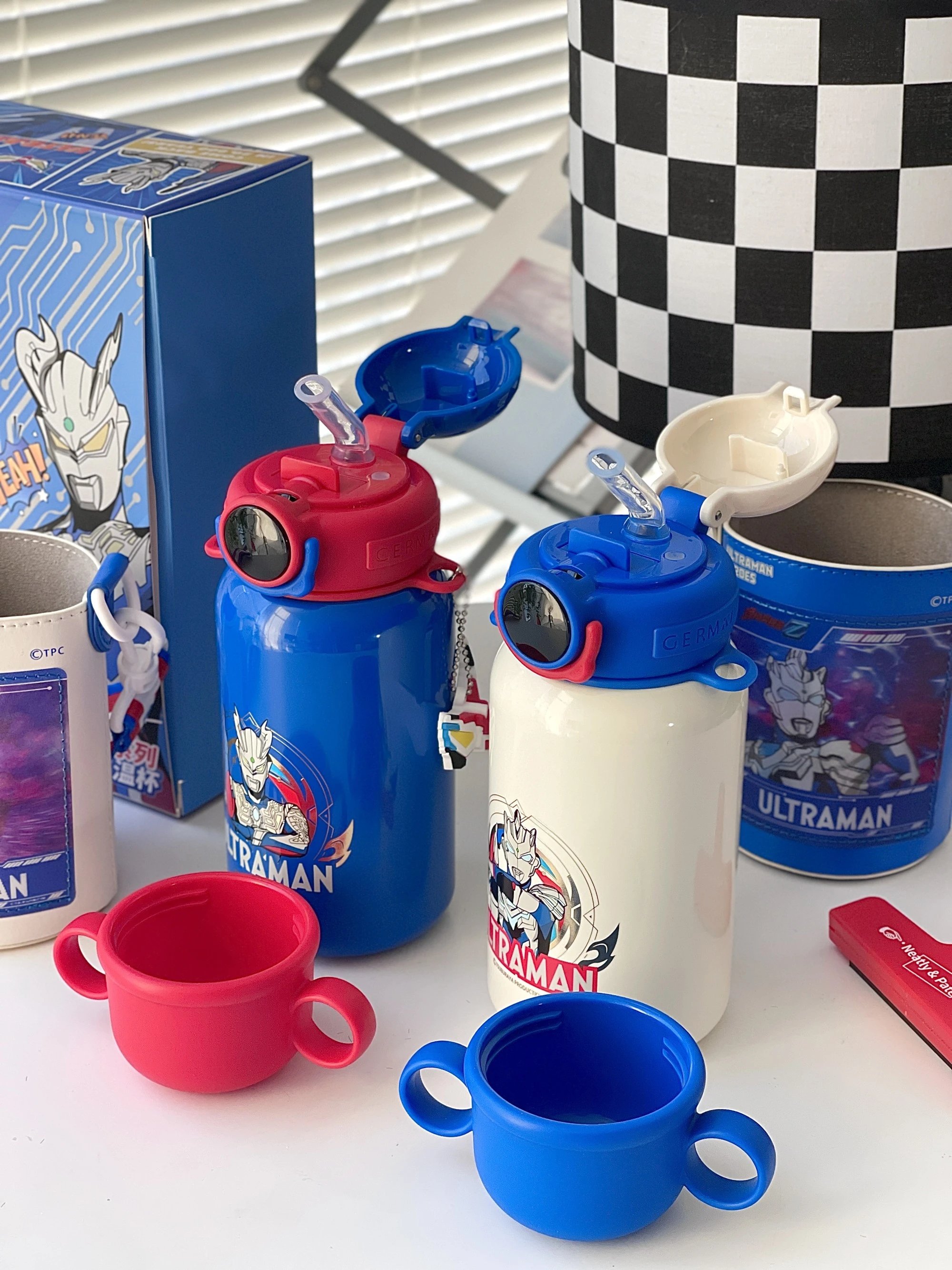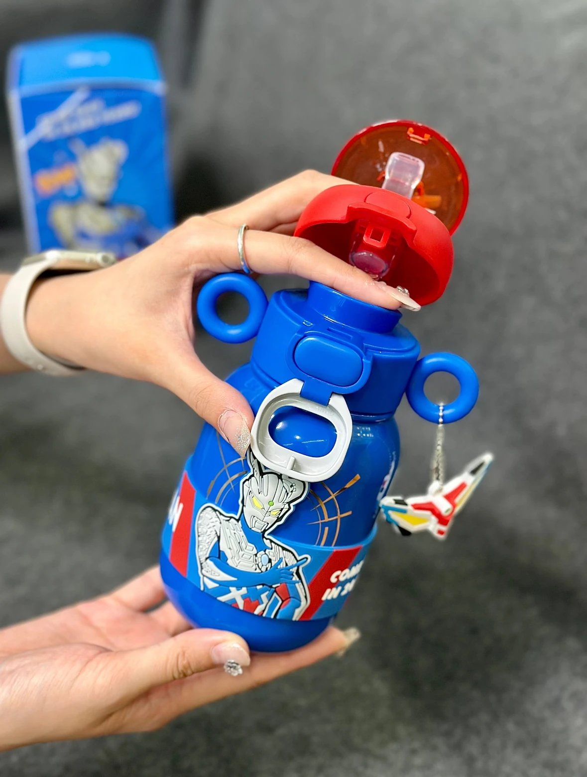 奥特曼可以拯救世界 也可以拯救不爱喝水的孩子 原创双耳杯盖+创新手握环 还有变身器小挂件 牵起天真烂漫的童年回忆~