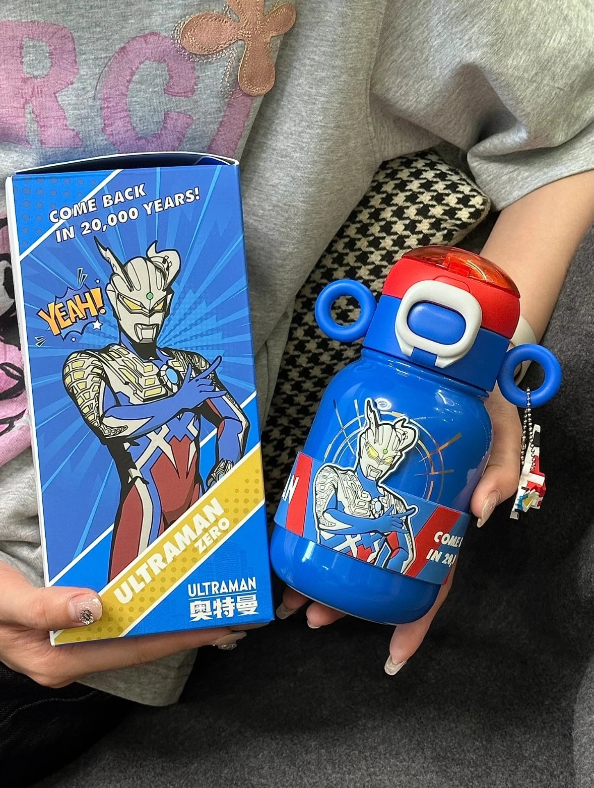 独特的奥特曼光栅杯套 一个杯套可以看见两种图案 触动显温屏,看得见的安心 喝水再也不用怕烫嘴啦~