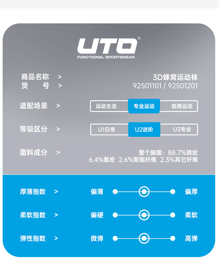 UTO/悠途3D蜂窝银离子袜春夏户外训练马拉松吸汗速干短筒跑步袜