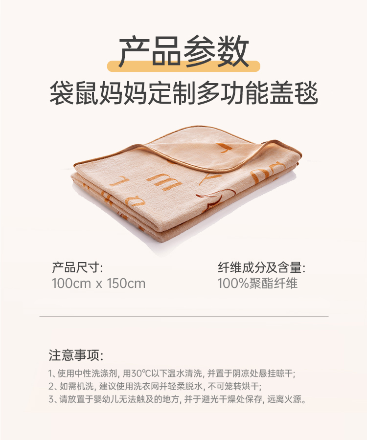 【品牌定制毛毯】 亲肤柔软 四季皆宜 一毯多用 袋鼠妈妈定制多功能盖毯