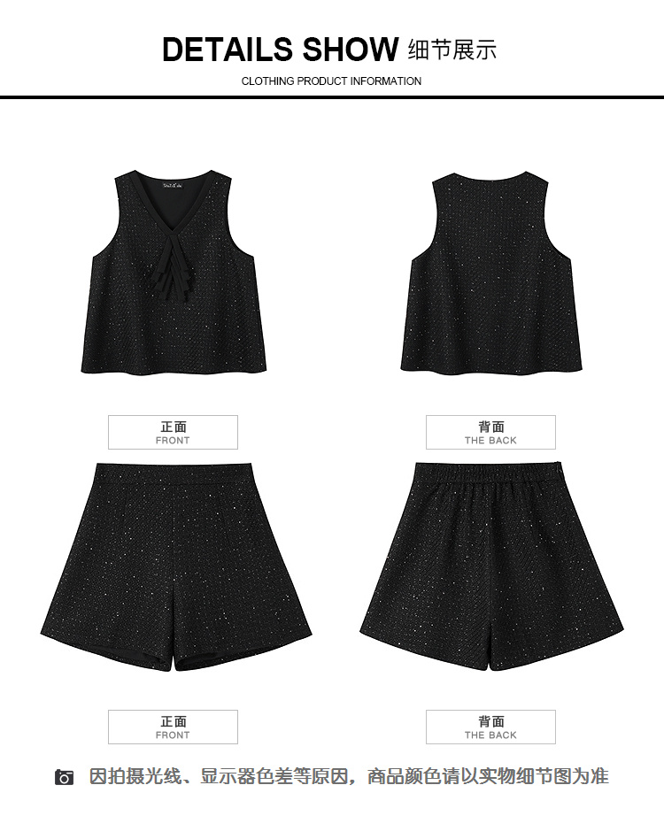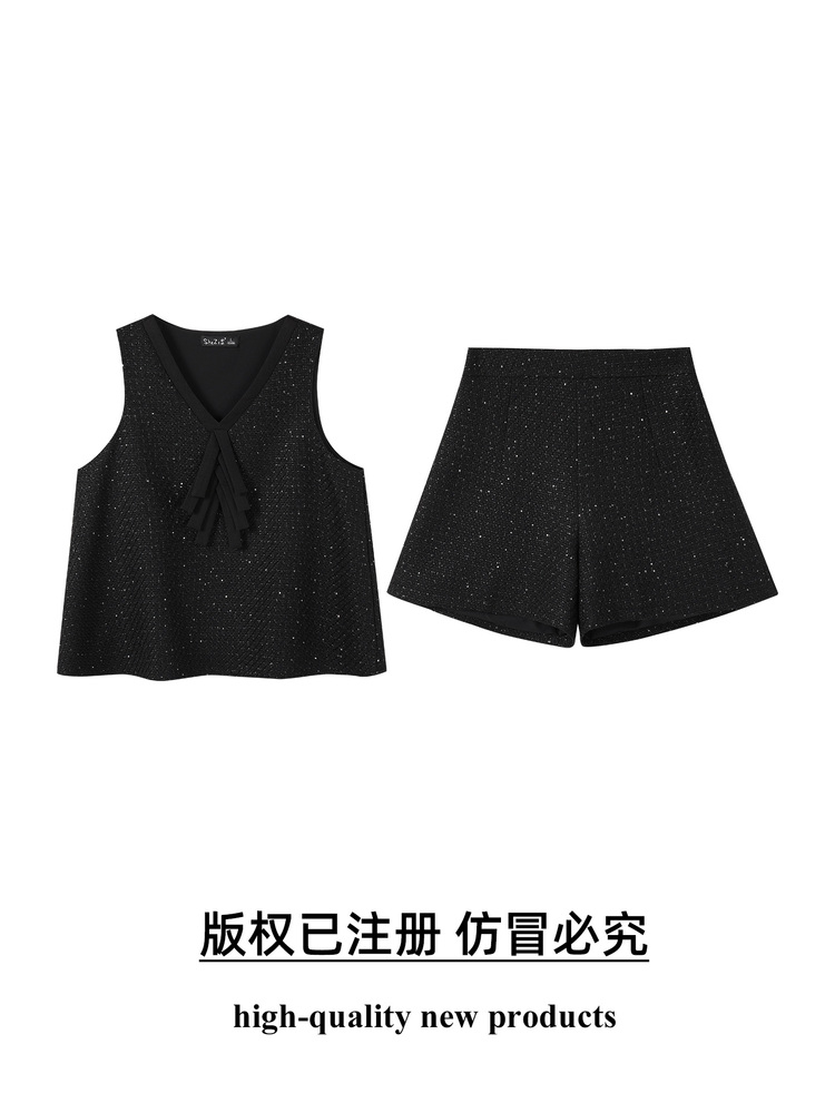 奢姿大码女装2025秋季减龄亮片小香风两件套胖妹妹背心+裤套装9953953739A