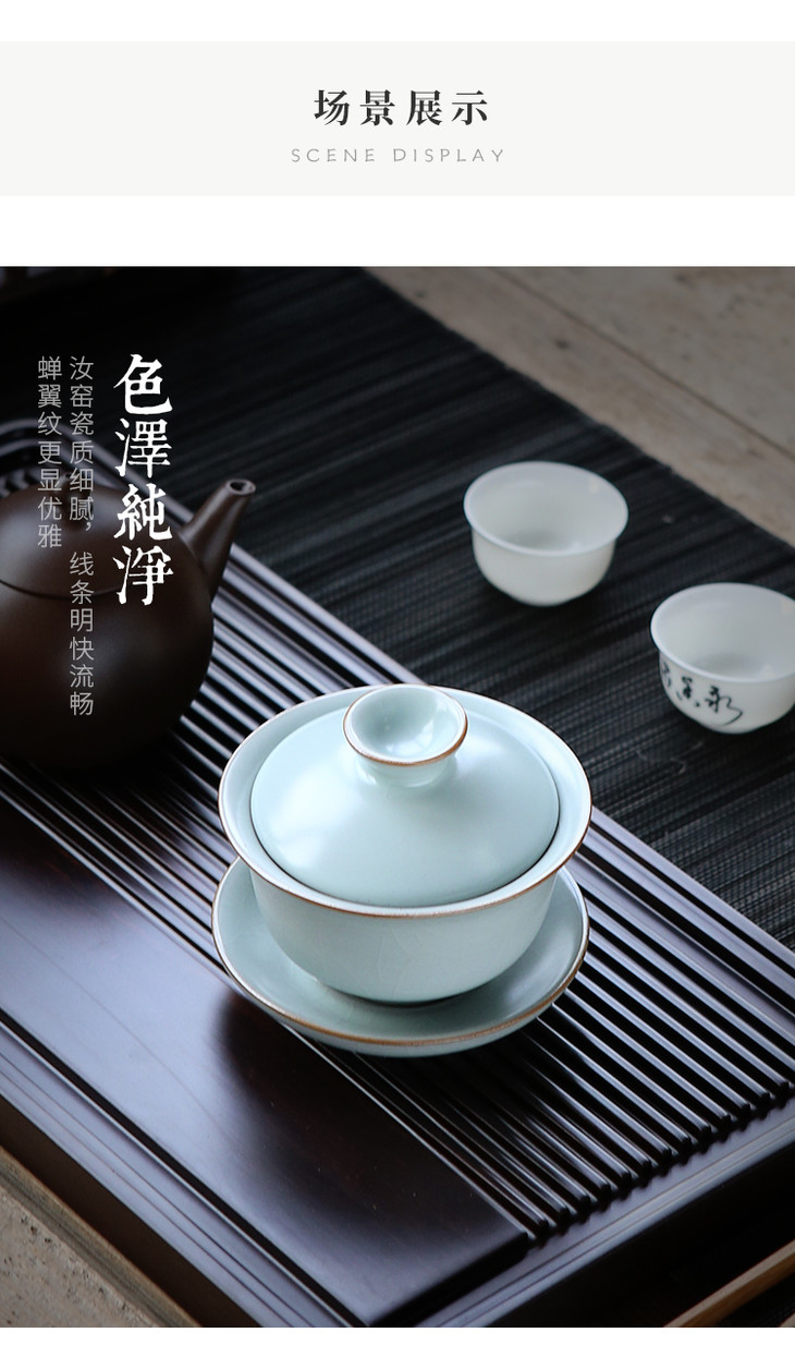 【丰子汝窑】【天青盖碗】盖杯手工开片主人杯陶瓷汝瓷三才盖碗功夫茶具