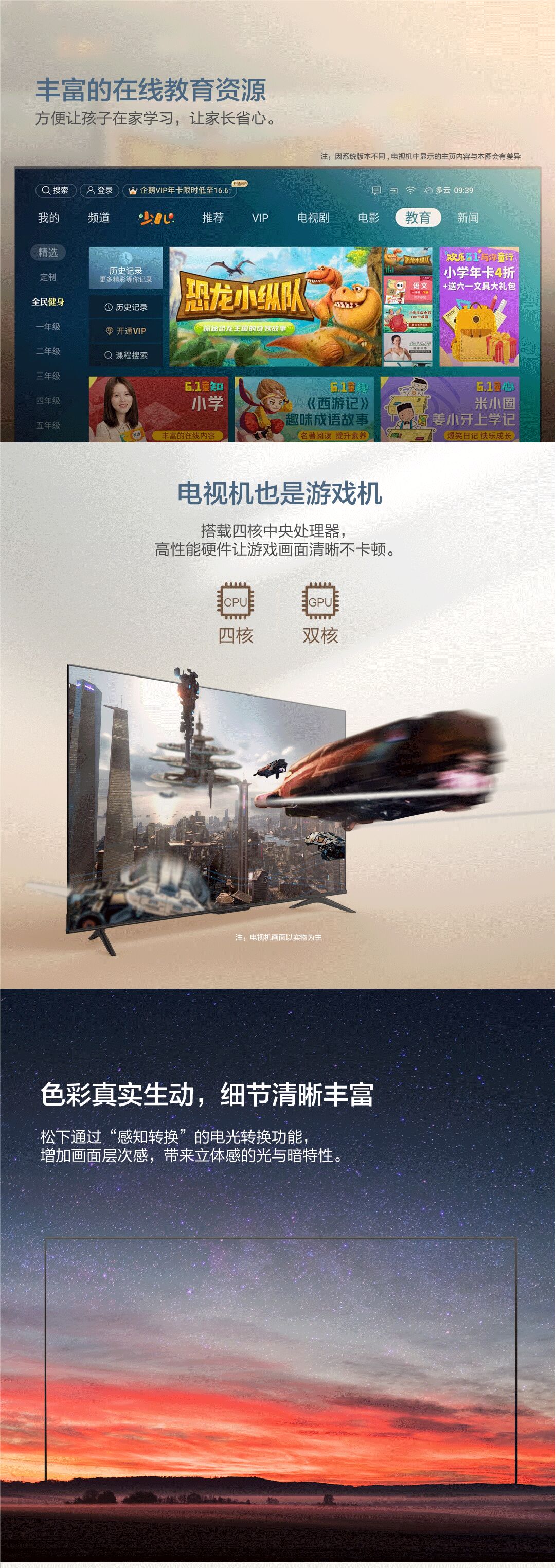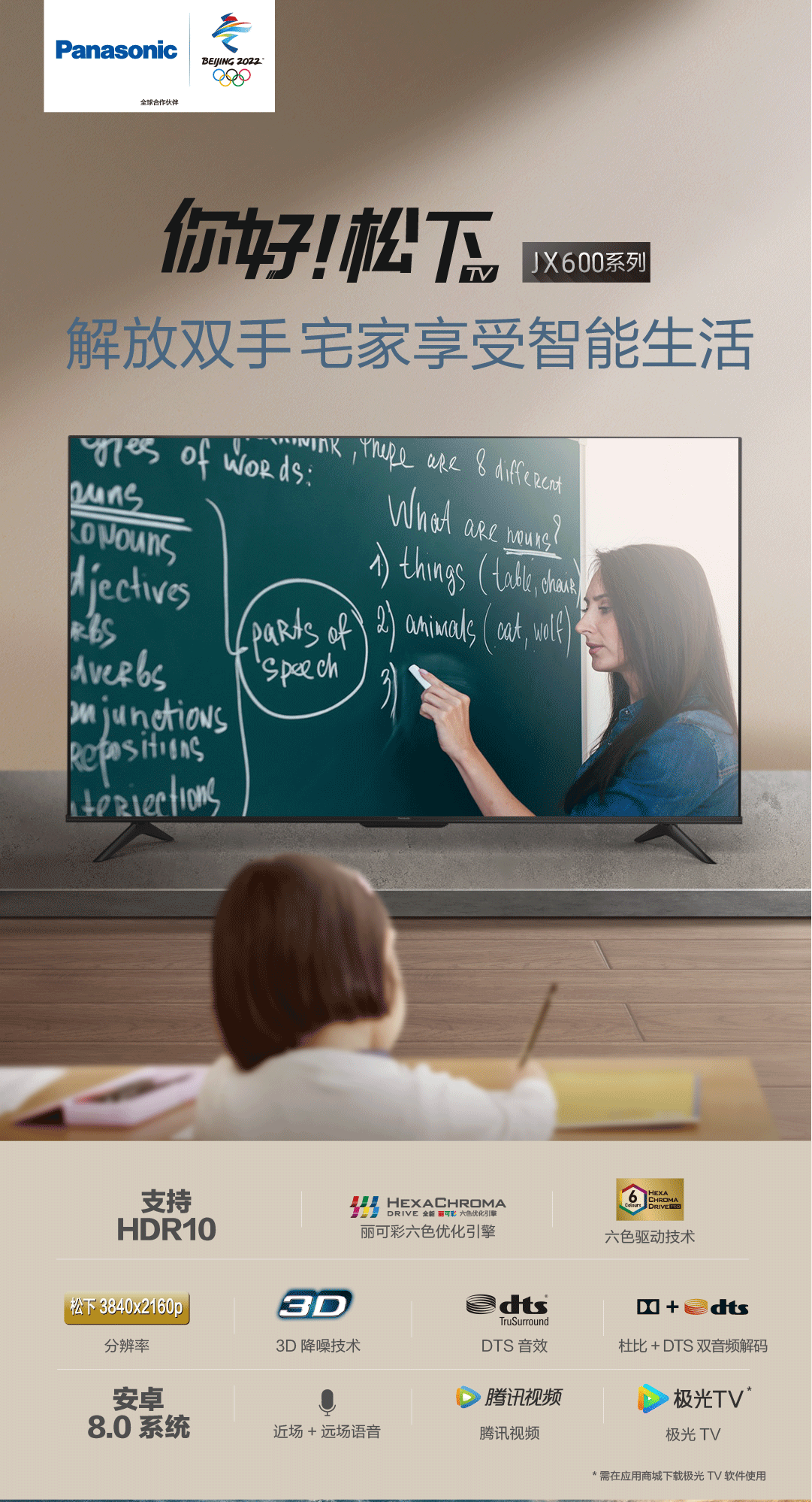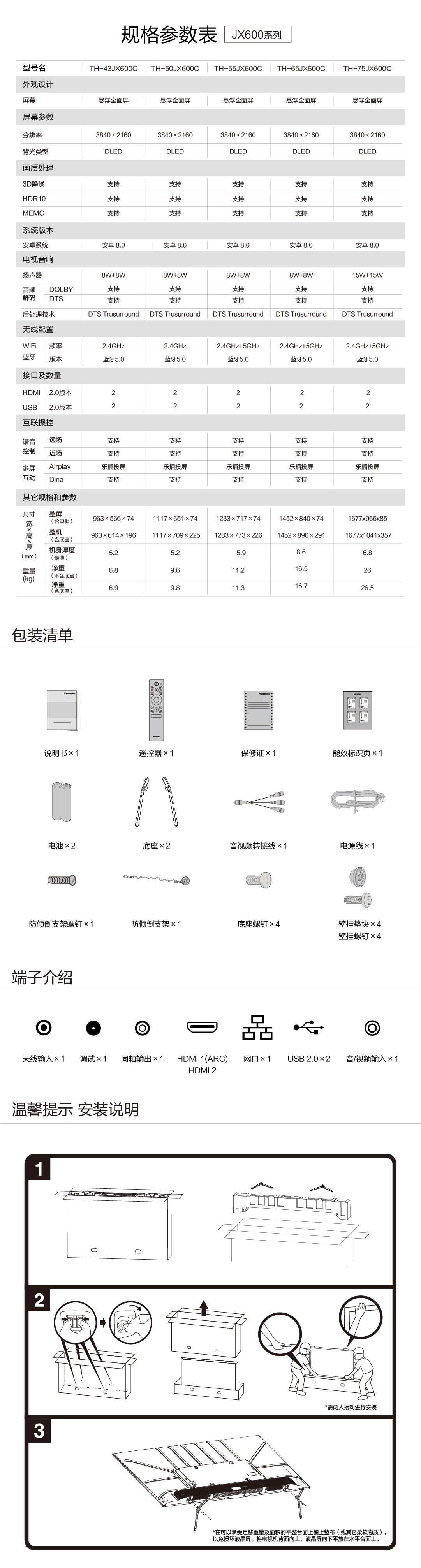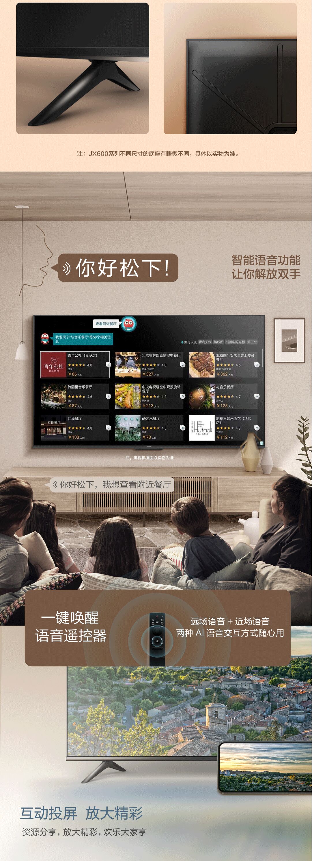 松下(Panasonic)TH-65JX600C 65英寸4K超高清全面屏智能语音电视机 支持投屏