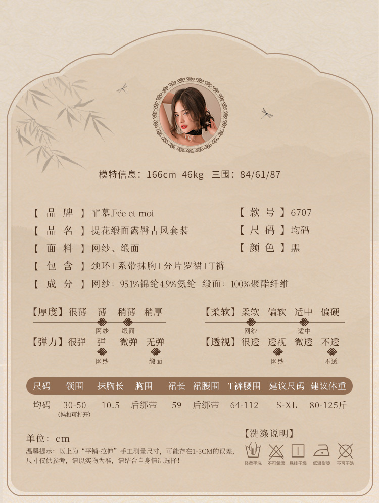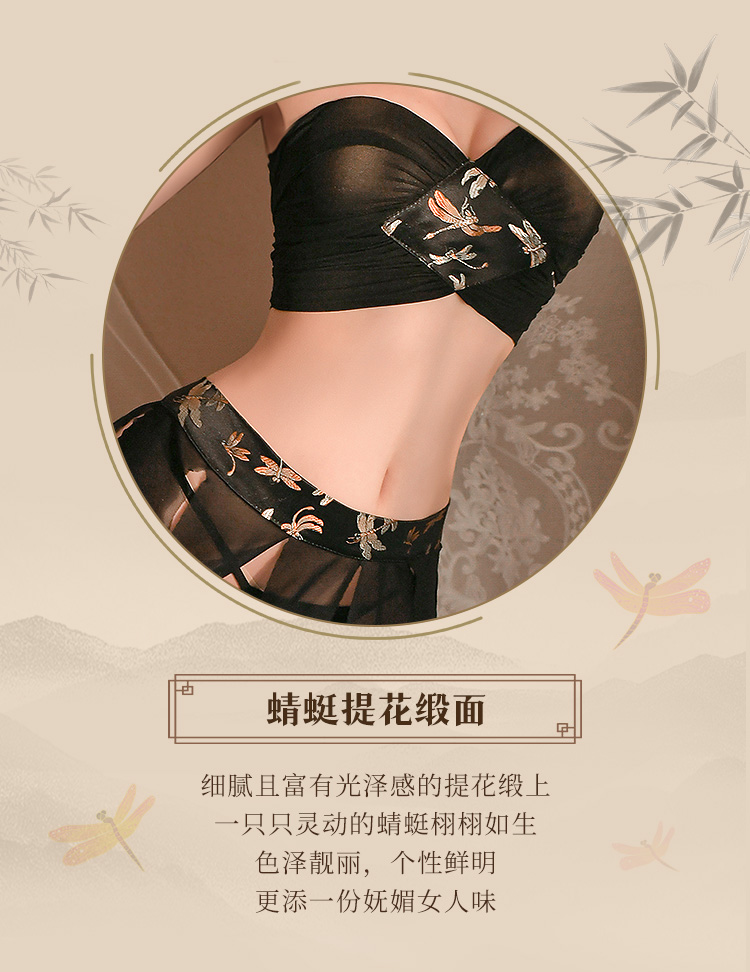 【怦然心动】情趣内衣 提花缎面 露臀 古风套装 性感 制服 衣服 型号:6707