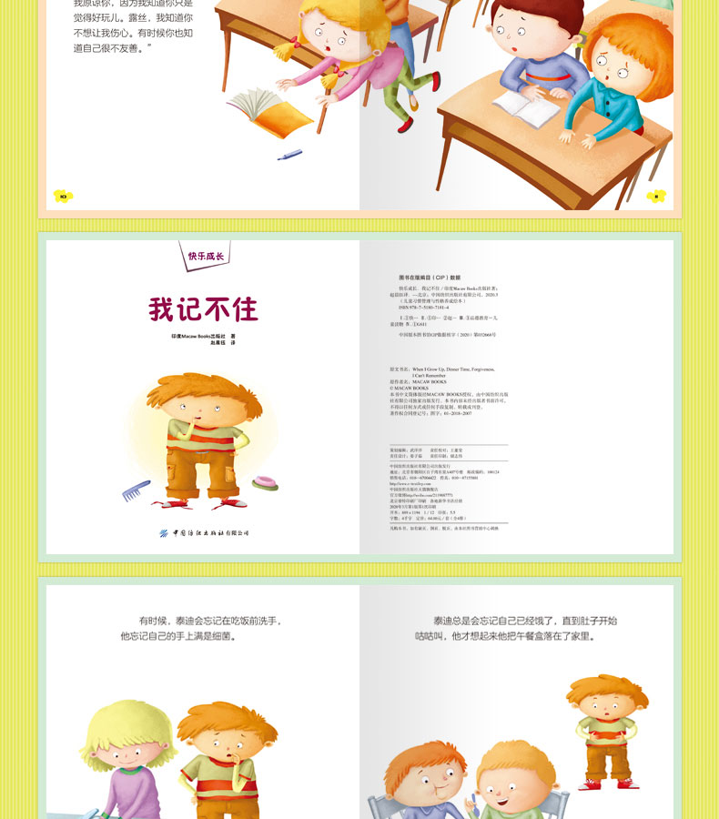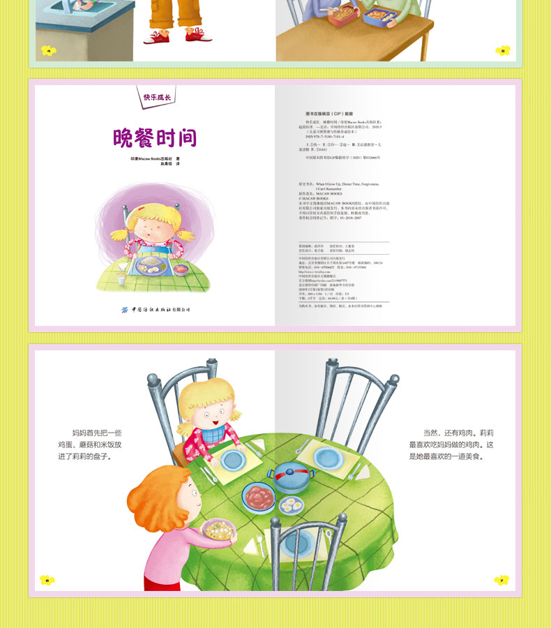 儿童习惯管理与性格养成绘本套装全4本 快乐成长 长大以后+学会原谅+我记不住+晚餐时间 婴幼儿家庭教育早教书 亲子阅读睡前故事书