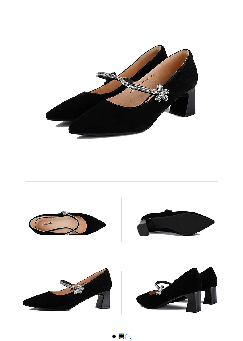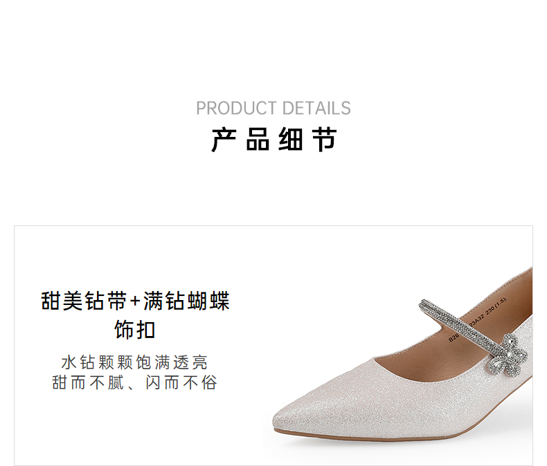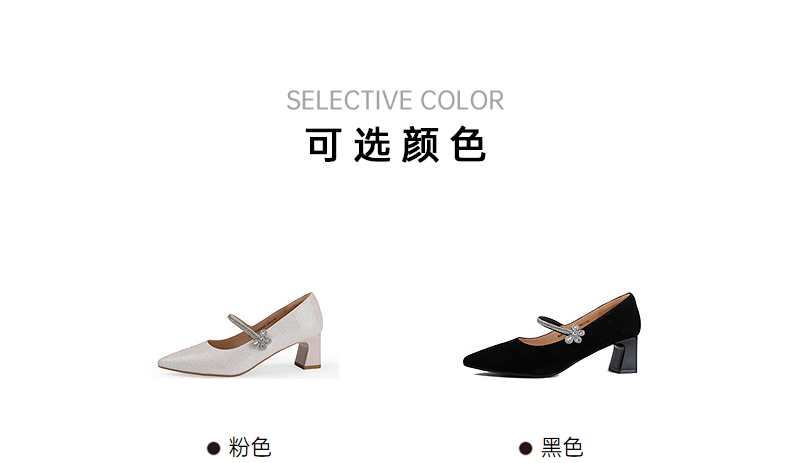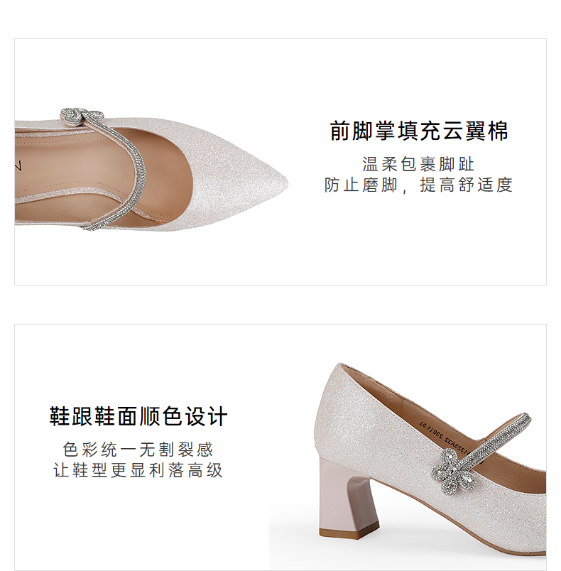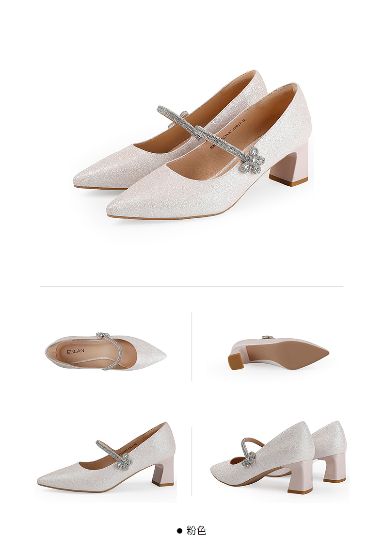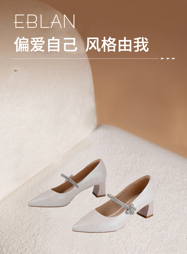 【上新】伊伴2026春季尖头高跟鞋甜美闪钻饰扣时装玛丽珍B26161323